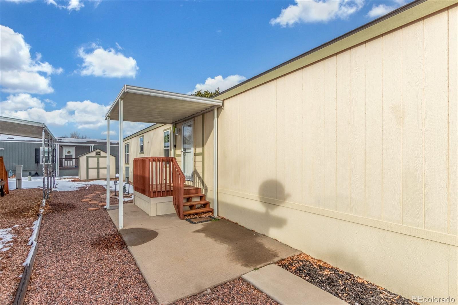 Welcome home to this newly remodeled 3-bedroom, 2-bath home located on a rare corner lot in The Springs community! This inviting home offers a functional floor plan with comfortable living spaces and natural light throughout. The open living and dining area provides a welcoming space for relaxing or entertaining, flowing seamlessly into the kitchen. The kitchen features ample cabinetry, generous counter space, an island for added prep area making this a practical layout designed for everyday use. All kitchen appliances stay including the gas stove. The large primary bedroom offers a spacious walk-in closet, plus, a private retreat with its own en-suite bathroom that has a bidet toilet, an oversized vanity and built-in linen closet. The two additional bedrooms provide flexibility for a home office or hobbies space. A second full bathroom is conveniently located near the secondary bedrooms located on the opposite side of the home from the primary bedroom making this a very ideal layout. Stay cool this summer with the AC unit. A dedicated laundry area has access to the side of the home and can double as a mud room adding to everyday convenience, and the home includes thoughtful storage throughout. Love your outdoor living space with low-maintenance landscaping, a storage shed, and outdoor space ready for your personal touches. Enjoy your community amenities including a gated community for security and privacy, spacious multi-purpose clubhouse, Resort-style heated swimming pool, gym fitness room game room with billiards, playground & basketball court! Divinely located on the east side of Colorado Springs, this home offers easy access to shopping, dining, parks, Peterson Space Force Base, and major commuter routes.