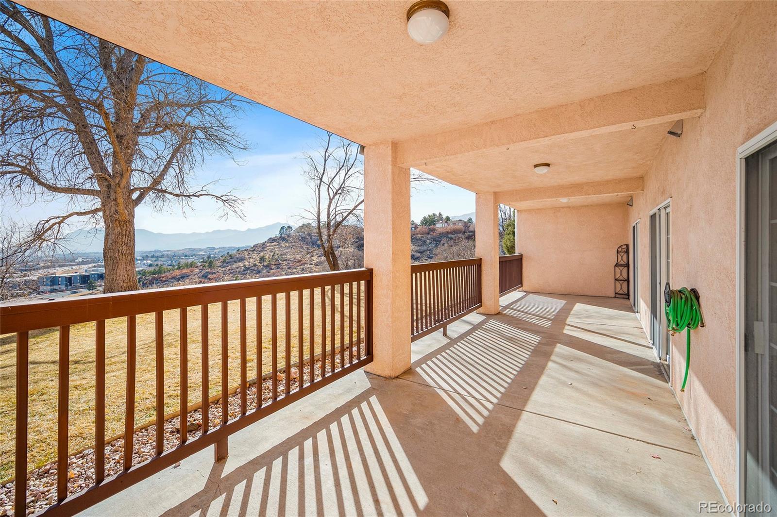 Mountain and city views! Welcome to effortless, low-maintenance living on the desirable west side of Colorado Springs. This ranch-style home with a walk-out basement offers the perfect blend of comfort, space, and convenience — all wrapped in stunning scenery. Step inside to an open floorplan filled with tons of natural light, vaulted ceilings, fresh new paint, and new flooring throughout. The spacious living areas flow seamlessly, highlighted by a cozy fireplace and a touch of Spanish flair that adds warmth and character. The kitchen is designed for both everyday living and entertaining, featuring a large island, pantry, abundant countertop space, and generous storage. The main level primary suite is a true retreat, complete with a private balcony showcasing breathtaking views, a large five-piece bathroom, and expansive closet space. Large bedrooms throughout the home ensure comfort for family and guests alike, while the finished walk-out basement offers 9-foot ceilings, additional living space, and incredible storage options. Enjoy Colorado’s beautiful weather from not one, but three decks, each offering its own unique vantage point. The oversized two-car garage adds even more practicality. Located near the former Sunbird Restaurant site and just minutes from Garden of the Gods, downtown Colorado Springs, and easy access to I-25, this home places you close to everything while still offering peaceful west-side living. If you’ve been searching for views, space, and simplicity — this is it. This is one of Colorado's Finest.