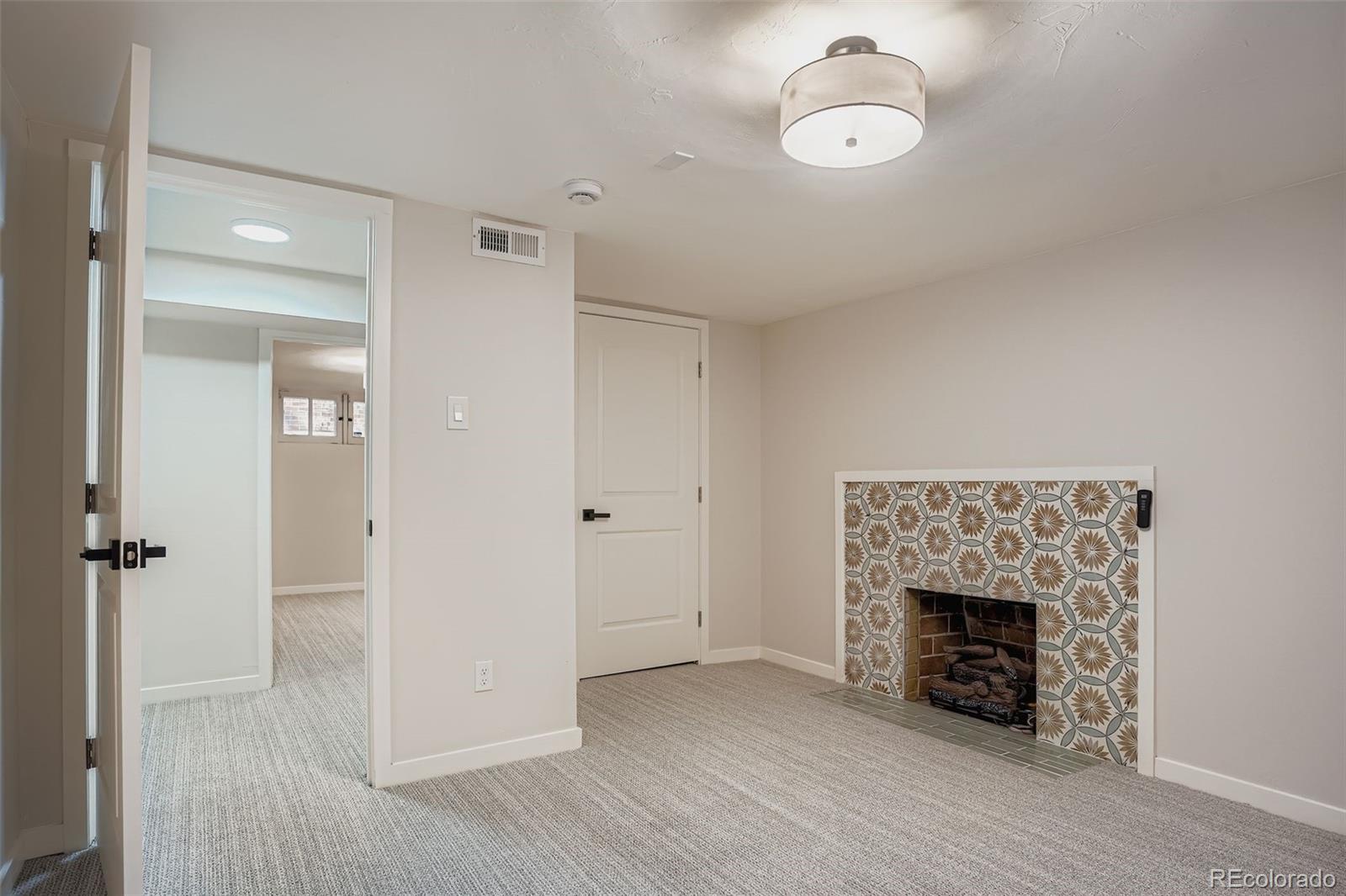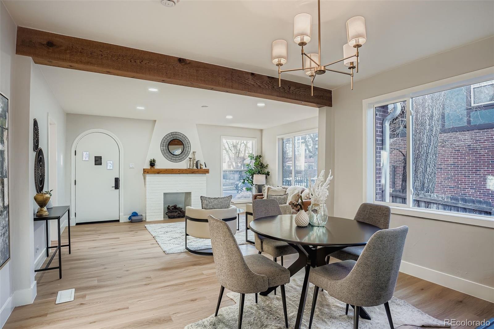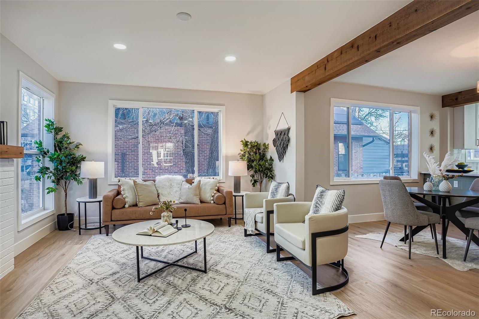 Welcome home to this fully remodeled storybook Tudor home, in the desirable South Park Hill neighborhood. This beautiful home sits on a charming, tree-lined street just steps from local restaurants, parks, museums, schools, and neighborhood favorites. As you walk through the front door, a welcoming fireplace and custom wood beams set the tone for the spacious living room, which flows seamlessly into an open dining area. The beautifully remodeled kitchen includes custom soft close cabinets, new quartz countertops and stunning luxury appliances. This home offers two ensuite bedrooms on the main level, including a spacious primary suite with a thoughtfully updated bathroom. The basement provides a second large living area, two additional bedrooms—one featuring its own cozy fireplace—an updated 3/4 bathroom, and a dedicated laundry room. With fresh paint throughout, new windows, new luxury vinyl floors, and new carpet in the basement, this quant home feels brand new. Outside, enjoy an updated fully fenced backyard with a flagstone patio, pergola, mature apple tree, and blooming honeysuckle vines along the fence—your own private oasis in the city. A convenient two-car garage completes this exceptional property. Move-in ready and perfectly located, this South Park Hill gem blends modern updates with neighborhood charm.
