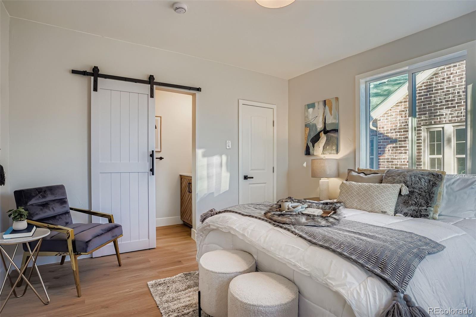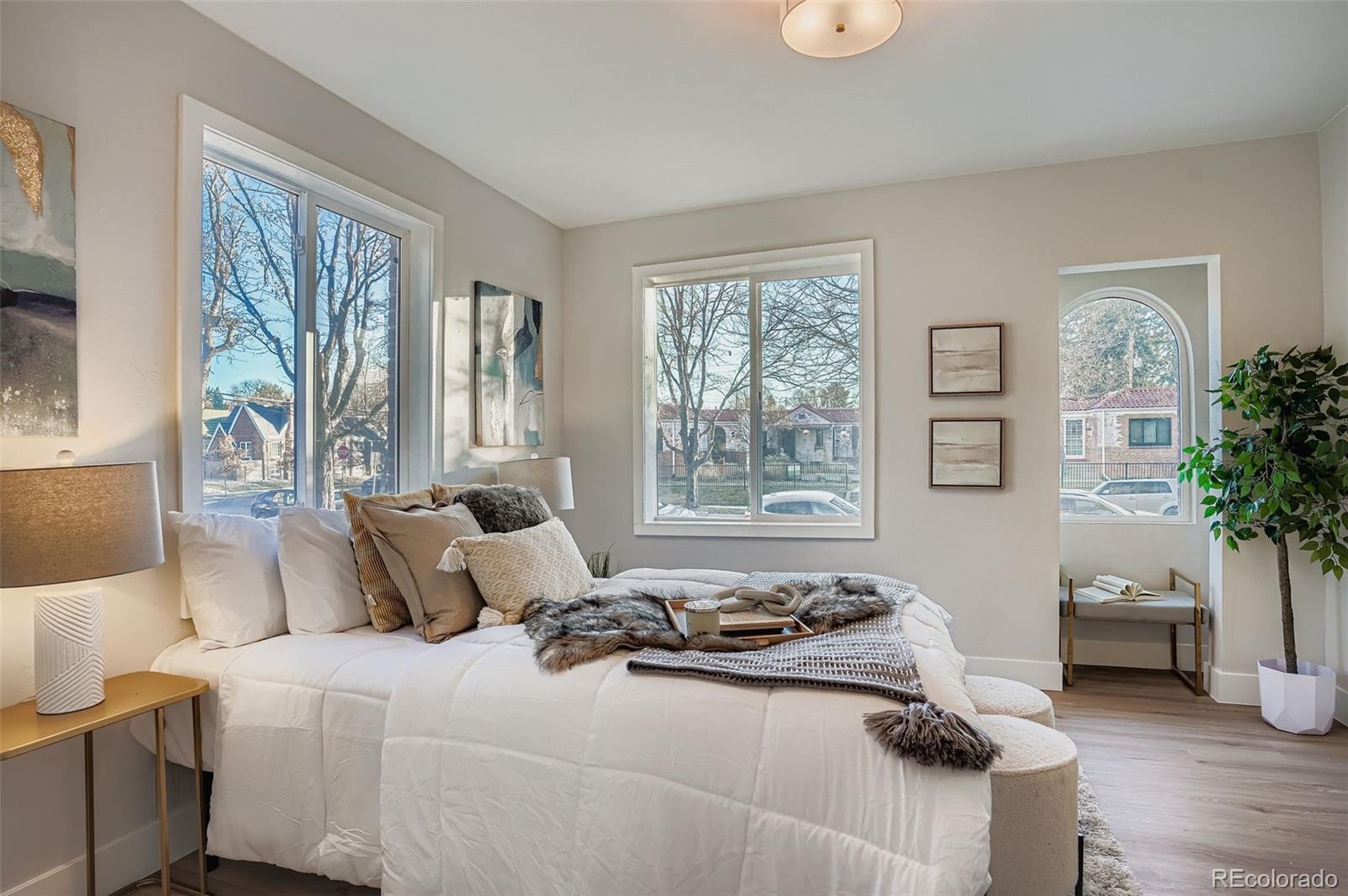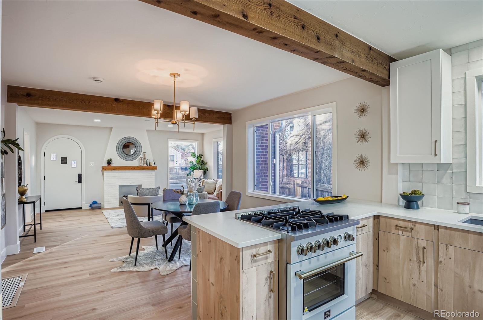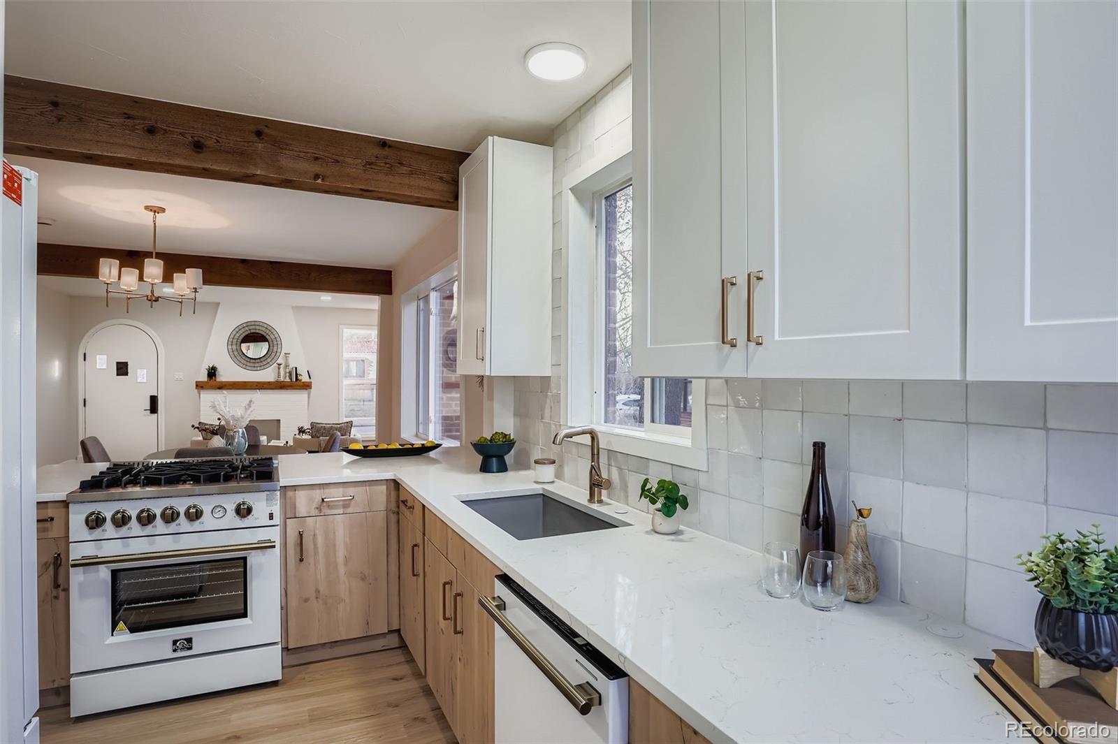 Welcome home to this fully remodeled storybook Tudor home, in the desirable South Park Hill neighborhood. This beautiful home sits on a charming, tree-lined street just steps from local restaurants, parks, museums, schools, and neighborhood favorites. As you walk through the front door, a welcoming fireplace and custom wood beams set the tone for the spacious living room, which flows seamlessly into an open dining area. The beautifully remodeled kitchen includes custom soft close cabinets, new quartz countertops and stunning luxury appliances. This home offers two ensuite bedrooms on the main level, including a spacious primary suite with a thoughtfully updated bathroom. The basement provides a second large living area, two additional bedrooms—one featuring its own cozy fireplace—an updated 3/4 bathroom, and a dedicated laundry room. With fresh paint throughout, new windows, new luxury vinyl floors, and new carpet in the basement, this quant home feels brand new. Outside, enjoy an updated fully fenced backyard with a flagstone patio, pergola, mature apple tree, and blooming honeysuckle vines along the fence—your own private oasis in the city. A convenient two-car garage completes this exceptional property. Move-in ready and perfectly located, this South Park Hill gem blends modern updates with neighborhood charm.