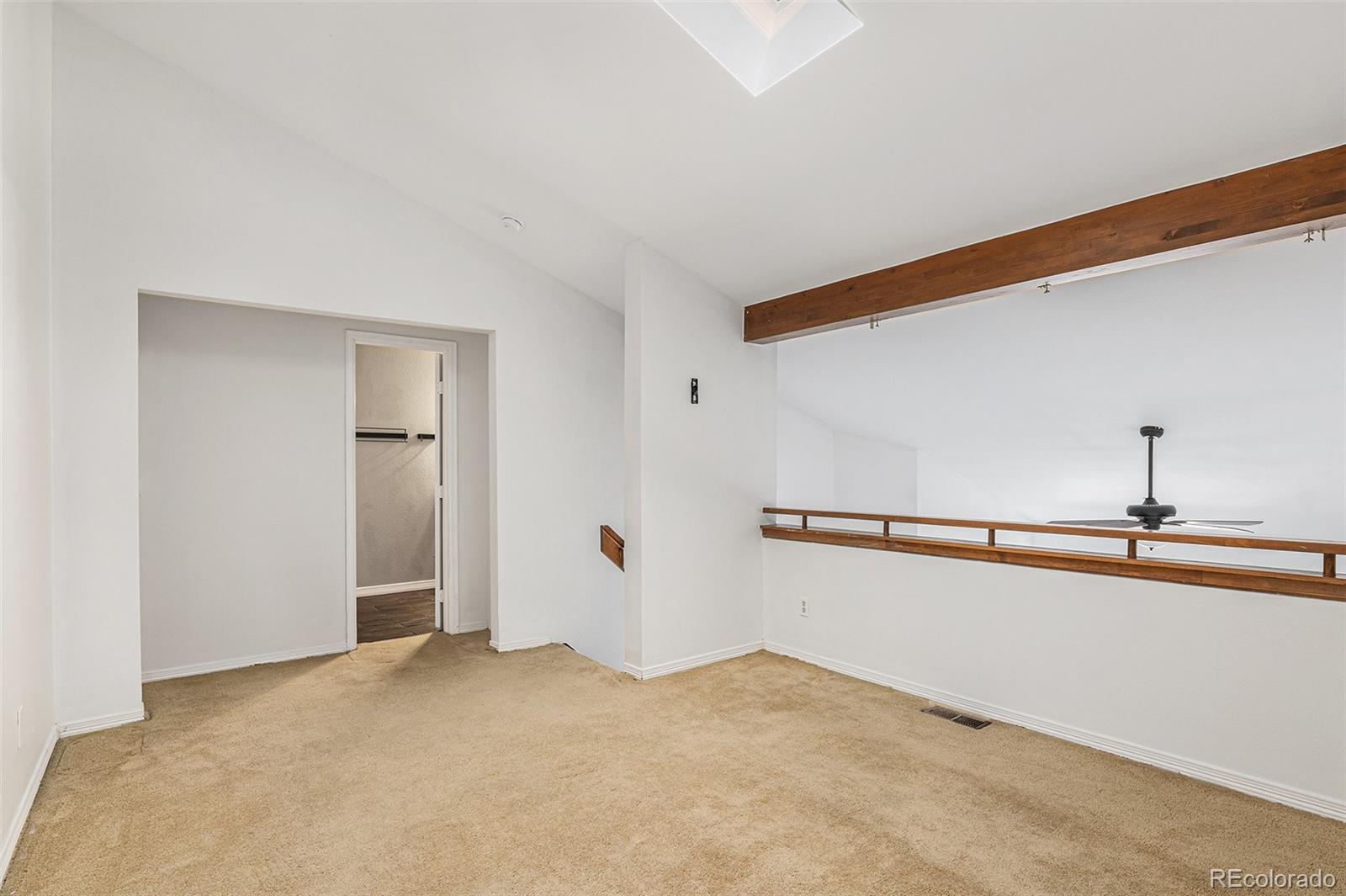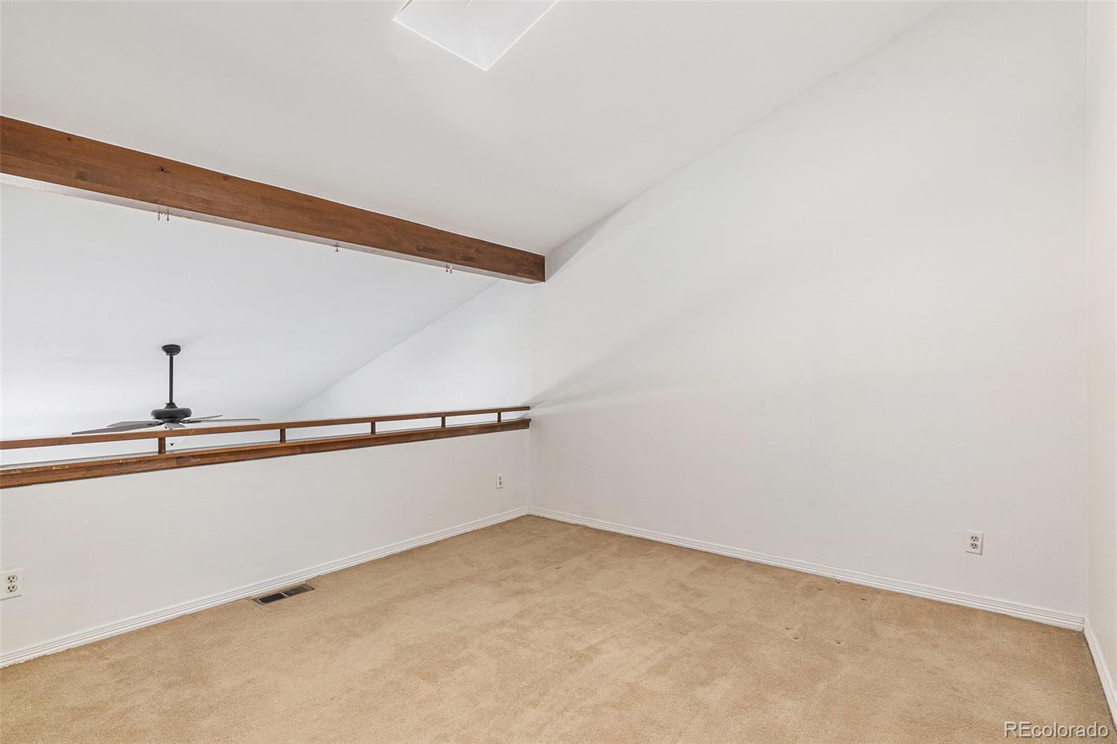 See Supplements for details on PNC Bank's amazing loan program for this condo. $7500 grant + 1% of loan amount to buyer. FREE MONEY FOR YOUR BUYER. Penthouse-Level Condo in Hunter’s Run – Freshly Painted & Move-In Ready! Welcome home to this beautifully updated penthouse-level condo in the desirable Hunter's Run community, now featuring fresh interior paint throughout for a clean, modern feel. This open and sunny floorplan offers a spacious family room with a cozy wood-burning fireplace and access to a private balcony with additional storage and a utility closet. The main-level primary bedroom boasts two closets, direct access to the patio, and an en-suite full bathroom. Upstairs, you’ll find a rare second bedroom option complete with skylights, a generous walk-in closet, and a hard-to-find second bathroom with a tiled shower—ideal for guests, roommates, or a home office setup. Enjoy low-maintenance living with low HOA dues that include access to the community pool, water, snow removal, and exterior maintenance. Located in the highly sought-after Cherry Creek School District, this home offers easy access to I-25, I-225, DTC, Downtown Denver, bus routes, and light rail. You’re also just minutes from the scenic High Line Canal Trail and Cherry Creek State Park.