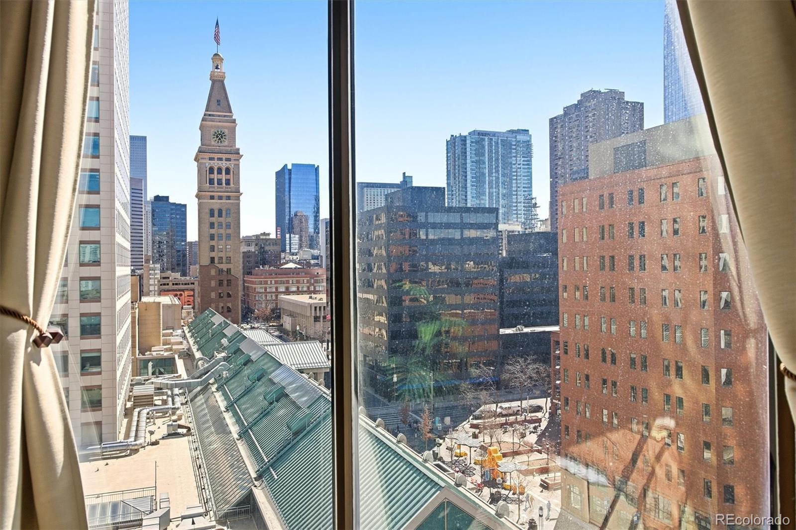 Welcome to elevated urban living in the heart of downtown Denver! Perched on the 12th floor of the iconic Barclay Towers, this beautifully updated corner-unit two-bedroom, two-bath condo blends modern design with unbeatable city convenience. The home has been thoughtfully refreshed, featuring an open-concept layout allowing natural light and conversation to flow effortlessly throughout the space. Floor-to-ceiling windows frame stunning views of the downtown skyline. The kitchen opens into the living area - perfect for entertaining. The living space includes a Murphy bed, providing a stylish and functional option for overnight guests without sacrificing everyday living space. Both bathrooms highlight new finishes, while the spacious primary suite offers an on-suite bath and a peaceful retreat above the city. The second bedroom works beautifully as a guest room, home office, or flexible space for modern living. Residents of Barclay Towers enjoy exceptional amenities including a rooftop pool, fitness center with sweeping Rocky Mountain views, and a plaza-level garden with seating and grill stations. The comprehensive HOA covers nearly everything—24-hour concierge with security check-in, on-site management, heat, A/C, cable, internet, water, trash, recycling, snow removal, bike storage, and laundry facilities—making downtown living effortless. With a dedicated parking space and an unbeatable location just steps from Larimer Square, Union Station, Coors Field, Ball Arena, and the Denver Performing Arts Complex, the best of Denver’s dining, culture, and entertainment is right outside your door. Experience the perfect blend of comfort, style, and city energy—welcome home to Barclay Towers #1205.