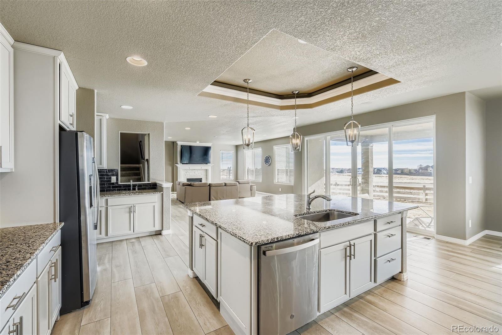 Click the Virtual Tour link to view the 3D walkthrough. Discounted rate options and no lender fee future refinancing may be available for qualified buyers of this home. Welcome to this beautiful two-story home offering an impressive layout designed for both everyday comfort and entertaining. Upon entry, a dedicated office and formal dining room set a refined tone, while the bright living room with a fireplace anchors the open main level. The modern kitchen features a large island with bar seating, a wet bar, and seamless flow into the living and dining spaces. Upstairs, a loft adds flexibility, and the stunning split-level primary suite feels like a private retreat with a sitting area and fireplace, spacious bedroom, and an ensuite bath with dual vanities, a standalone tub, walk-in shower, and walk-in closet. Two additional upstairs bedrooms each include their own ensuite bath and walk-in closet, while the finished basement offers a massive living area, a dedicated media space, plus an additional bedroom and full bath. Located in the desirable Peyton area, this home enjoys wide open surroundings with easy access to local parks, golf courses, and nearby trails. Shopping, dining, and everyday conveniences are just a short drive away, with quick routes into Colorado Springs for commuting or entertainment. The fully fenced backyard features a covered patio and plenty of green space, creating an ideal setting for outdoor relaxation and gatherings.