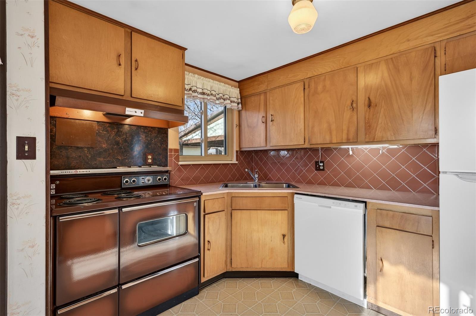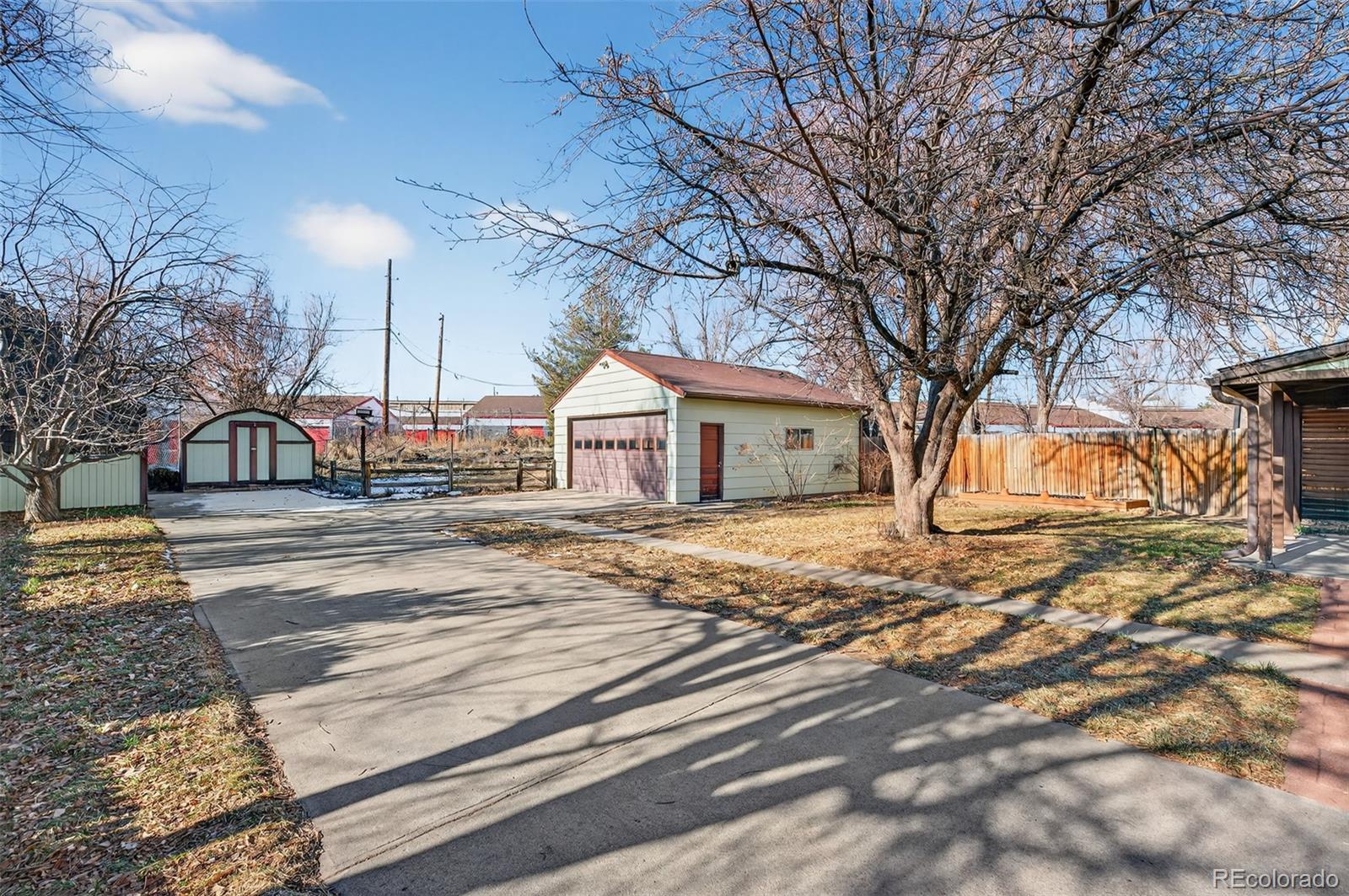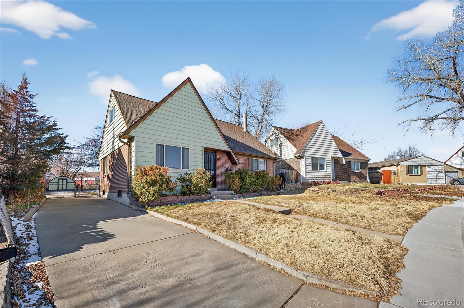 Well-maintained, charming cottage-style 2-story home, original owner for 60+ years. The home has good bones, with 1960's and 70's finishes. 4 bedrooms, 2 baths. Upstairs bedrooms have cathedral-style ceilings, large bedroom upstairs could be the Master. Fully finished basement with a large family room and wood fireplace, upright piano, and oak desk. A small paneled office in the basement includes a desk, a chair, and shelving. Newer windows, refrigerator, dishwasher, antique original range, Central air, internet connections, and more. This home has lots to offer and great potential. Oversized lot with oversized detached garage and two storage sheds. Back patio for entertaining, concrete driveway with extra parking space. Mature trees, one apple and one peach tree, a large garden area at the back of the property. Flooring is Carpet, tile, vinyl, vinyl tile, and hardwood Near Broken Tee golf course, shopping, and food. Less than a mile from the Oxford-City of Sheridan light rail station. One block from the bus. Close to Sheridan schools. Easy access to Sante Fe (85)and Hampden (285), Bike trails nearby as well. This home is going to go fast, selling As-IS condition Priced to sell