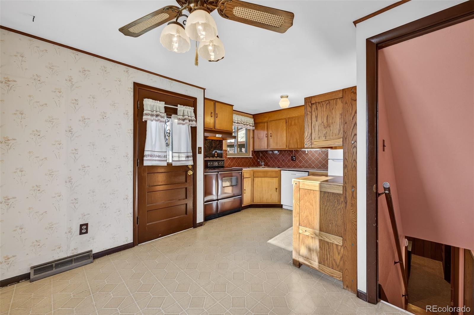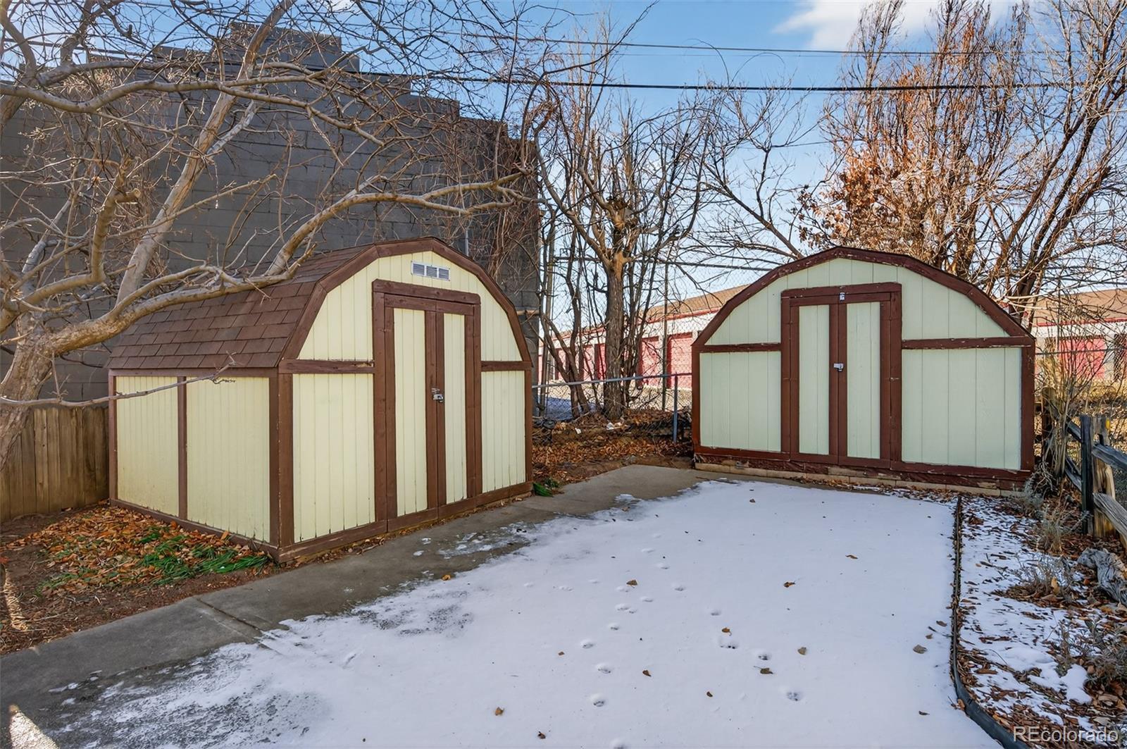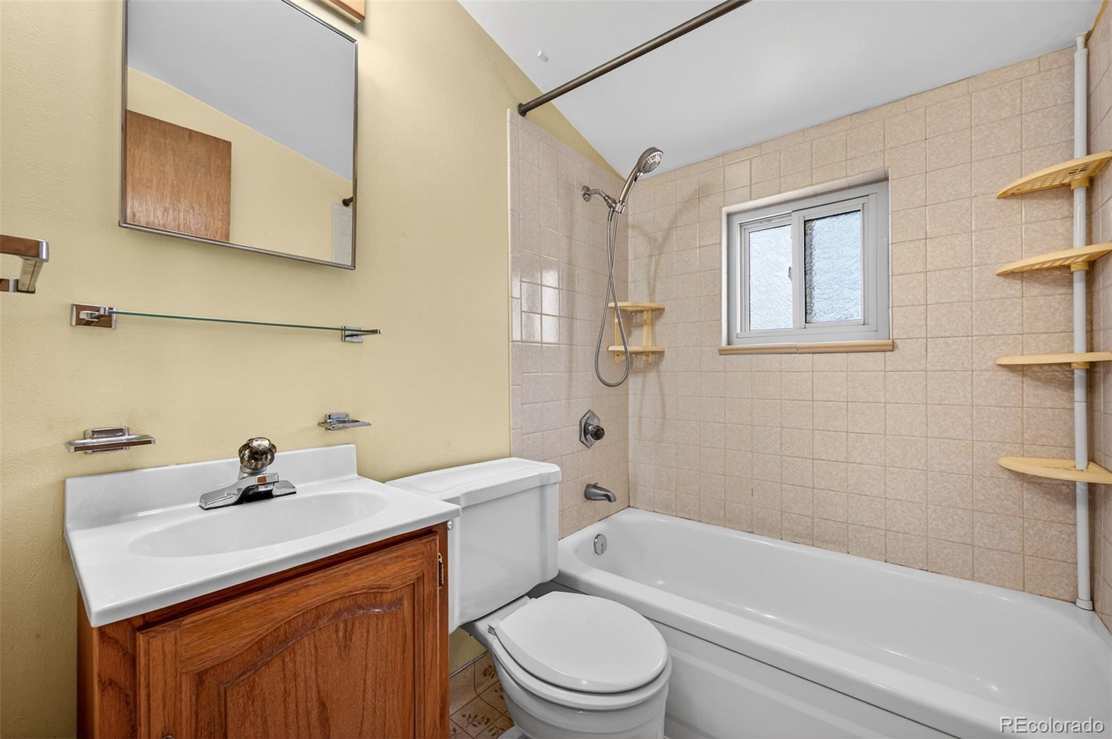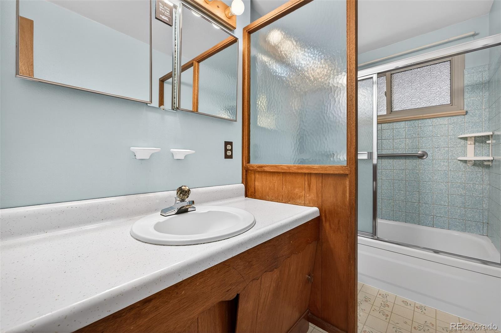 Well-maintained, charming cottage-style 2-story home, original owner for 60+ years. The home has good bones, with 1960's and 70's finishes. 4 bedrooms, 2 baths. Upstairs bedrooms have cathedral-style ceilings, large bedroom upstairs could be the Master. Fully finished basement with a large family room and wood fireplace, upright piano, and oak desk. A small paneled office in the basement includes a desk, a chair, and shelving. Newer windows, refrigerator, dishwasher, antique original range, Central air, internet connections, and more. This home has lots to offer and great potential. Oversized lot with oversized detached garage and two storage sheds. Back patio for entertaining, concrete driveway with extra parking space. Mature trees, one apple and one peach tree, a large garden area at the back of the property. Flooring is Carpet, tile, vinyl, vinyl tile, and hardwood Near Broken Tee golf course, shopping, and food. Less than a mile from the Oxford-City of Sheridan light rail station. One block from the bus. Close to Sheridan schools. Easy access to Sante Fe (85)and Hampden (285), Bike trails nearby as well. This home is going to go fast, selling As-IS condition Priced to sell