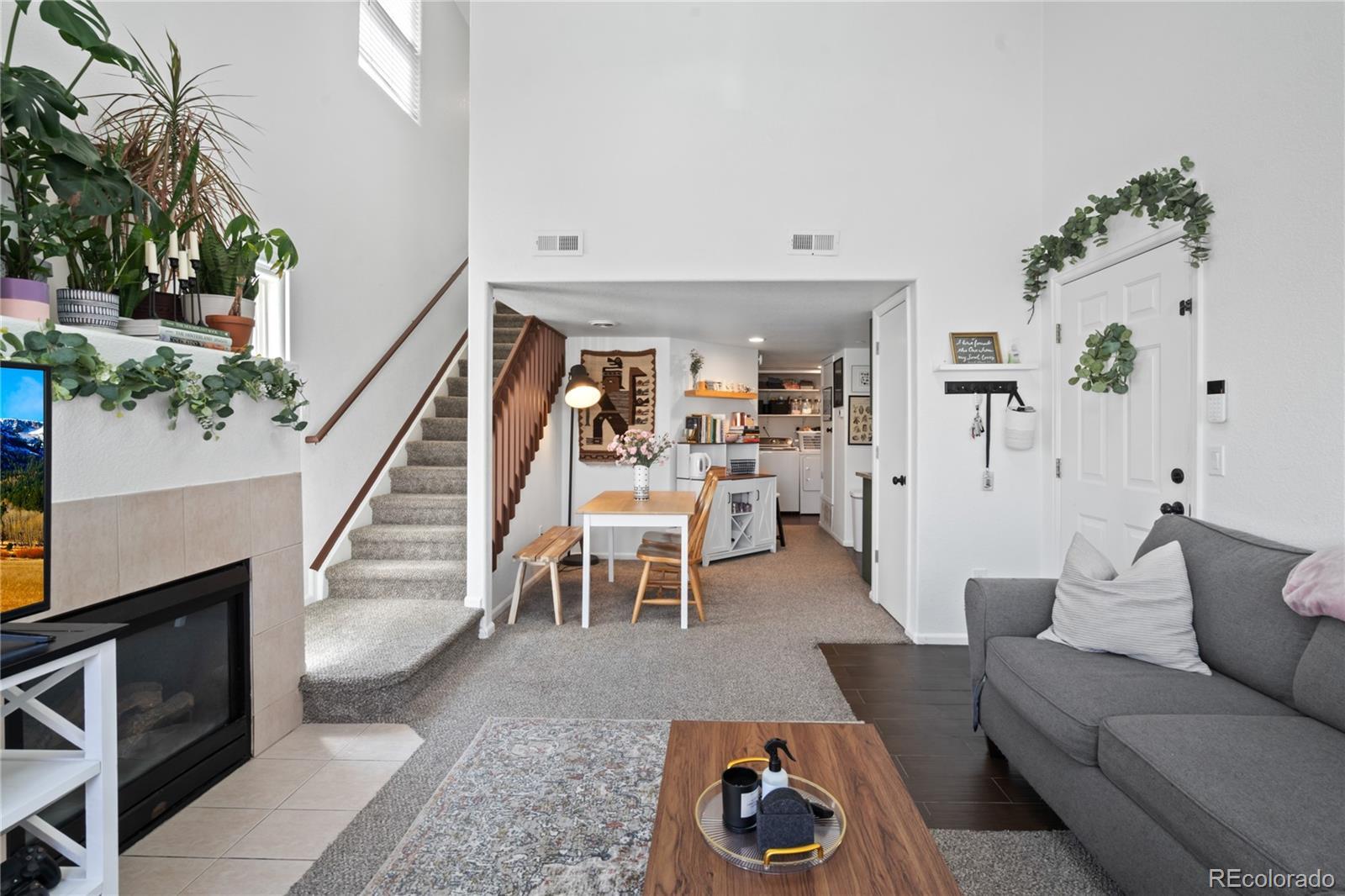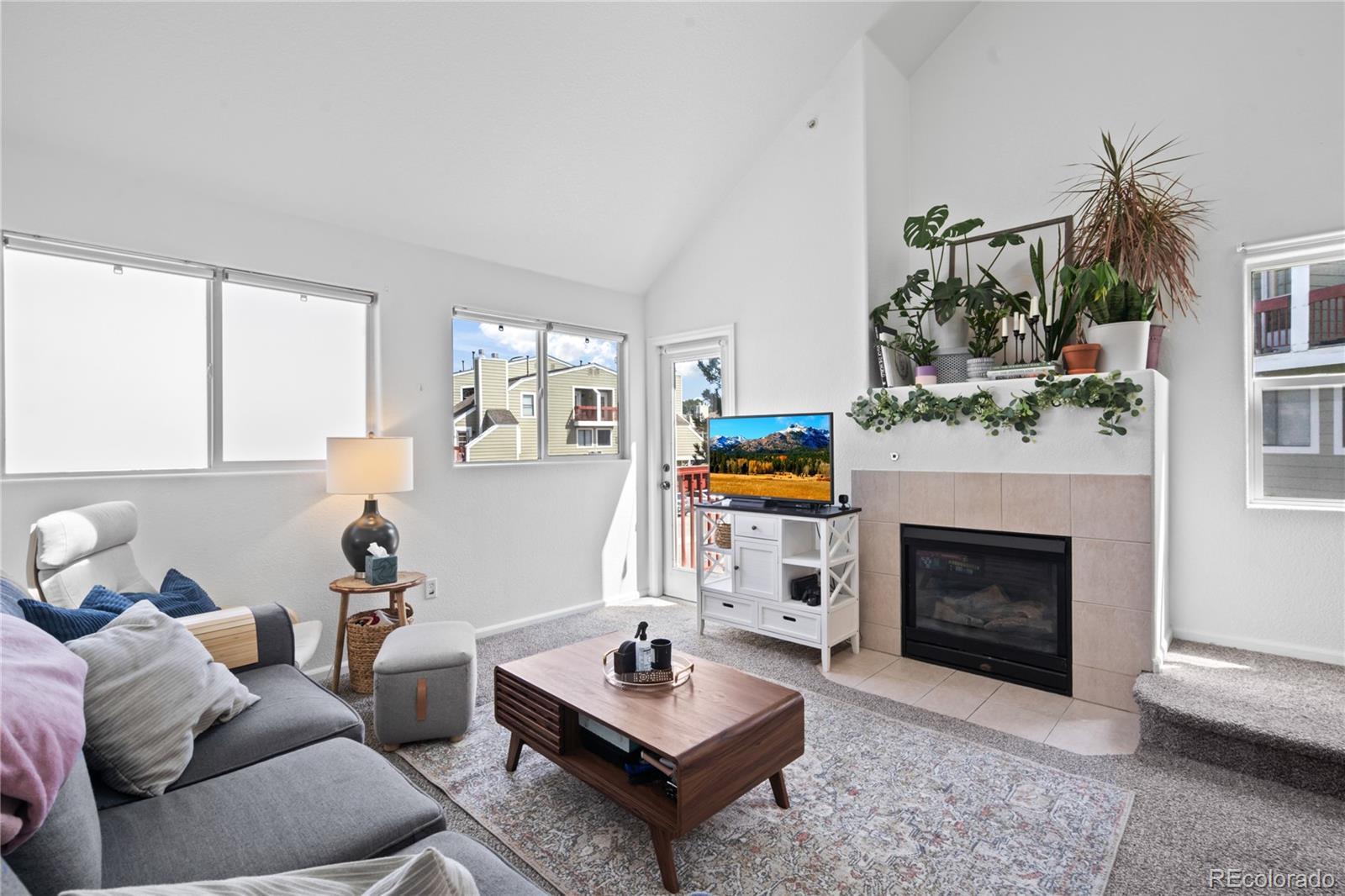 Welcome to effortless urban living in the heart of Aurora! This beautifully updated 2-bed, 2-bath penthouse condo in the sought-after Sable Cove community combines style, comfort, and convenience in a bright, open layout. Soaring vaulted ceilings, a skylight, and a cozy gas fireplace create a warm, sun-filled living space that flows into a modern kitchen with granite countertops, tile backsplash, and updated cabinetry. The main level includes a comfortable bedroom, full bath, and in-unit laundry, while the private upper-level primary suite offers a loft-style retreat with balcony access, a walk-in closet, and ensuite bath. Enjoy your private balcony—perfect for morning coffee or watching colorful Colorado sunsets. This pet-friendly community offers low-maintenance living with HOA coverage for exterior care, roof, water, and access to amenities including an outdoor pool, clubhouse, and ample parking. Ideally located just minutes from Town Center at Aurora, the RTD Metro Center Station, and with quick access to I-225 and Anschutz Medical Campus, this condo blends modern convenience with a vibrant lifestyle. Whether you’re a first-time buyer, investor, or anyone seeking a low-maintenance home close to everything, Unit #9 delivers space, light, and location in one perfect package.