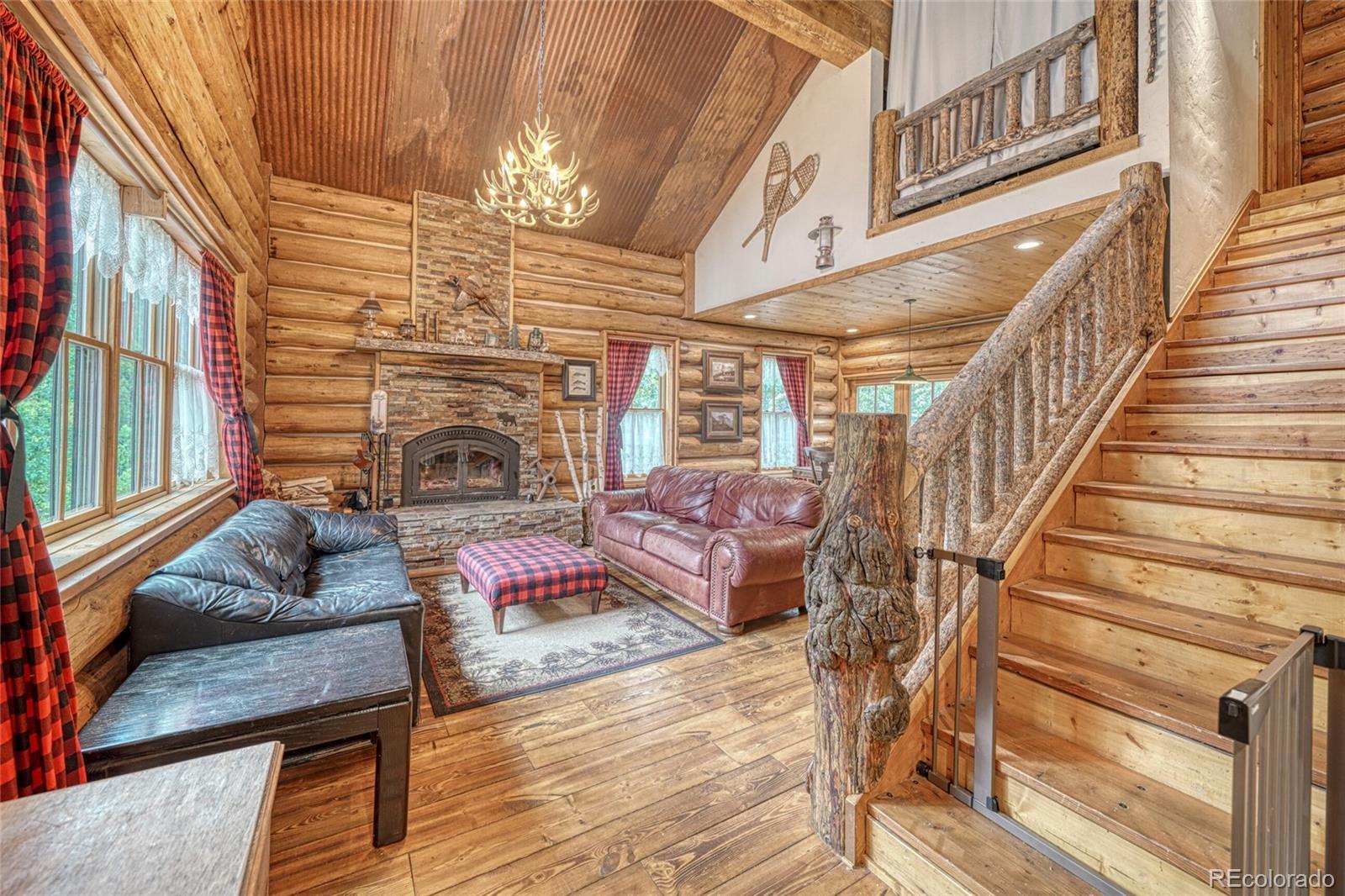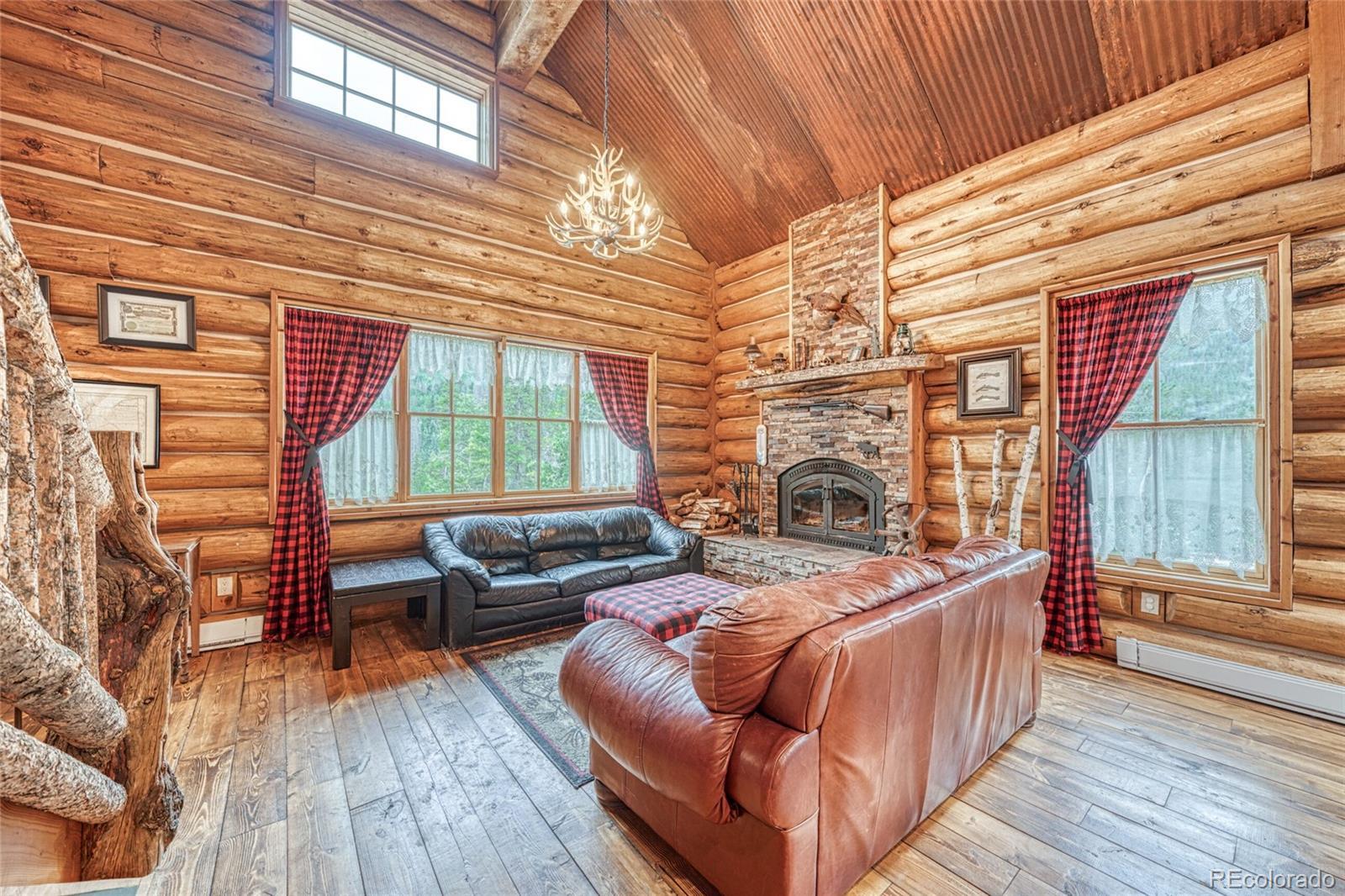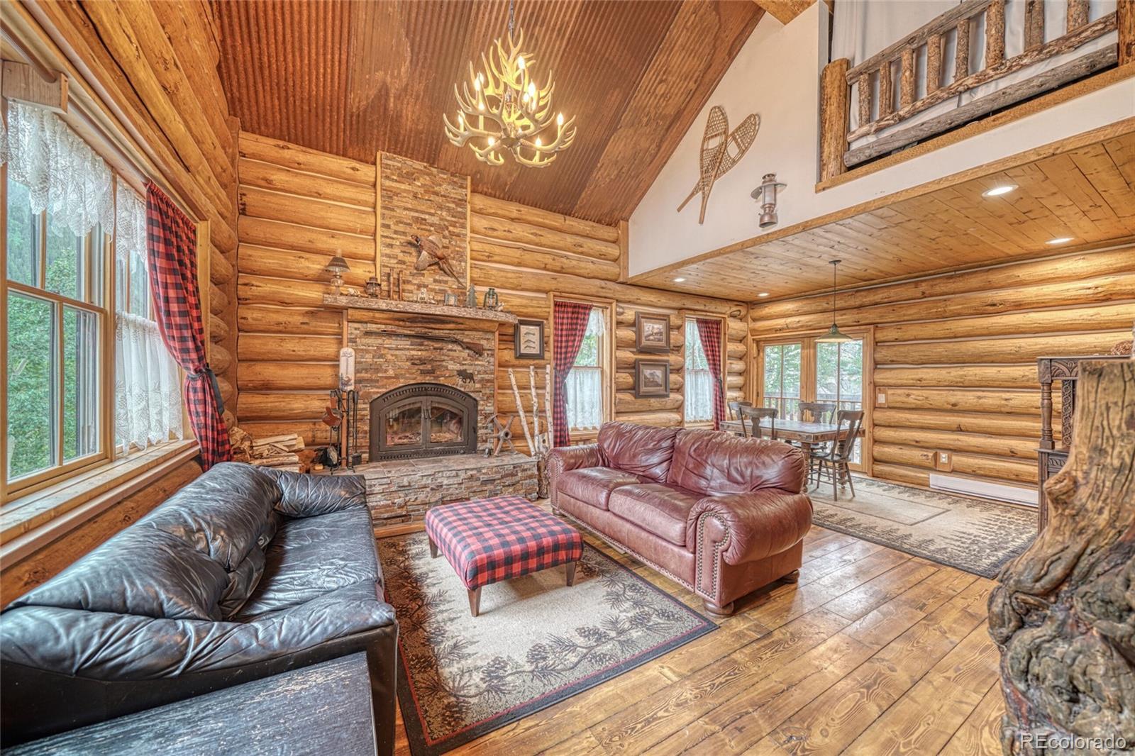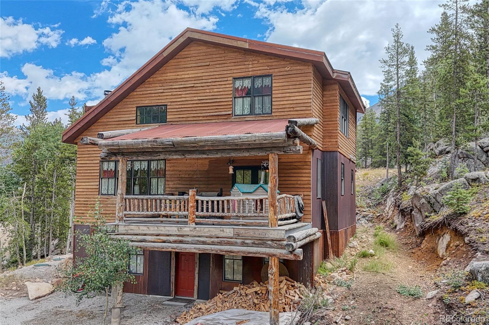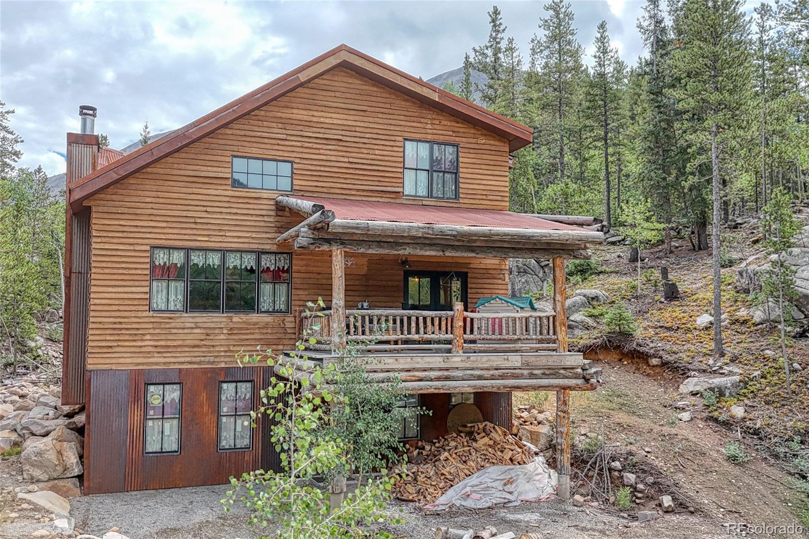 This charming custom log home in Historic St. Elmo is nestled among towering pines, golden aspens, and dramatic rock outcroppings. Built by a local craftsman this home features energy-efficient ICF forms and highly insulated SIP panels up to 40-60 R, ensuring warmth and comfort through every Colorado season. Step onto the inviting front balcony with your morning coffee and watch for moose and other wildlife grazing along Lake Lillian. Inside, the soaring ceilings, massive log beams, and an extra-large wood-burning fireplace create a true mountain retreat. The open living area is filled with natural light through double-pane Pella windows, while the custom kitchen boasts an island and stainless steel appliances. Upstairs, two lofts overlook the main living area, offering a spacious and airy feel. The primary suite features a large window perfect for stargazing, and the primary bath includes a charming antique soaking tub. All three bathrooms feature in-floor radiant heat for year-round comfort. The partially finished walkout basement offers endless possibilities with full Pella windows, multiple rooms. It’s ready to be customized as an additional primary suite, family room, game room, or guest retreat. This property also comes with a unique recreational advantage: legal access from the driveway to local roads for ATV and snowmobile use, no need to trailer your toys once you arrive! The county maintains the road year-round, with reliable snow plowing all the way into town. Adding to its charm, a piece of one of the original 1800s mills of St. Elmo rests on the property, offering a tangible connection to Colorado history. Just a short stroll around the corner, you’ll find yourself in the heart of one of the most well-preserved ghost towns in the state. Whether you’re seeking a year-round home, a mountain getaway, or a legacy property with historic character, this one-of-a-kind log home is a rare opportunity to own a true piece of Colorado. Please see our virtual tour!