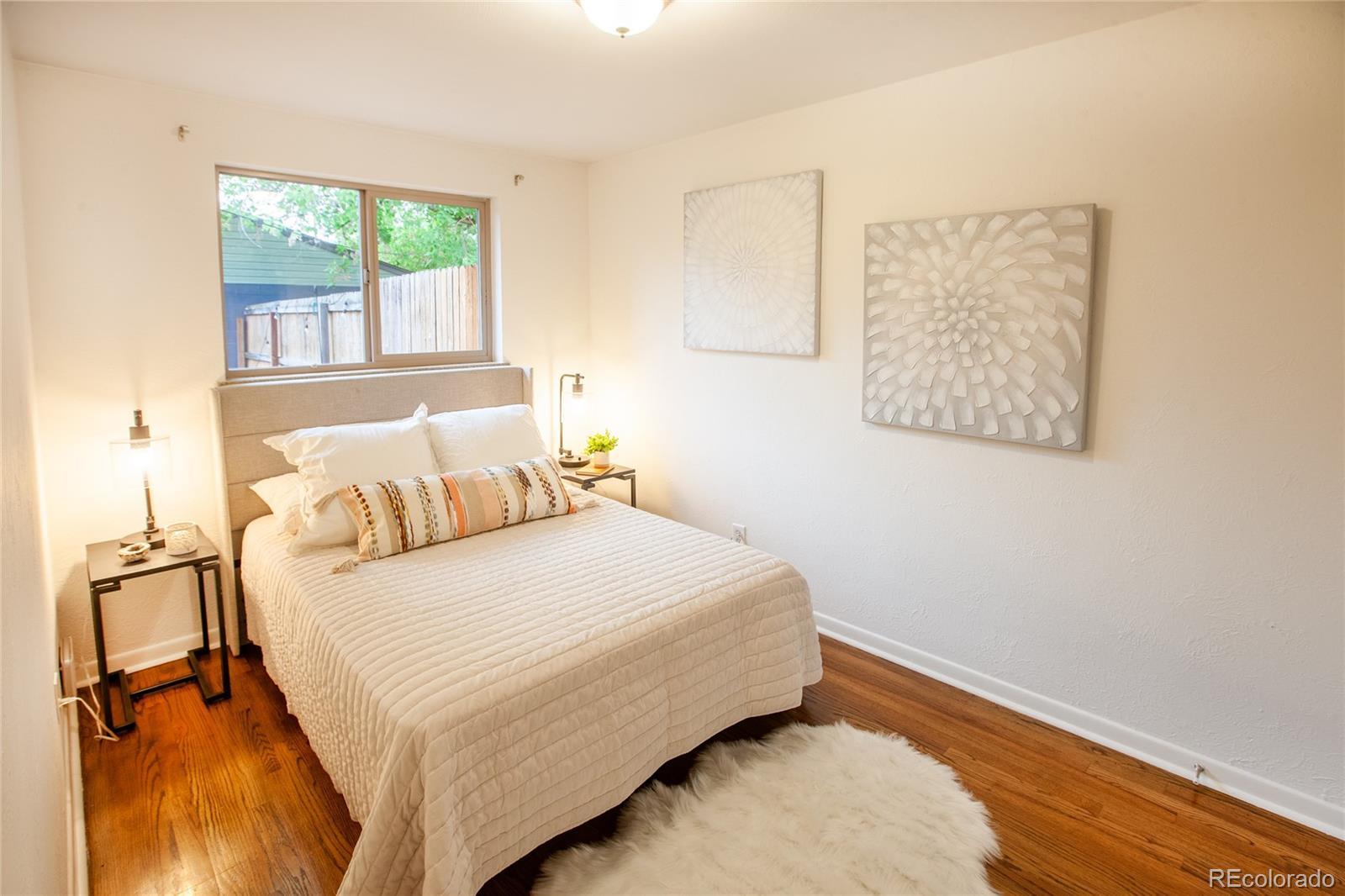 Charming brick bungalow style half-duplex with a private, fenced backyard in the desirable Slo-Hi neighborhood. Inside, this cozy home has a warm feel with mid-century accents, abundant natural light from large windows, wood floors throughout, and a remodeled bathroom. The east-facing backyard is perfect for morning coffee or relaxing at the end of the day, with plenty of space for al fresco dining, kids or pets to play-and even includes a vegetable garden. The extra-long detached one-car garage offers space for both your vehicle and additional storage. You'll be just a short walk from the bakeries and breweries of Sloan's Lake, and just a quick stroll away from the boutiques, restaurants, and Sunday Farmer's Market on 32nd in the Highlands. With easy access to downtown Denver, just 5 minutes to Highway 36, and a straight shot up I-70 to the mountains, this home truly has it all. If you've been waiting for a great starter home in a desirable neighborhood-pet-friendly, cozy, and walkable to everything you need-this is it!