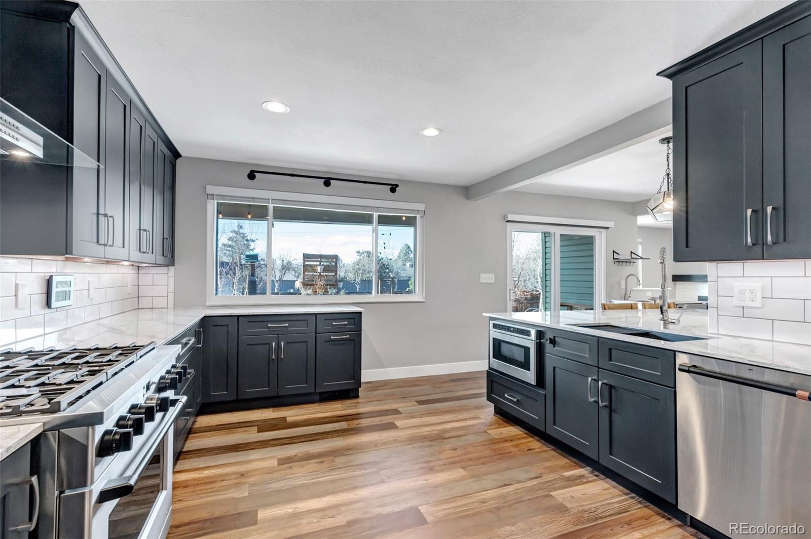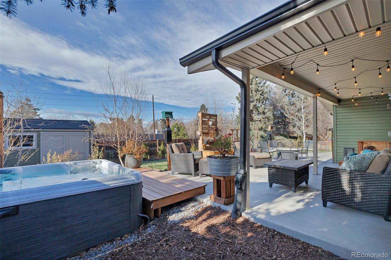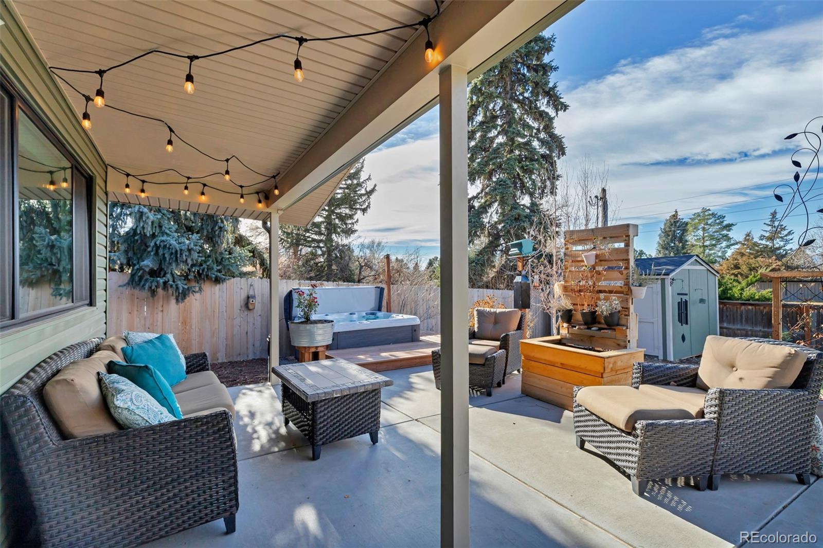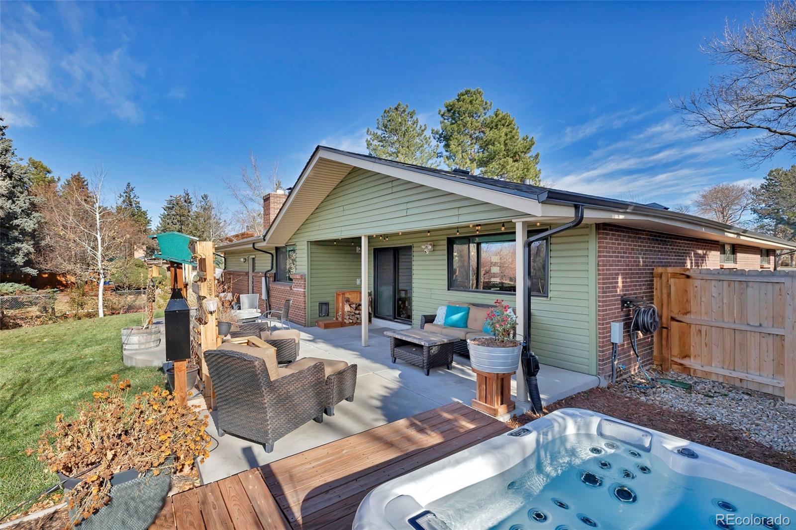 Over $175K in updates from 2021-2024 make this exceptional ranch-style home in the sought-after Palos Verdes subdivision truly move-in ready. This 4-bedroom, 3-bath residence offers approximately 2,577 sq ft of finished living space on a 9,888 sq ft lot. The main level features new LVP flooring and a stunning 2024 kitchen remodel with Café appliances, quartz countertops, 36” gas stove with pot-filler, pull-out spice drawers, and a black composite sink. The finished basement includes a bedroom, full bath, home office, laundry/storage rooms, and a large media-style great room with stadium seating platform (removable). Extensive system and exterior upgrades include: Class 4 roof, siding, and gutters (2022); furnace, A/C, water heater, and whole-home filtration system (2023); windows and slider (2024); and radon mitigation (2021). Outdoor spaces feature a fully fenced backyard, Rachio smart irrigation system including a customizable drip irrigation zone for the backyard, a 10×12 shed, a partially covered patio, and a brand-new hot tub (2024). Ideally located ~0.7 mi to Greenwood Elementary, ~1.2 mi to West Middle, and ~2.8 mi to Cherry Creek High within the Cherry Creek School District. Koelbel Library (~0.4 mi), Palos Verdes Park (~0.4 mi), and local grocery options (~0.5 mi) are nearby. Only ~4 mi to the Denver Tech Center, ~3 mi to I-25, and ~1.8 mi to Dry Creek Light Rail Station—offering quick access to downtown Denver, restaurants, and employers. A two-car attached garage completes this beautifully updated home that blends modern upgrades, outdoor living, and unbeatable convenience in one of Centennial’s most desirable neighborhoods. Check out the drone fly through on YouTube: https://youtu.be/SXLpjJ72Hpk