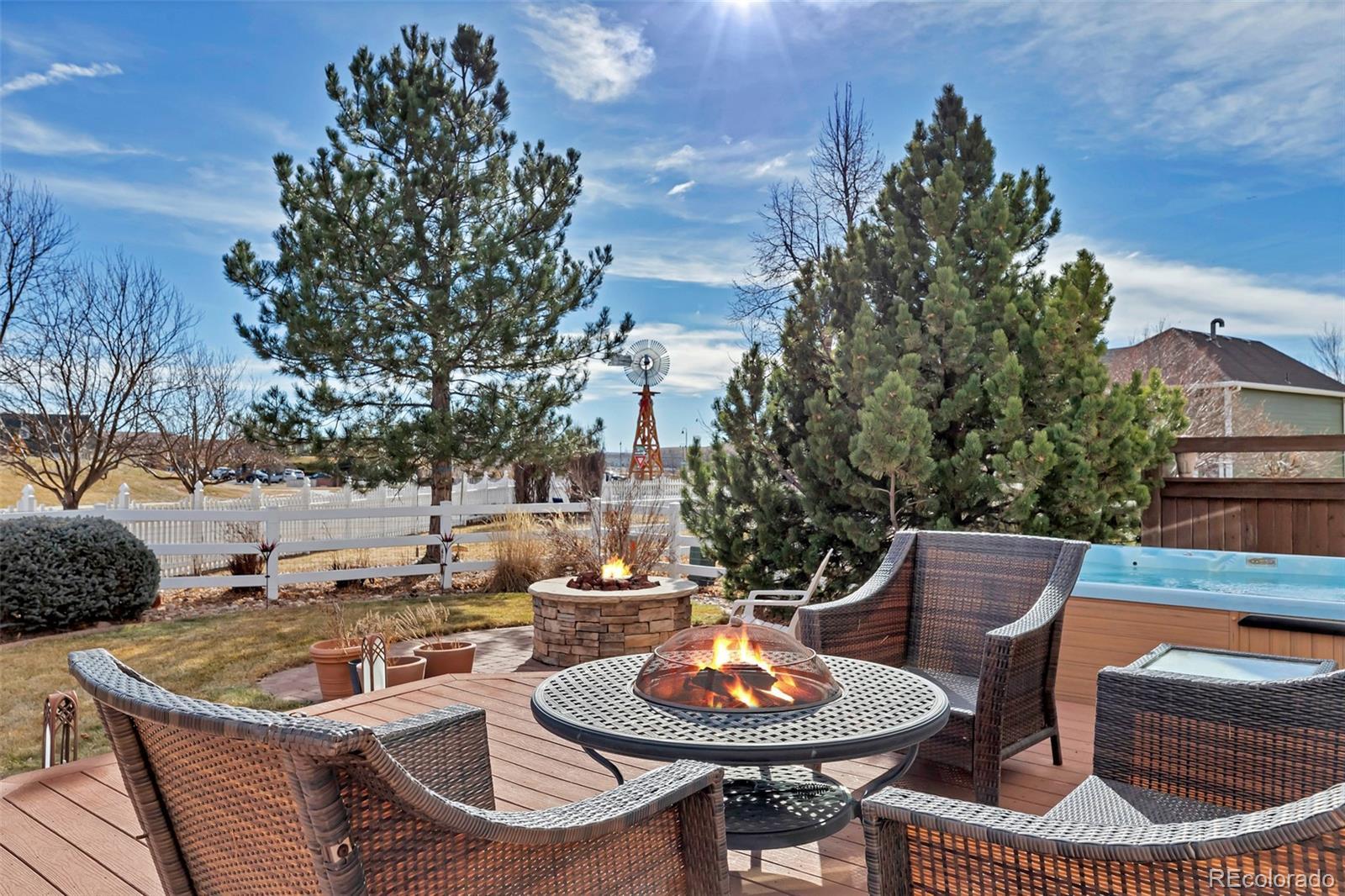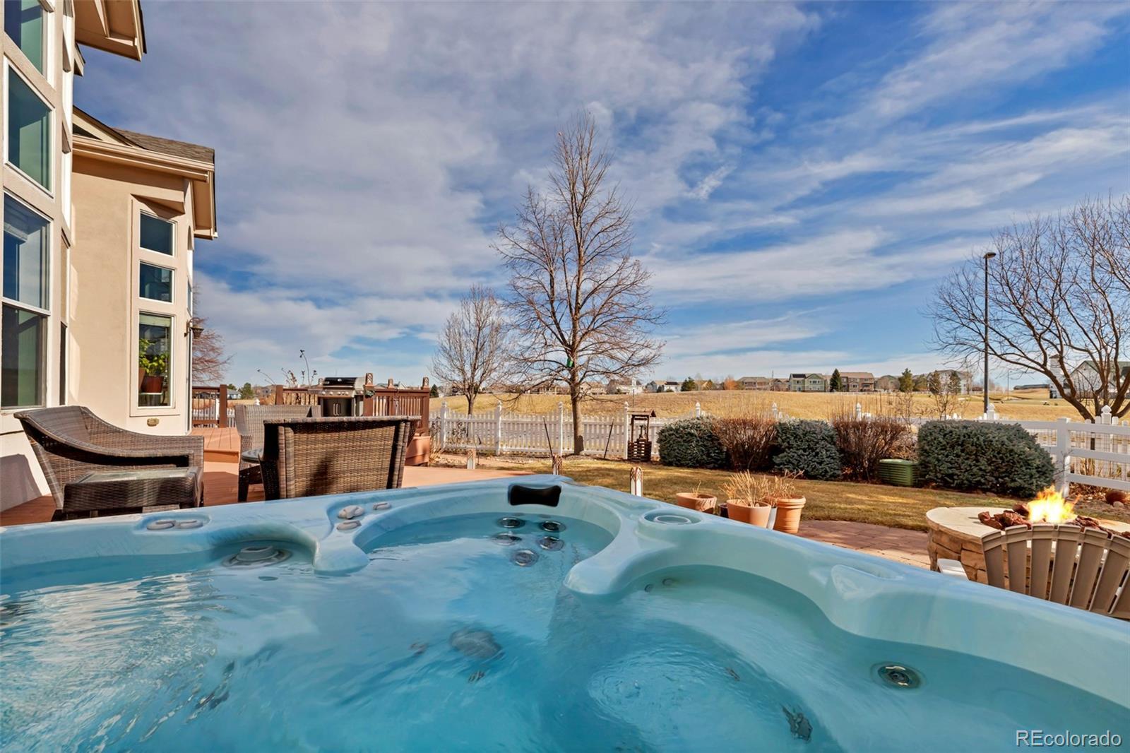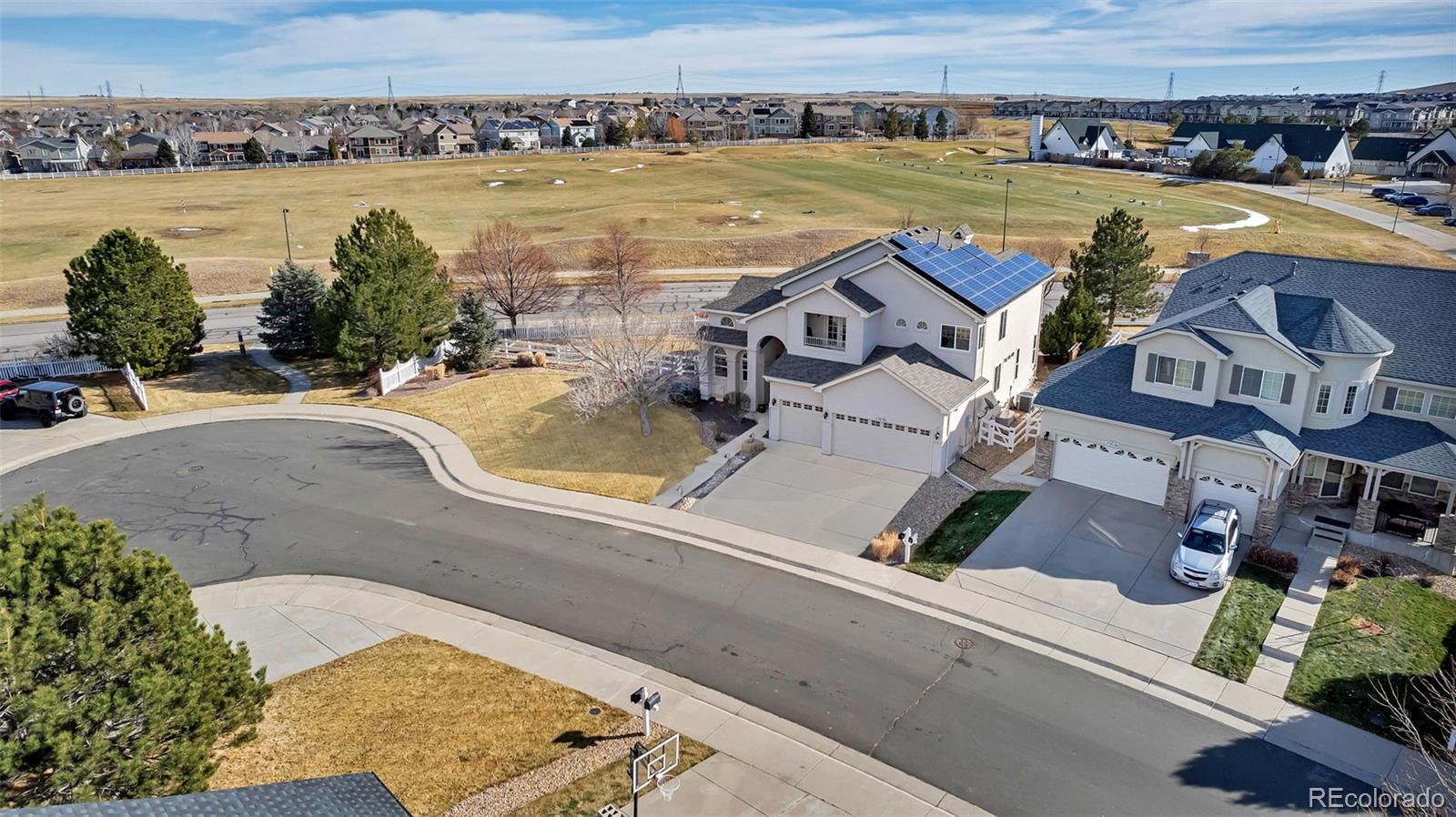 Must see this beautiful 2-story home in Aurora! Located in the Murphy Creek Golf Course community at the end of a cul-de-sac, this home features 5 bedrooms, 3 bathrooms, an upper level loft and a fully finished basement! This very bright & open floor plan greets you with wood flooring, lots of big windows with natural light & vaulted ceilings. Spacious kitchen with granite countertops, stainless steel appliances, plenty of cabinets with pull out drawers. Separate area for laundry off of the 3-car garage with cabinets. All appliances stay! Eat-in space off of the kitchen with patio doors leading out onto the backyard deck. Home is located right across the street from the golf course driving range, golf shop & Murphy Creek Tavern. The backyard is perfect for entertaining as it sits on over 11,000 sq ft lot, has a trek deck, gas line grill, gas fire pit area & hot tub. Solar panels are fully PAID off until: 2034! Sprinklers front & back with drip lines throughout the professionally landscaped backyard. Has a raised garden bed with self watering irrigation system hooked up to the sprinkler system. Enjoy relaxing in your main level front living room area or in the family room with a cozy fireplace to keep you warm on a chilly Colorado night! Main floor Primary bedroom, 5-piece bath & walk-in closet. The upper level has a loft, full bathroom with double sinks & 3 bedrooms. One of which has a balcony! The basement is over 1,500 finished sq ft. Has a dry sauna!! The 5th bedroom in the basement has been made into a custom storage room. Located just 3 blocks from Murphy Creek K-8 school, the Clubhouse, tennis court & community pool. The proximity to E-470 gives easy access to other major highways, shopping, dining and entertainment at Southlands mall. Unwind from your day by sitting on your covered front porch or in the beautiful backyard. All you need to do is move in and make this your happy home!