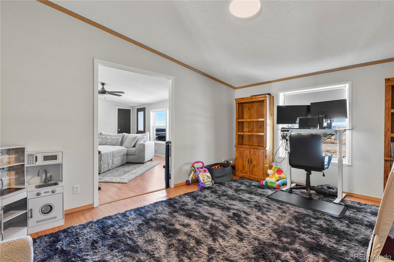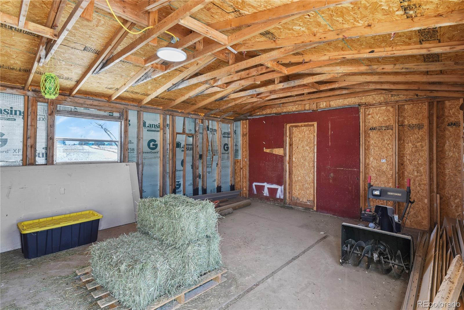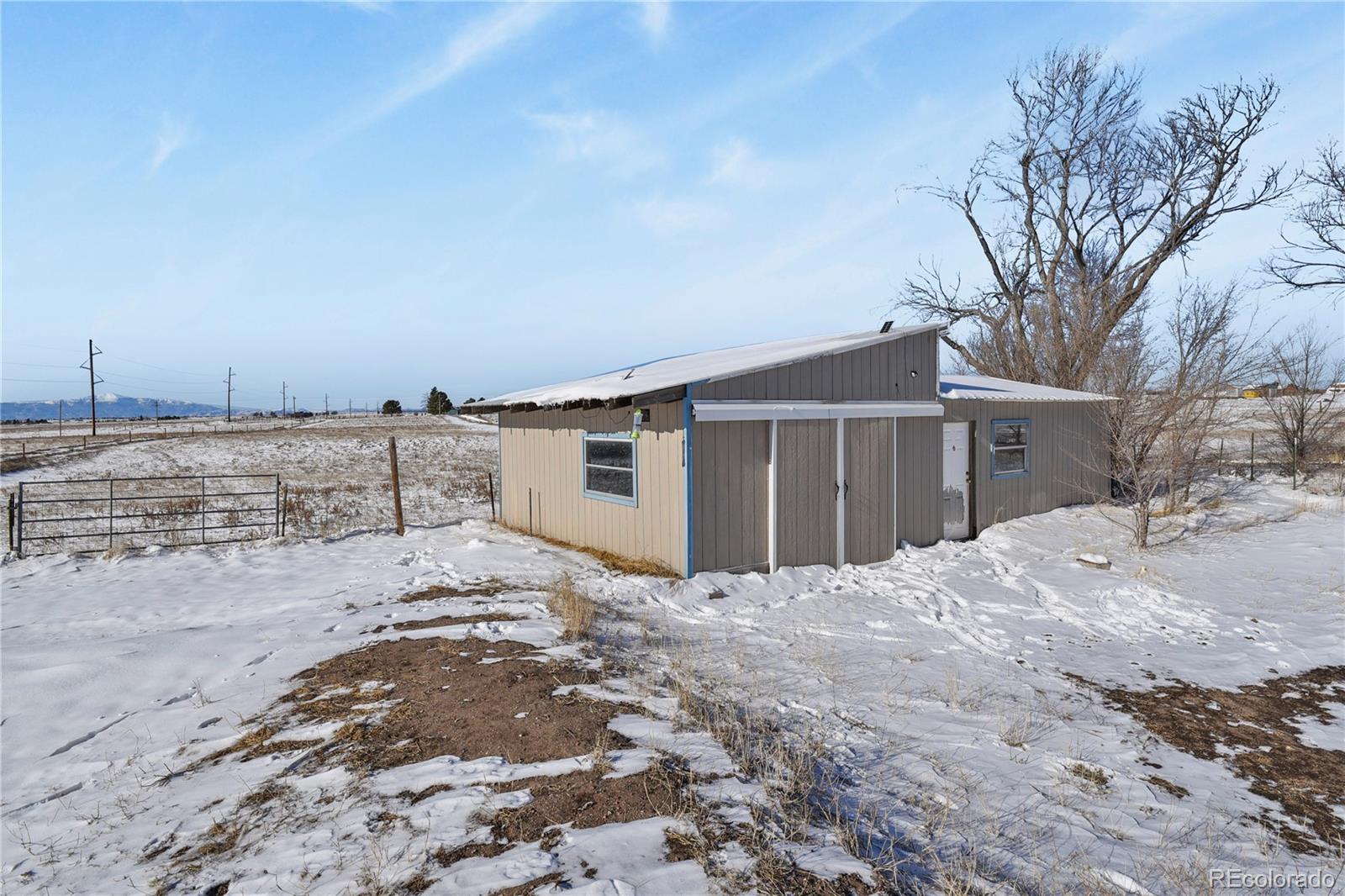 This thoughtfully updated 3-bedroom, 2-bath home offers true main-level living on 8.80 acres in Calhan, with no HOA and no covenants to restrict how the property can be used. Approximately 4.5–5 acres are fenced and cross-fenced, providing flexibility for animals, equipment, and future use while still feeling manageable and functional. Inside, the home has been improved with updates that focus on longevity and everyday comfort. The kitchen features newly painted cabinetry, brand-new countertops throughout the entire home (2025), and a 2023 refrigerator. A 2024 reverse osmosis system provides high-quality drinking water, and most electrical receptacles have been upgraded to tamper-resistant outlets. Major system updates include new well pump electrical in 2025, plumbing was jet cleaned in 2023, a 2022 roof, and 2017 A/C. A Google thermostat and Bluetooth-controlled ceiling fans were added in 2025, and both bathrooms have been remodeled into clean, updated spaces ready for immediate use. The acreage is set up to be used, not just enjoyed. The property includes a 250-square-foot chicken run attached to an 8x8x8 coop with electrical, a 20’x30’ barn with power, and an impressive 25’x50’ garage with electrical, an RV hookup, and a dedicated RV door, ideal for trailers, recreational vehicles, or workshop space. A wood-burning fireplace adds warmth and character during Colorado winters. With usable land, breathtaking views, meaningful upgrades, and true freedom of use, this property offers a rare combination of space, infrastructure, and practicality.