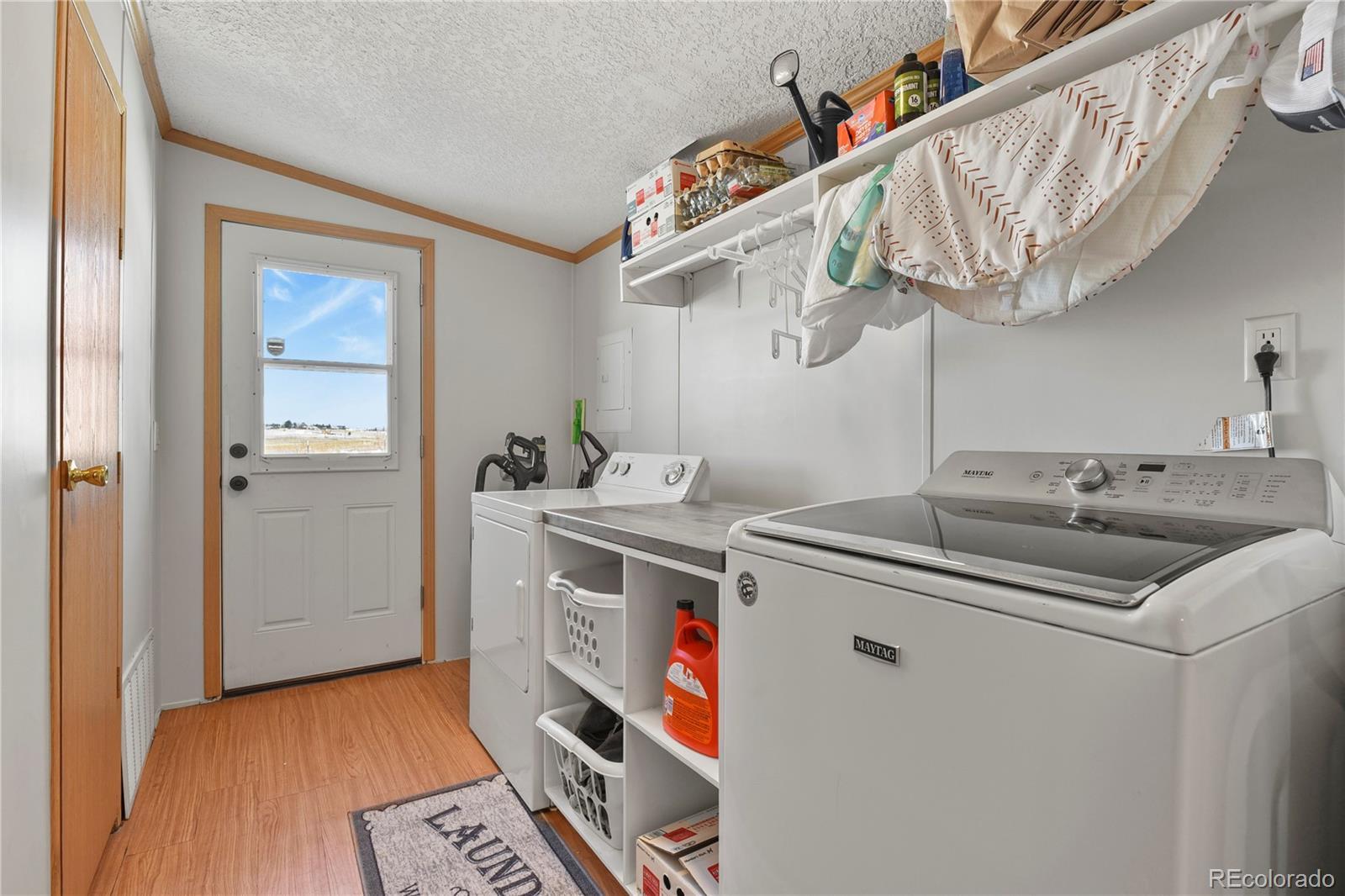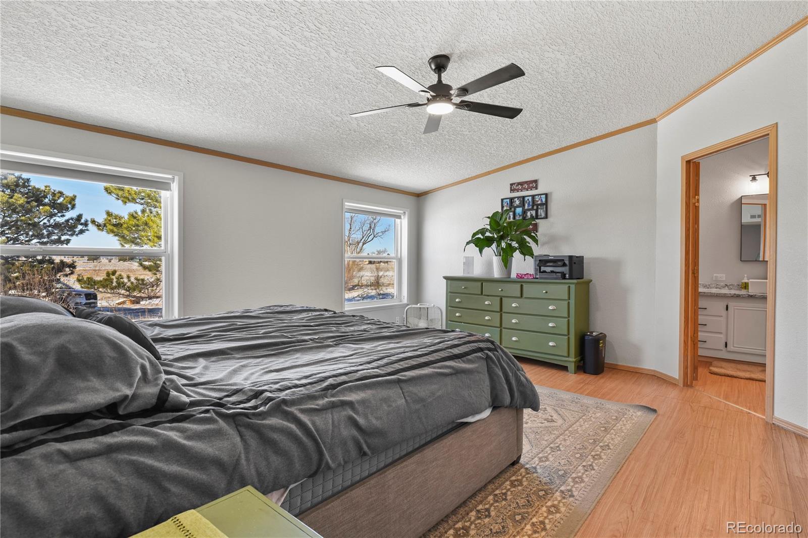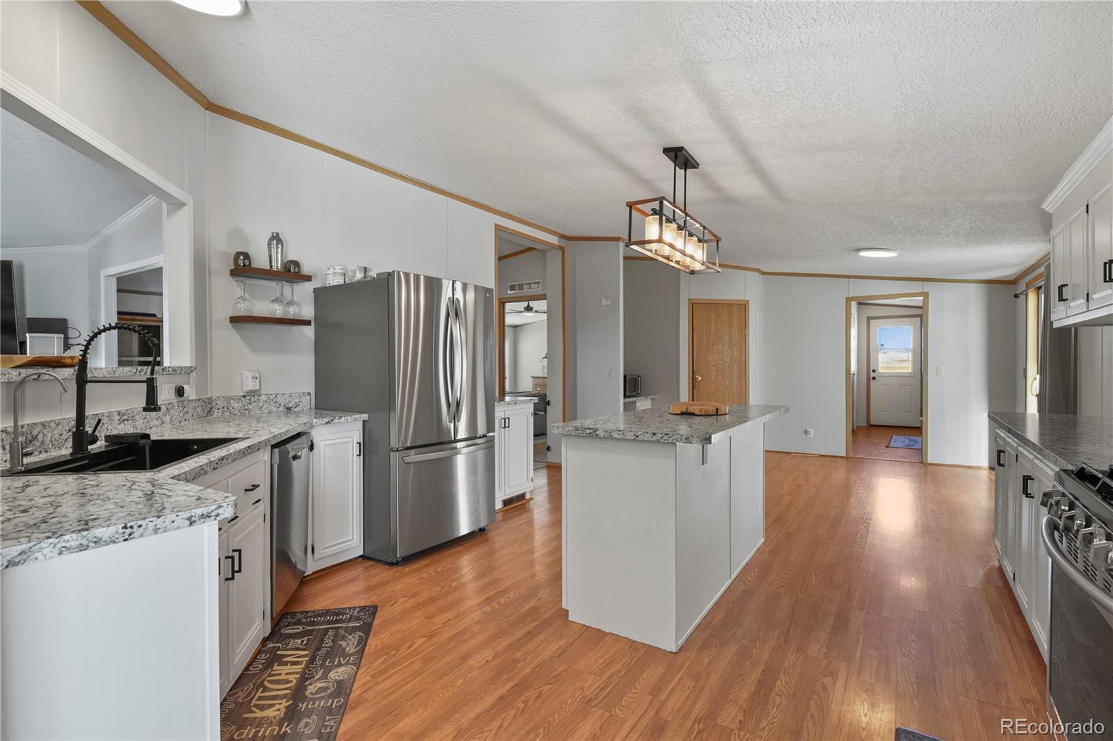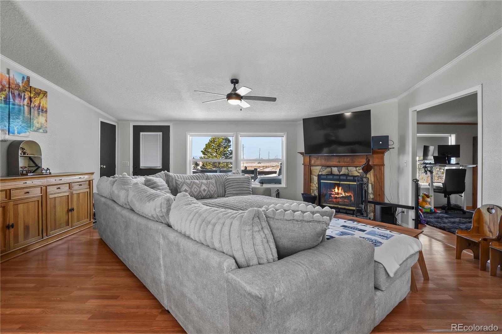 This thoughtfully updated 3-bedroom, 2-bath home offers true main-level living on 8.80 acres in Calhan, with no HOA and no covenants to restrict how the property can be used. Approximately 4.5–5 acres are fenced and cross-fenced, providing flexibility for animals, equipment, and future use while still feeling manageable and functional. Inside, the home has been improved with updates that focus on longevity and everyday comfort. The kitchen features newly painted cabinetry, brand-new countertops throughout the entire home (2025), and a 2023 refrigerator. A 2024 reverse osmosis system provides high-quality drinking water, and most electrical receptacles have been upgraded to tamper-resistant outlets. Major system updates include new well pump electrical in 2025, plumbing was jet cleaned in 2023, a 2022 roof, and 2017 A/C. A Google thermostat and Bluetooth-controlled ceiling fans were added in 2025, and both bathrooms have been remodeled into clean, updated spaces ready for immediate use. The acreage is set up to be used, not just enjoyed. The property includes a 250-square-foot chicken run attached to an 8x8x8 coop with electrical, a 20’x30’ barn with power, and an impressive 25’x50’ garage with electrical, an RV hookup, and a dedicated RV door, ideal for trailers, recreational vehicles, or workshop space. A wood-burning fireplace adds warmth and character during Colorado winters. With usable land, breathtaking views, meaningful upgrades, and true freedom of use, this property offers a rare combination of space, infrastructure, and practicality.