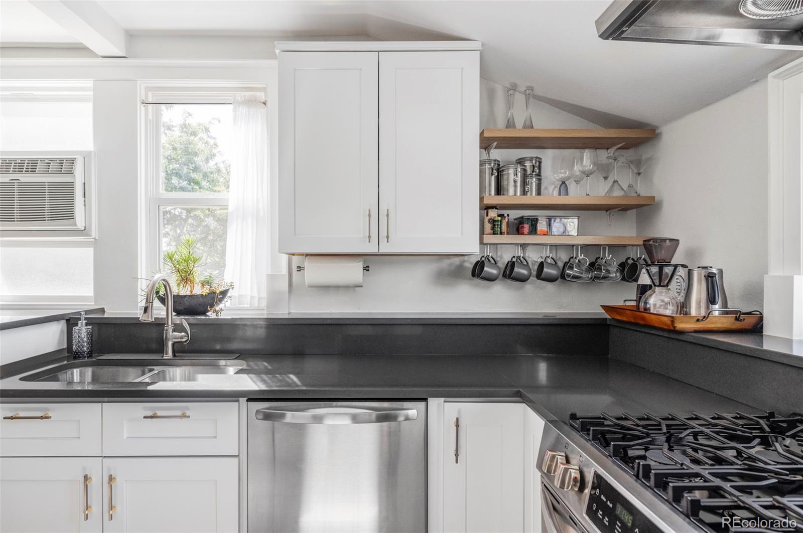 Experience the best of Denver living in this stylish condo, perfectly situated in the historic Waldron Bonfills mansion in Capitol Hill. Originally built in 1896 and fully renovated in 2018, this residence blends timeless architectural charm with modern updates. Step inside to tall ceilings and abundant natural light pouring through large windows. With only one shared wall, this corner unit offers rare privacy and treetop views in a central location. The open layout flows seamlessly between the living, dining, and kitchen areas, creating a bright, welcoming space ideal for both daily living and entertaining. The kitchen is updated with stainless steel appliances, a gas range, plentiful cabinetry with soft-close doors, and sleek finishes. An oversized eat-in bar seats three to four people, perfect for casual meals, socializing, or working from home. The spacious bedroom includes two closets with a custom-designed organization system, while the refreshed bathroom features newer fixtures and classic tile throughout. A versatile sunroom adds flexibility for a home office, reading nook, workout area, or guest space. Practical perks include a deeded parking space and personal storage unit—rare finds in Capitol Hill. Laundry facilities are located on the first floor, free to use, and shared with only three other units. The low HOA fee of just $251 per month covers exterior maintenance, common area upkeep, and more—adding convenience and value to this charming home. Located in one of Denver’s most vibrant neighborhoods, this home puts you close to Cheesman Park, Civic Center Park, and endless opportunities to enjoy the outdoors. Grocery stores, coffee shops, restaurants, and entertainment are just steps away, while Downtown Denver and Cherry Creek are only minutes from your door, offering unlimited options for shopping, dining, and events. This rare offering strikes the perfect balance of historic charm, modern comfort, and unbeatable location.
