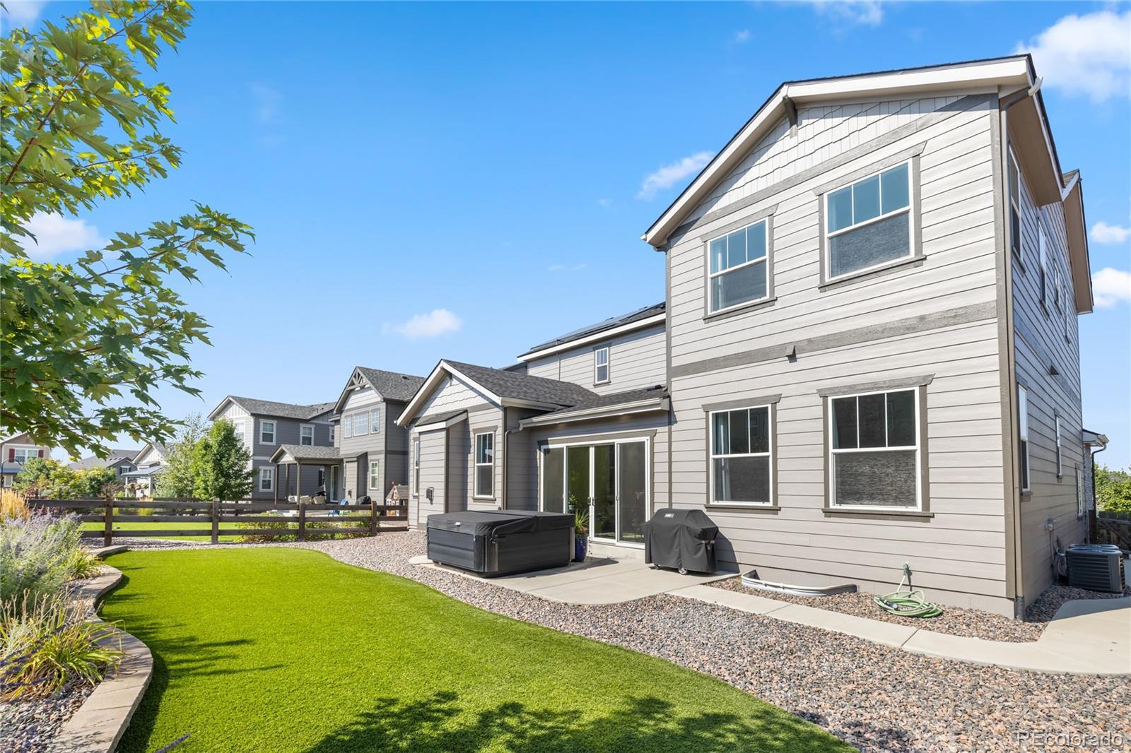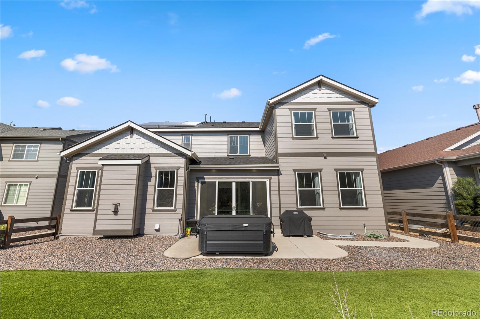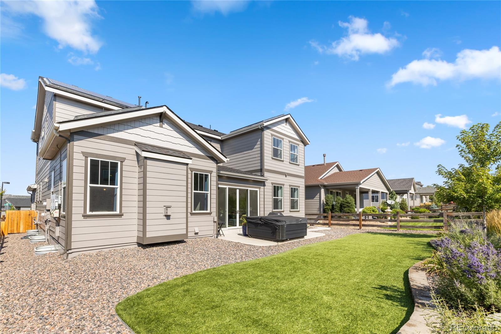 Welcome to this rare find in the highly sought-after Forest Trace neighborhood of Aurora! Nestled within the top-rated Cherry Creek School District, this 5-bedroom, 4-bath home is move-in ready and packed with upgrades that set it apart. Inside, you’ll find a thoughtfully designed layout featuring a main-floor guest suite, perfect for multigenerational living or visiting friends. The heart of the home flows seamlessly from the kitchen into the dining and living spaces, enhanced by a finished sunroom—a unique feature offering year-round natural light and versatile living options. Upstairs, retreat to the massive primary suite, complete with a spa-like bath and generous walk-in closet. Additional highlights include solar panels for energy efficiency, a working hot tub for relaxation, and five spacious bedrooms providing flexibility for home offices, hobbies, or growing families. Enjoy the best of Aurora living with an unbeatable location: walk to Southlands Mall for shopping, dining, and entertainment, or tee off at nearby Saddle Rock Golf Course, Heritage Eagle Bend Golf Club, and Blackstone Country Club—all less than 10 minutes away. Quick access to E-470 makes commuting and travel effortless. Don’t miss the chance to own a home that combines comfort, efficiency, and convenience in one of Aurora’s premier communities.