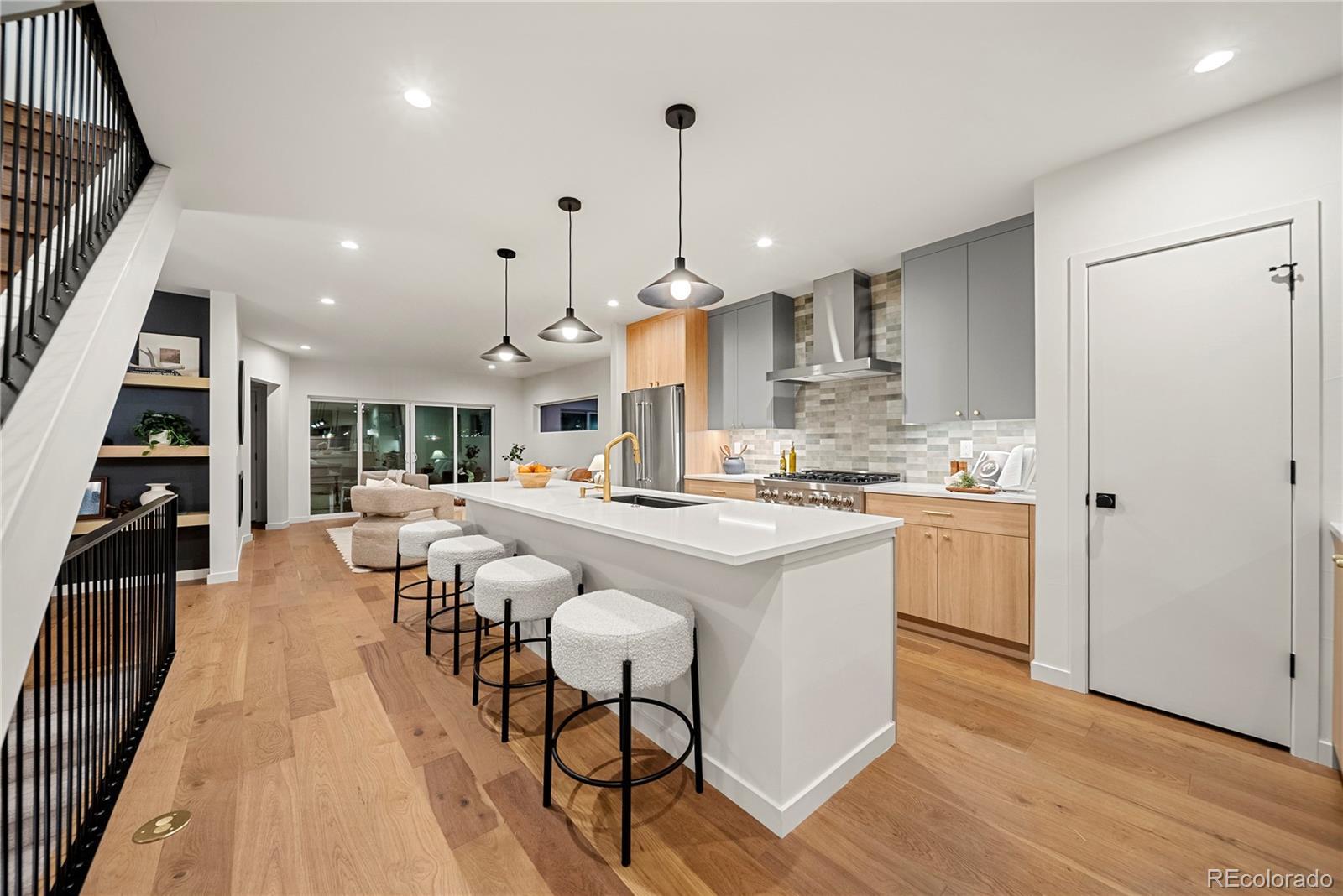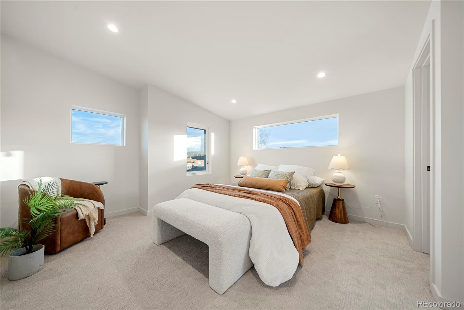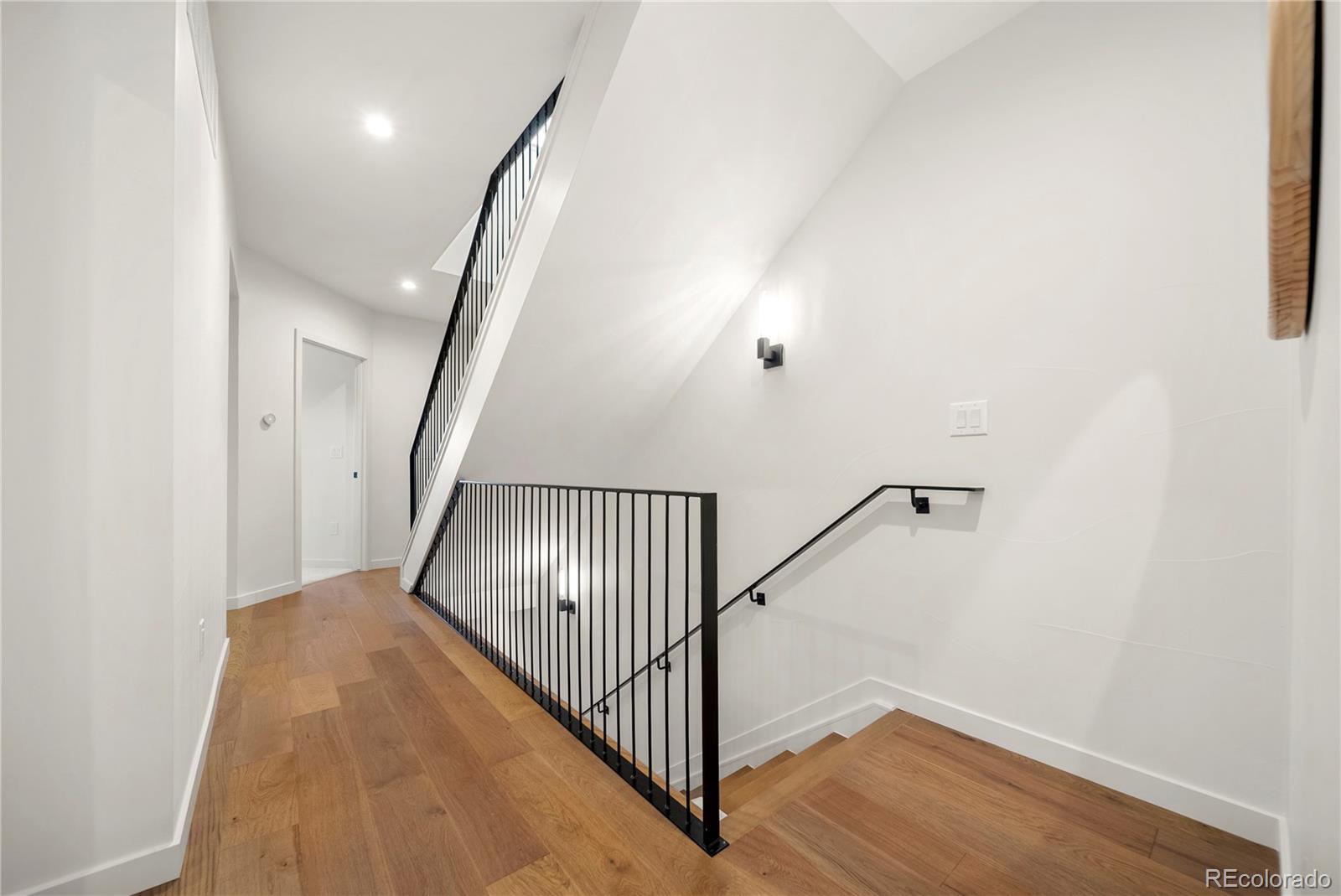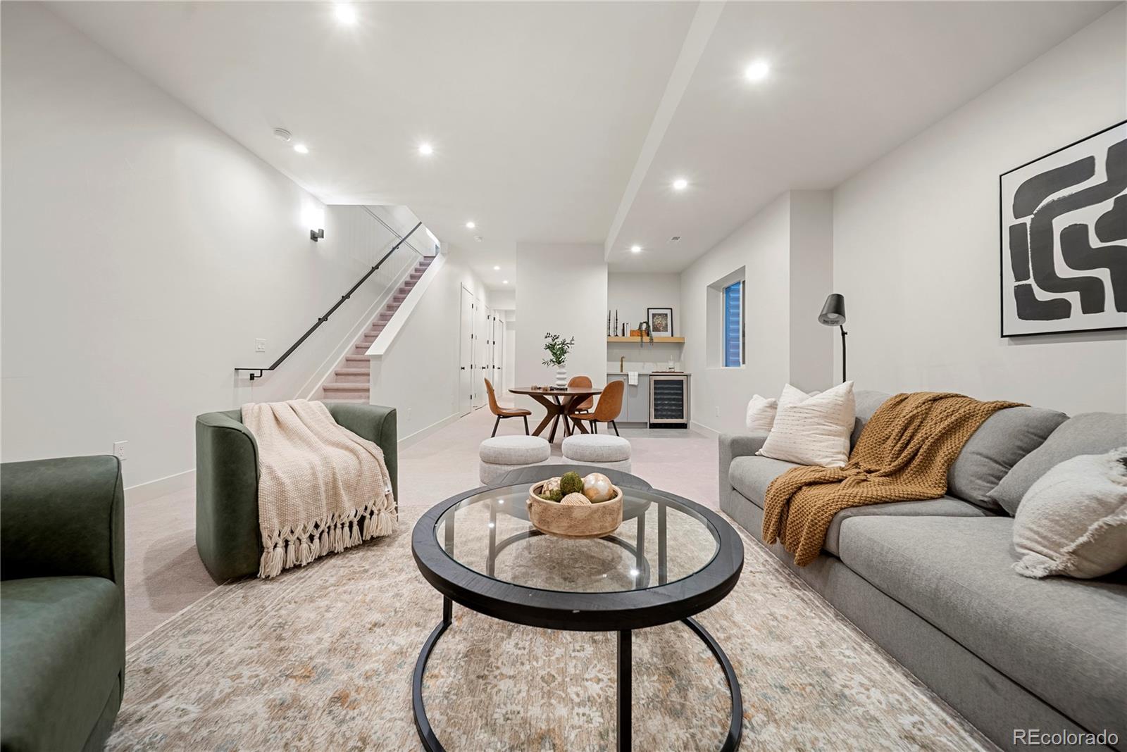 Seller Offering Permanent Rate Buy-Down Incentive (for Jumbo Loans)! Architecturally striking and impeccably finished, this newly built residence delivers a refined take on modern Denver living. Clean lines, natural materials, and thoughtful detailing define the interiors, beginning with a light-filled main level wrapped in wide-plank oak flooring and designed for seamless flow. The kitchen is both sculptural and functional, featuring a statement island, quartz countertops, and professional-grade stainless appliances—ideal for entertaining or everyday ease. A powder bath and custom mudroom complete the main floor with intention. The second level is anchored by a serene primary suite offering a private balcony, generous walk-in closet, and a spa-caliber five-piece bath finished with elevated selections. An additional ensuite bedroom, dedicated laundry room, and a versatile bonus space that the builder will convert into an office, nursery, or additional walk-in closet add flexibility and convenience. Designed for elevated entertaining, the third floor introduces another private bedroom suite alongside a loft with wet bar and an expansive rooftop deck capturing panoramic mountain views—an exceptional setting for sunset evenings and city lights. The finished basement extends the living space with 10-foot ceilings, a second wet bar with beverage refrigeration, and a spacious bedroom with full bath and egress windows, creating a bright and inviting lower level. Set moments from South Broadway’s acclaimed dining, coffee shops, parks, and light rail, this turnkey home offers a rare combination of modern design, adaptable spaces, and effortless access to downtown Denver.