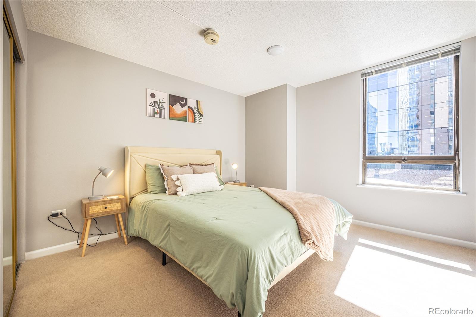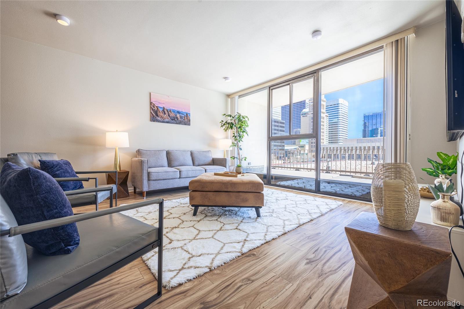 Welcome to your urban retreat in this completely renovated 2-bedroom, 2-bathroom condo, one block from the vibrant 16th Street and all downtown Denver has to offer. The spacious floorplan is perfect for couples, roommates, and small families. Quartz countertops, new flooring, and custom tilework throughout make this property a must-see. The condo's amenities are exceptional, offering a 24-hour front desk with secure access, a heated rooftop pool, one of the best apartment gyms you can find, a clubhouse billiards room, conference center, and convenient on-site laundry facilities. This condo is currently a successful midterm rental generating $3,600 to $4,100 per month. There is a 30-day minimum lease term and the HOA covers all utilities except for Wifi and cable. The furniture is negotiable with the sale, making it easy to move right in or continue to rent it for immediate income. Additionally, a parking spot is available for lease at $250 per month, ensuring hassle-free city living. This prime location puts you within walking distance of Denver's finest attractions, including the Denver Center for the Performing Arts, 16th St. Mall, Larimer Square, Ball Arena, Convention Center, and Coors Field with lots of public transportation within walking distance. Don't miss this chance to own a piece of downtown Denver living at its finest!