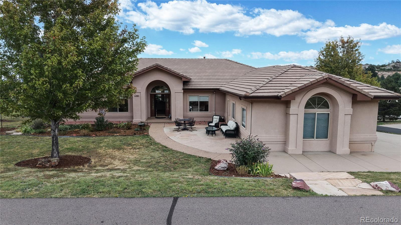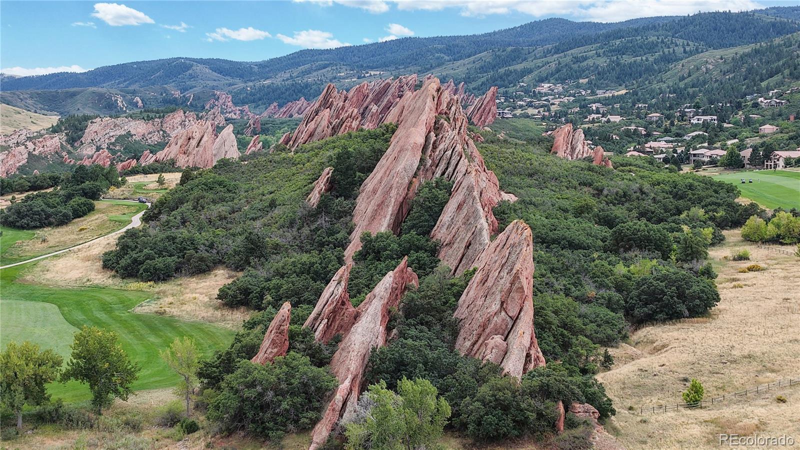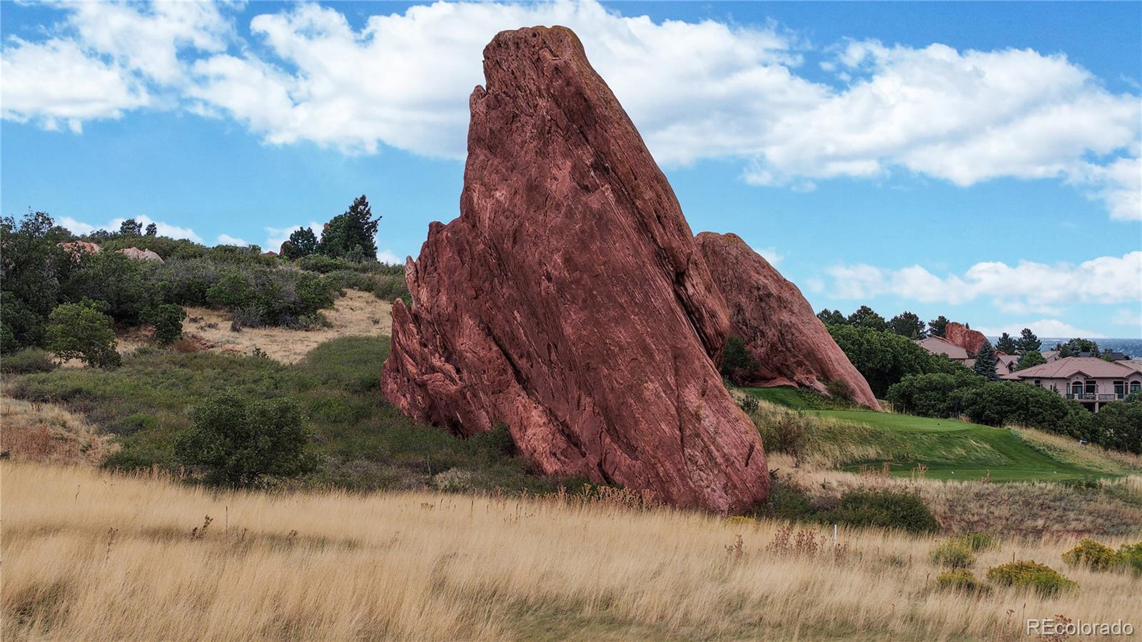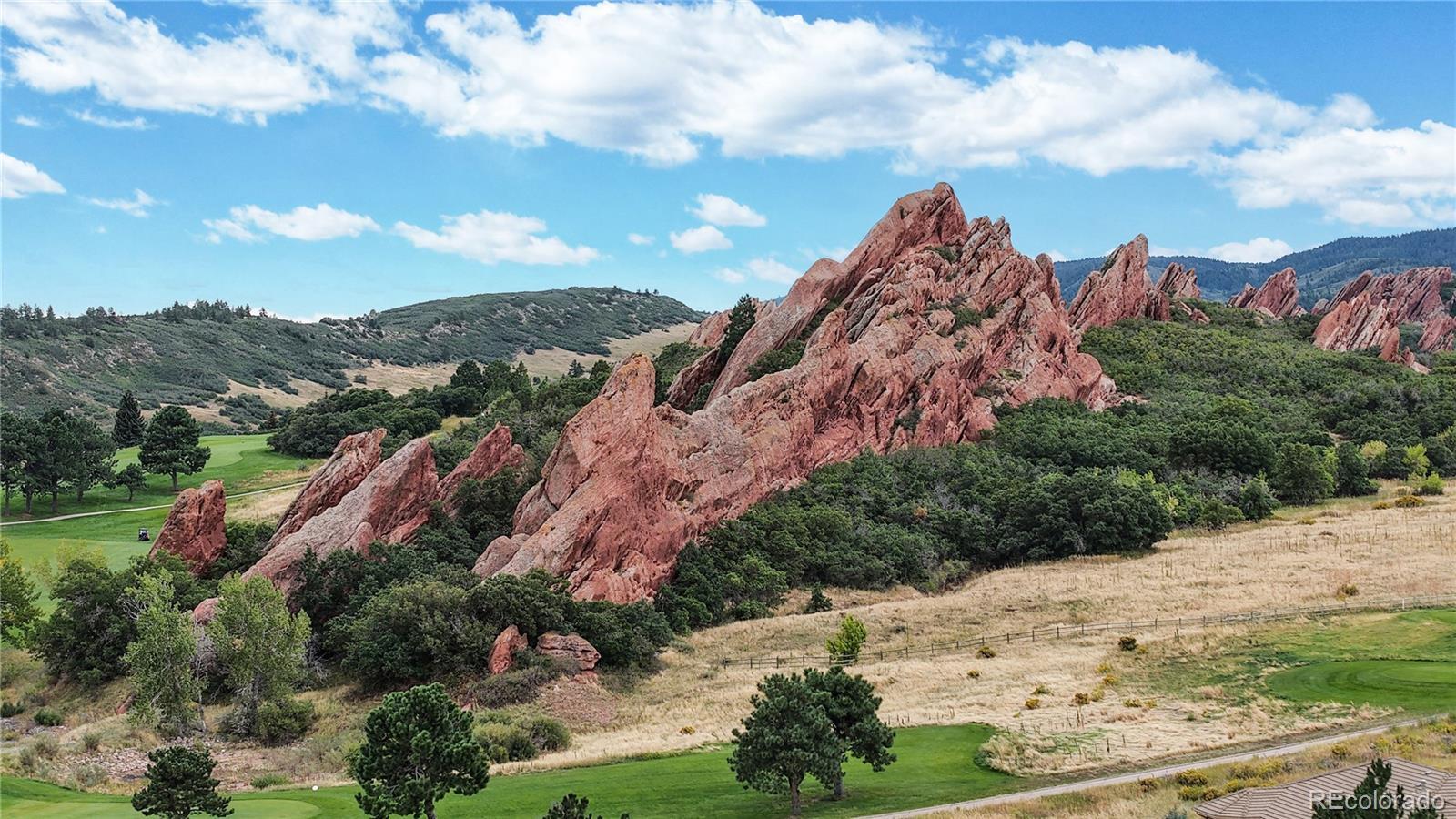 This Roxborough Park ranch-style home showcases views of Arrowhead Golf Course, ancient red rock formations, and the glittering city lights! Step inside to a spacious great room that flows seamlessly into the formal dining area-deal for hosting gatherings both large and intimate. Hardwood floors run throughout the main level, with soft carpet in the bedrooms and tile in the baths. The dining room features a convenient dry bar, a linen-drum light fixture, and space for varied table styles plus a buffet or sideboard. Just inside the foyer, a private study with French doors and custom ceiling detail creates a sophisticated home office. The gourmet eat-in kitchen impresses with slab granite counters, large island, and walk-in pantry, making it a chef’s dream. The expansive primary suite offers new carpet, a sitting area, five-piece bath, walk-in closet, and glass doors to the composite deck. The retreat easily accommodates a reading nook or second office. The updated guest bath highlights an artistic copper dragonfly sink—sure to spark conversation—and 2 secondary bedrooms share a functional Jack-and-Jill bath. The main-floor laundry includes washer, dryer, utility sink, and cabinetry for storage. The newly finished walkout level is designed for entertaining with LVP flooring, a wet bar, seating area with gas log fireplace, and recreation space perfect for a pool table, fitness area, or media setup. The spa-inspired ¾ bath adjoins a spacious guest bedroom. A workshop, large storage/utility room, and a crawlspace, ensure abundant storage. Outdoor living shines with a newer composite deck, a walled area ideal for a dog run, and a large front flagstone patio that easily hosts multiple seating groups. The three-car garage provides room for cars, toys, and tools. Siding and facing designated greenbelts, this home enjoys privacy and a wide-open feel with nature surrounding you—yet all within minutes of trails, Roxborough State Park, and conveniences.
