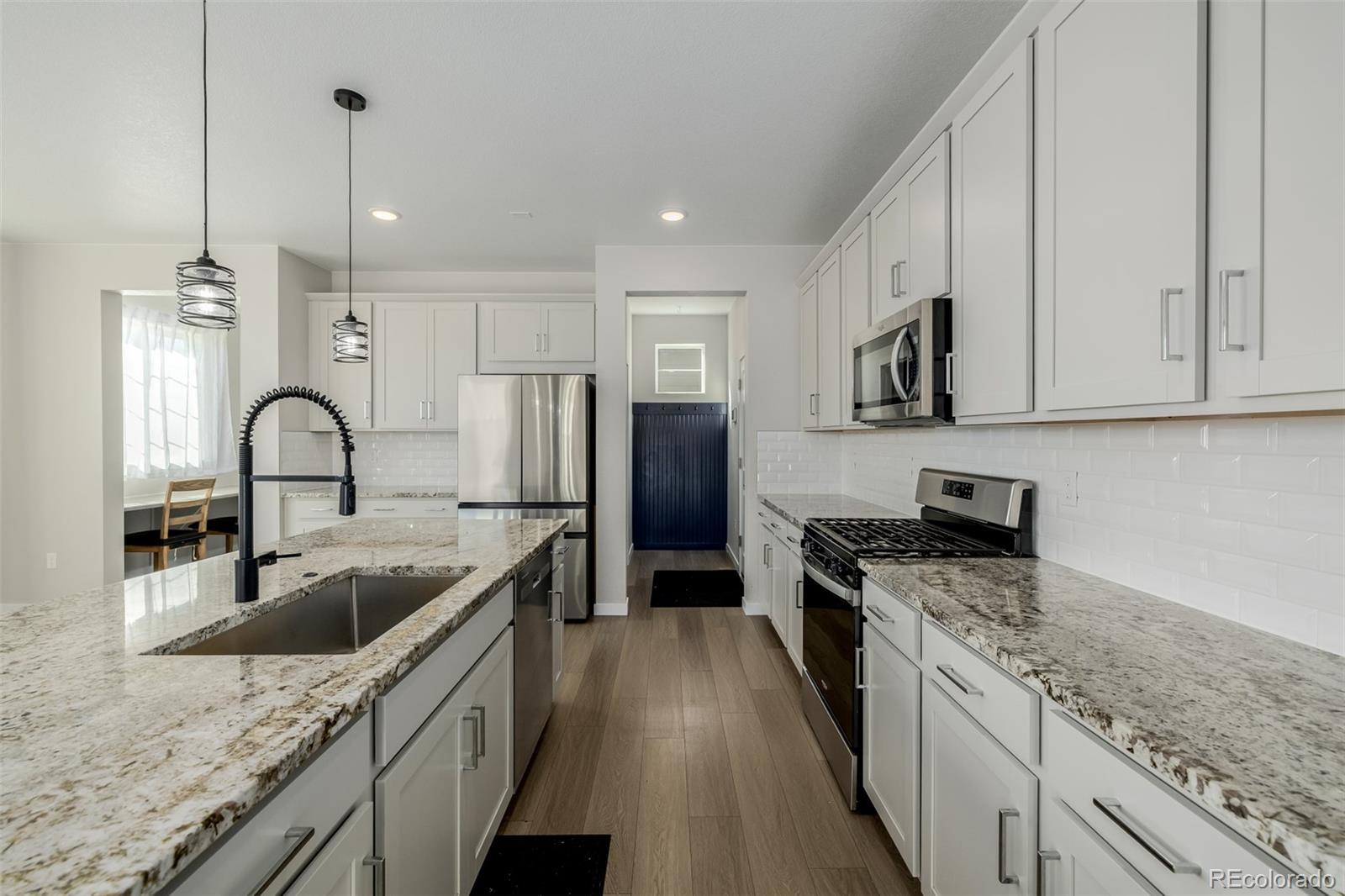 Experience the best of both worlds with this nearly new home in the award-winning Aurora Highlands community! Built just two years ago by Pulte Homes, this property is still covered under the builder warranty—yet already offers valuable upgrades you won’t find in brand-new construction. Enjoy a professionally finished backyard (a $40K investment already complete) along with an upgraded hail-resistant roof and solar panels featuring a transferable warranty for lasting energy savings and peace of mind. Named Community of the Year, Aurora Highlands is celebrated for its innovative land plan, which earned the 2025 Golden Nugget Award. Residents enjoy an unmatched lifestyle with 21 miles of trails, 32 parks, and unique amenities including performance plazas, climbing walls, a zip line, nature play areas, and challenge courses. Just a short walk away, exciting additions are on the horizon—a civic center, a state-of-the-art recreation complex with ice skating and aquatic facilities, Highlands Marketplace, and the Performance P-8 School, known for its exceptional autism and special education programs. A 42-acre medical campus is also underway, with an emergency facility set to open in 2026. Perfectly situated 10 minutes from DIA and offering quick access to major highways, you’ll reach Downtown Denver, the DTC, and the Denver Business Center in just 20–30 minutes. Combining modern efficiency, thoughtful upgrades, and a vibrant, growing community, this home is the perfect fit for today’s lifestyle.