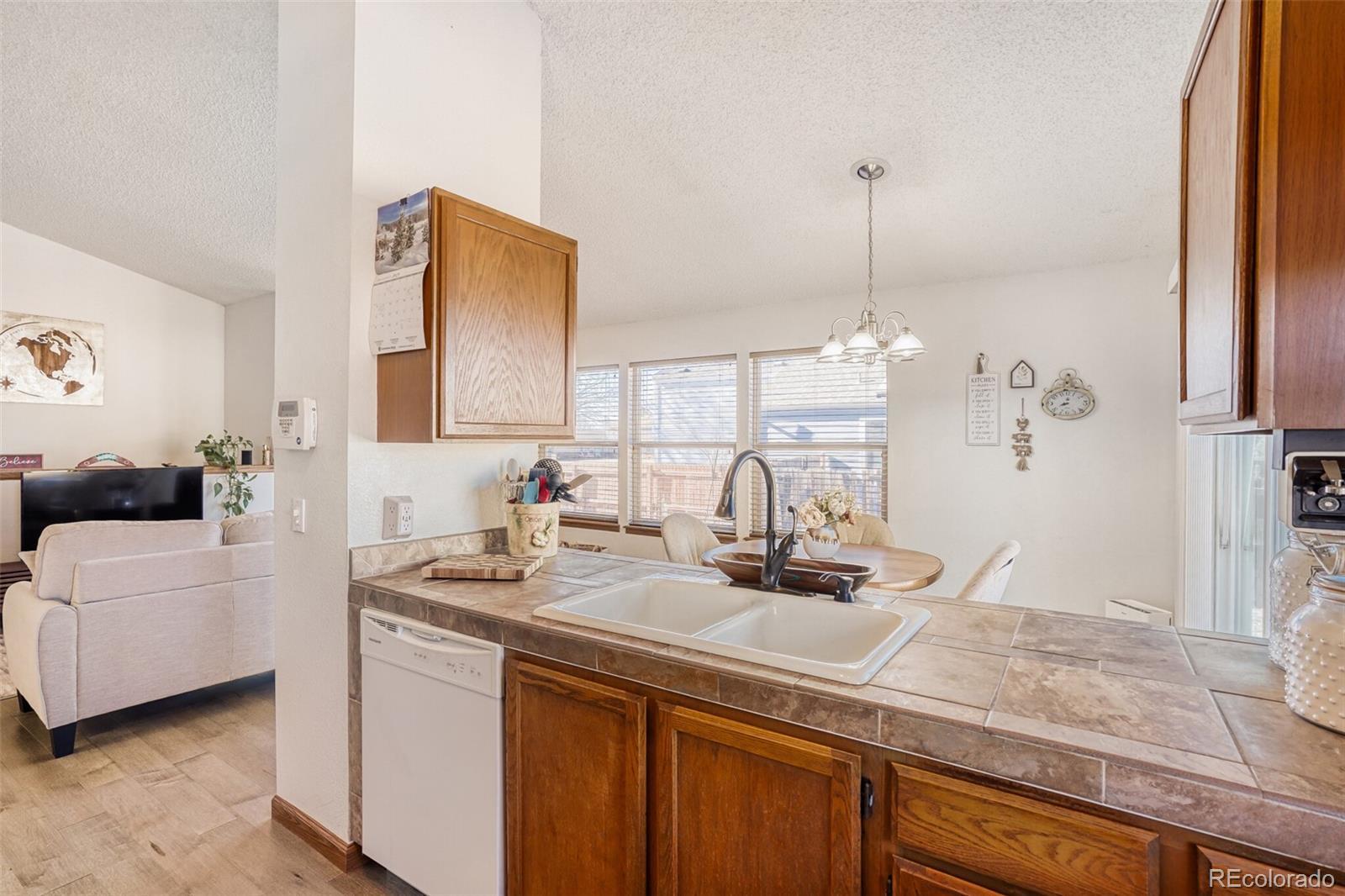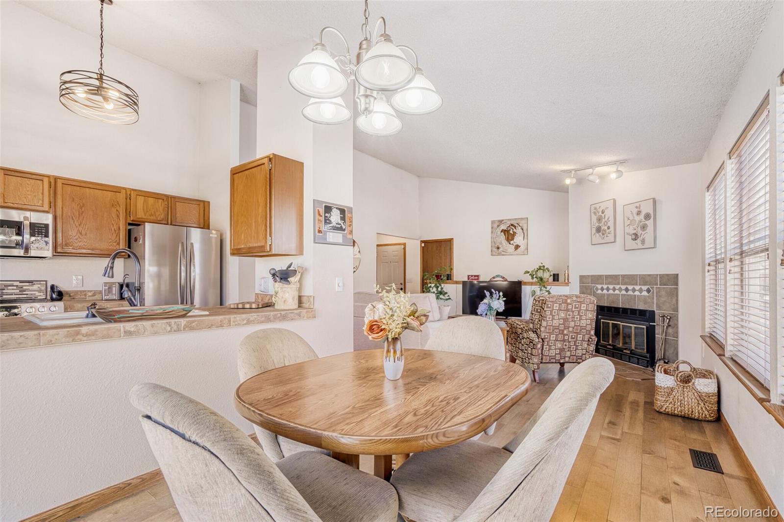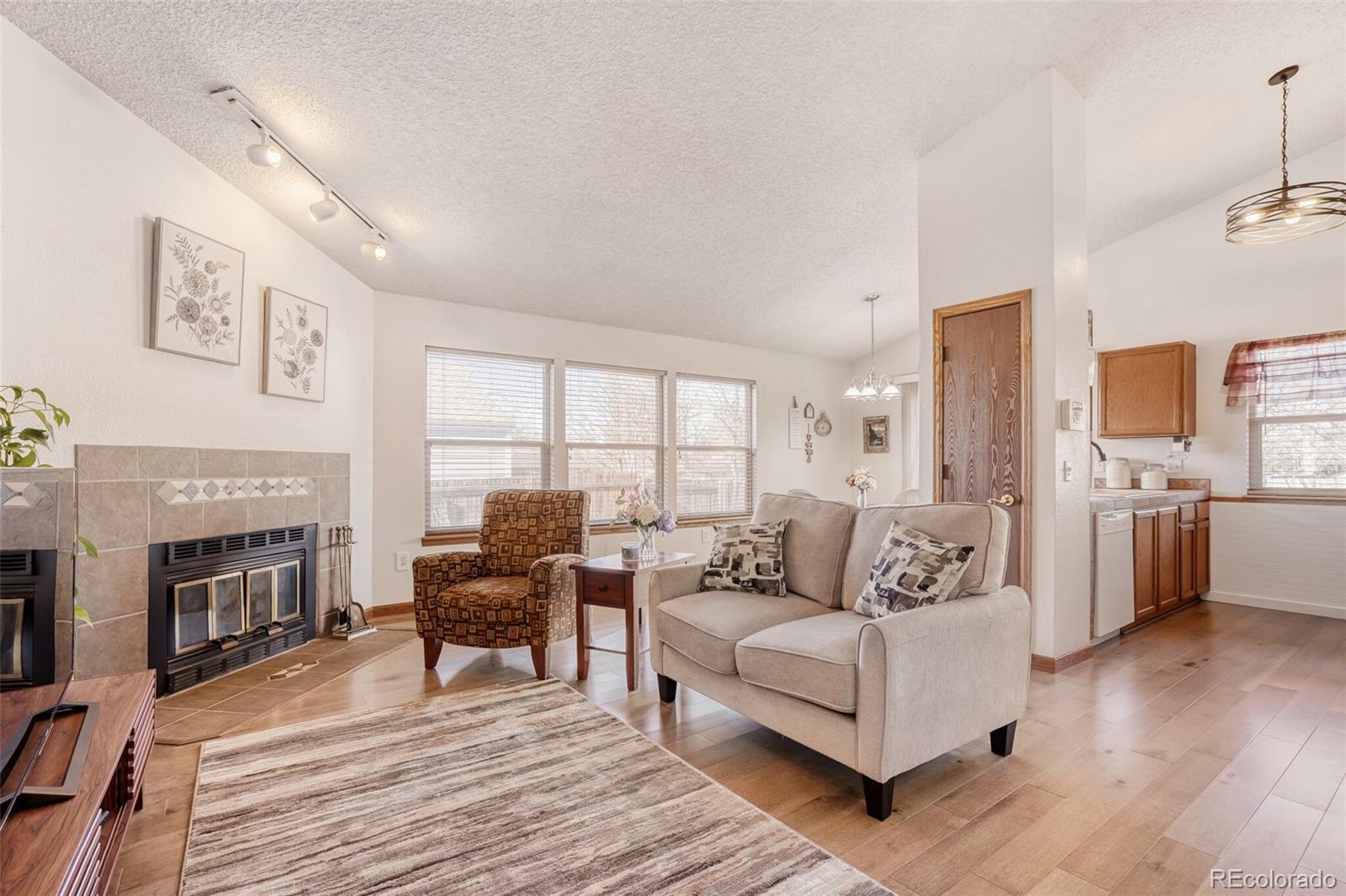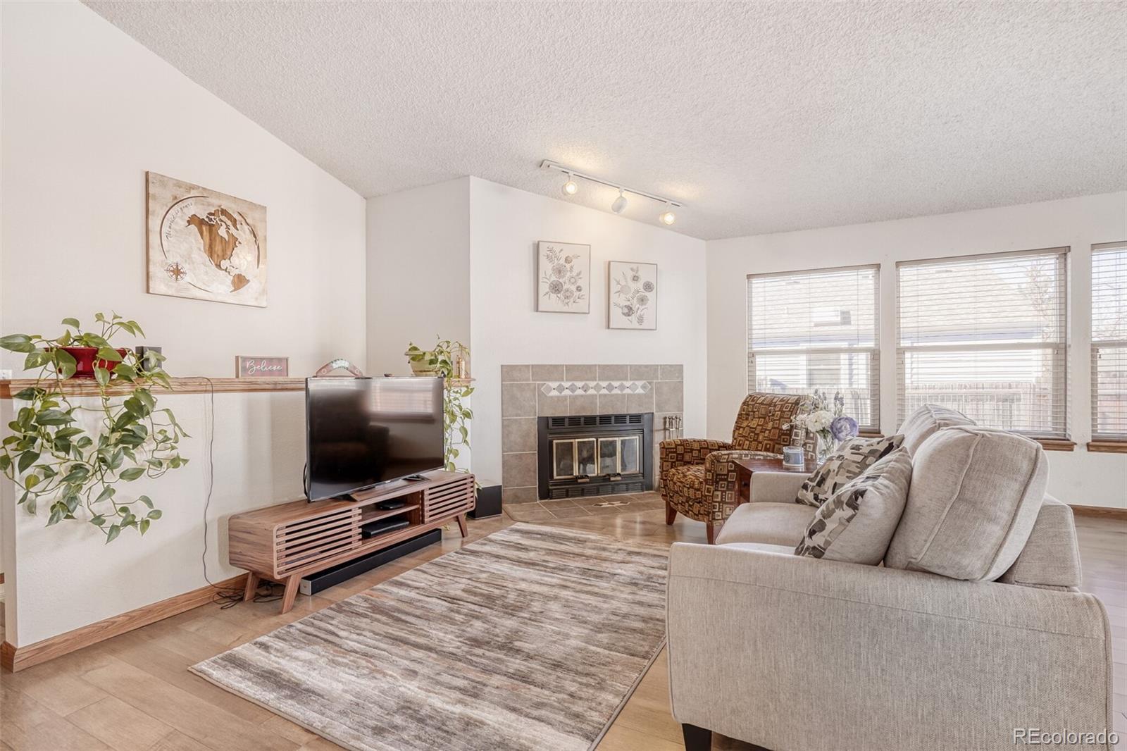 Click the Virtual Tour link to view the 3D walkthrough. Discounted rate options and no lender fee future refinancing may be available for qualified buyers of this home. Welcome to this inviting, light-filled home featuring a thoughtful layout designed for comfortable everyday living. The bright living room is anchored by a cozy corner fireplace and flows seamlessly into the kitchen and dining area, creating an open and welcoming feel. Brand-new flooring throughout enhances the home’s fresh appeal. Two bedrooms and a full bathroom on the main level offer convenience and functionality, while the kitchen’s connection to the main living space makes entertaining effortless. The finished basement expands your living options with a spacious second living area, a dedicated office, and an additional bedroom and bathroom complete with dual sinks and a relaxing soaking tub. Step outside to enjoy the backyard deck and generous greenspace—perfect for unwinding or gathering with friends. Ideally located in Aurora just steps from Del Mar Park, with nearby public transit and only minutes from the University of Colorado Hospital, Anschutz Medical Campus, shopping, and dining, this home offers the perfect blend of comfort, space, and unbeatable convenience.