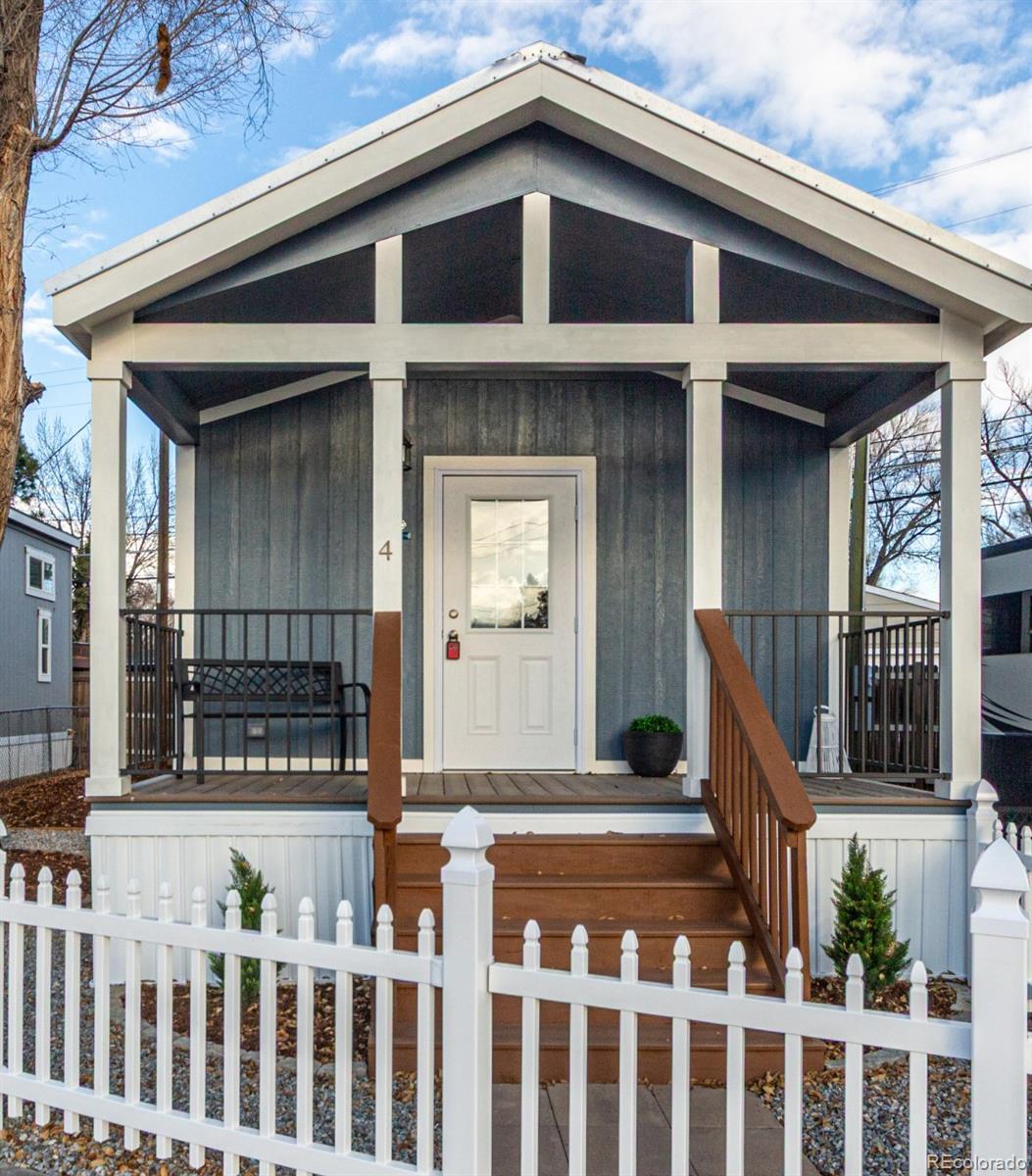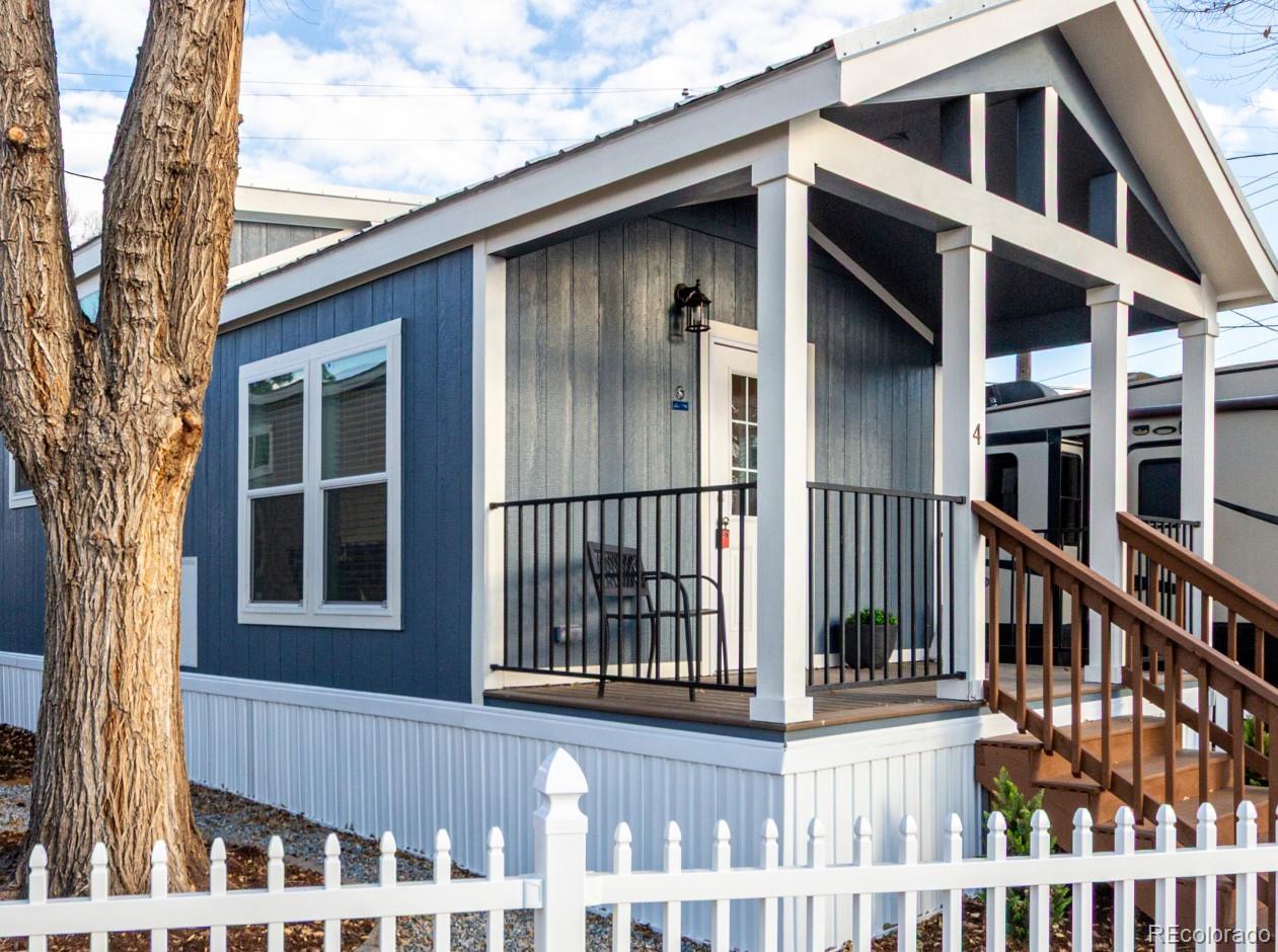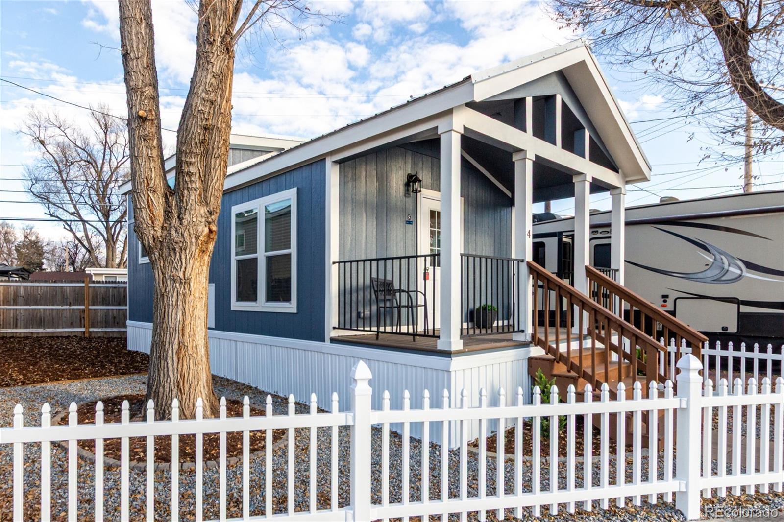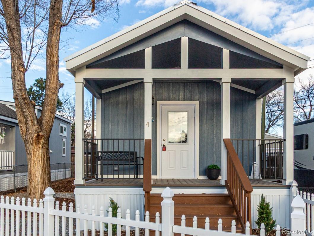 Welcome to modern, simplified living in this stunning brand-new tiny home nestled in Colorado Springs Estates! This thoughtfully designed home combines contemporary style with efficient living and breathtaking views of Pikes Peak right from your covered front porch. Step inside to a bright and open floor plan featuring vaulted ceilings, recessed lighting, and luxury vinyl flooring throughout. The sleek kitchen shines with white shaker cabinetry, a chic subway tile backsplash, and modern black appliances — blending beauty and function effortlessly. Upstairs, a versatile loft area offers the perfect bonus space for lounging, an extra sleeping area, or additional storage. The bathroom is equally stylish, showcasing marble-look countertops, white cabinetry, and a full-size shower with built-in seating and sliding glass doors. The private bedroom includes smart built-ins, ample closet space, and in-home laundry hook-ups for added convenience. Outside, enjoy low-maintenance landscaping, a fenced yard, and designated parking. Located near parks, dining, and downtown Colorado Springs, this home delivers the perfect balance of comfort, simplicity, and modern design. Just minutes from Garden of the Gods, Manitou Springs, and Cave of the Winds Mountain Park, you’ll love calling this place home. Tiny living at its absolute finest — where modern design meets mountain charm!