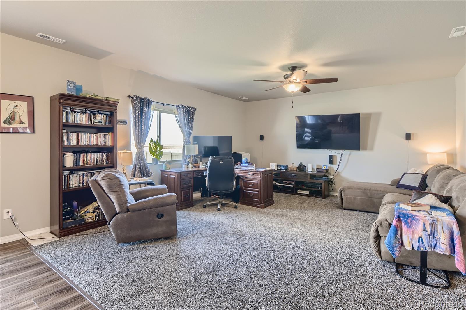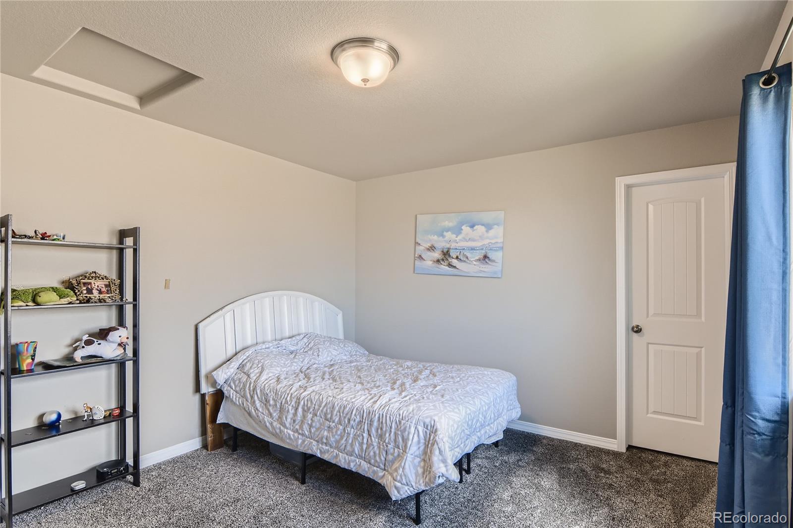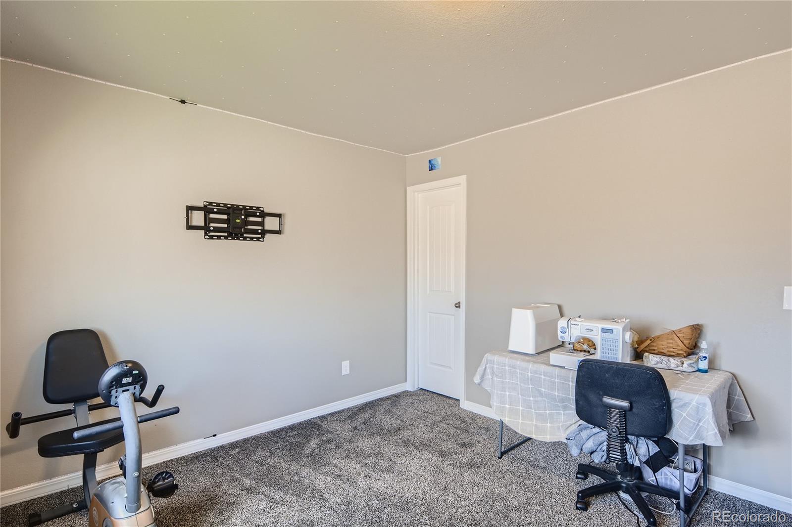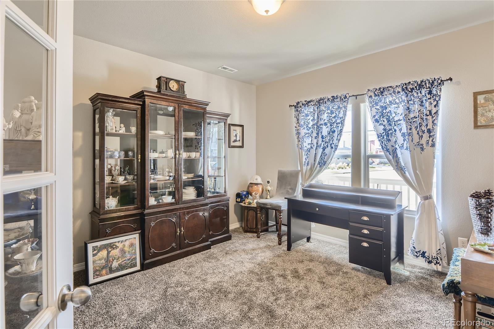 This gorgeous home on the east side of Colorado Springs features a large master bedroom and 5 piece bath suite with a walk in closet. The master bath also has tiled flooring, a soaking tub, and large tiled surround shower. The upper level also features a large open loft with endless potential and the laundry room conveniently located right next to all three upper level bedrooms. Downstairs and right inside the front door is a multiuse room. It could be a fourth bedroom or an office and features full French doors. The large eat-in kitchen features slate appliances, a gas range oven unit, granite counter tops, maple cabinets, walk in pantry, with walk out access to the back yard. Combined with the open concept living room that adjoins this eat-in kitchen and this home makes for inviting open spaces perfect for entertaining, yet still intimate for smaller gatherings! Conveniently located just east of the Powers corridor with quick access to Peterson Space Force Base, Fort Carson, and all of life's conveniences.