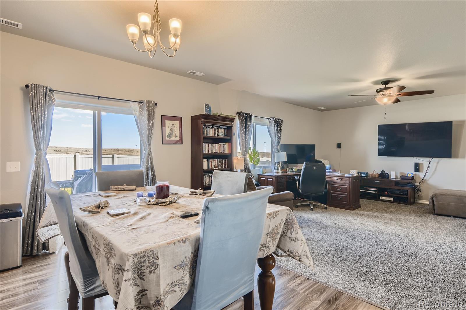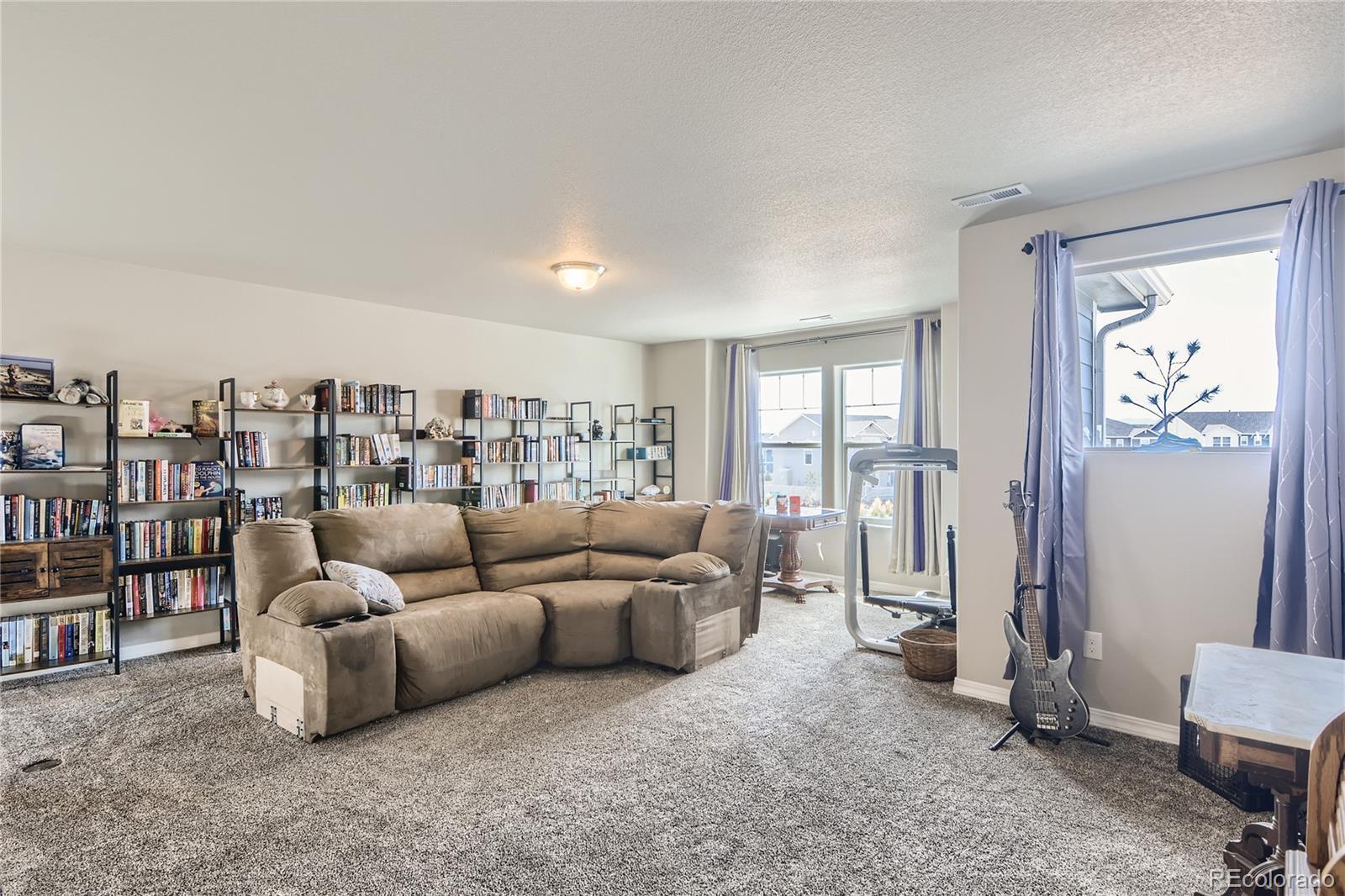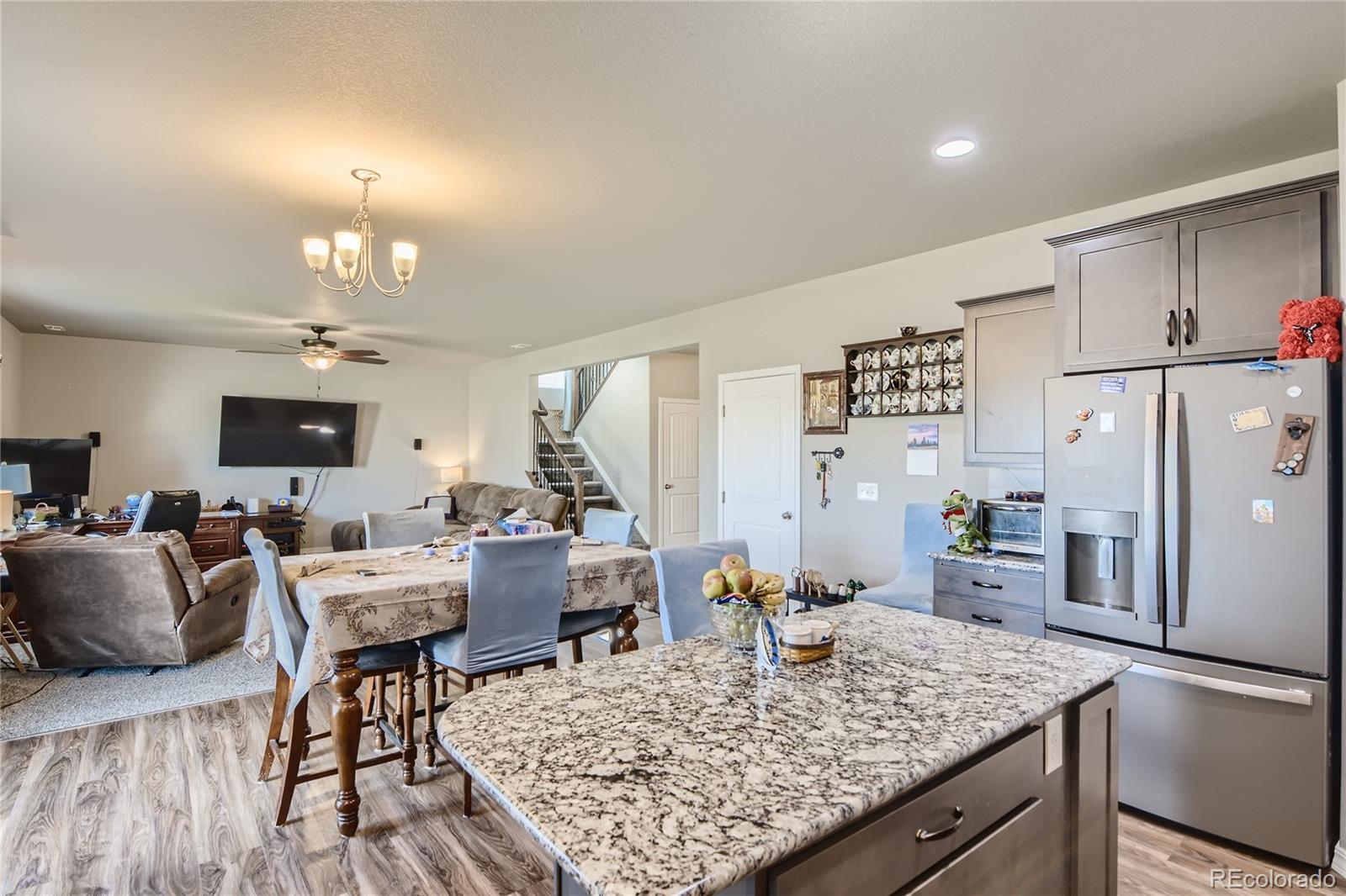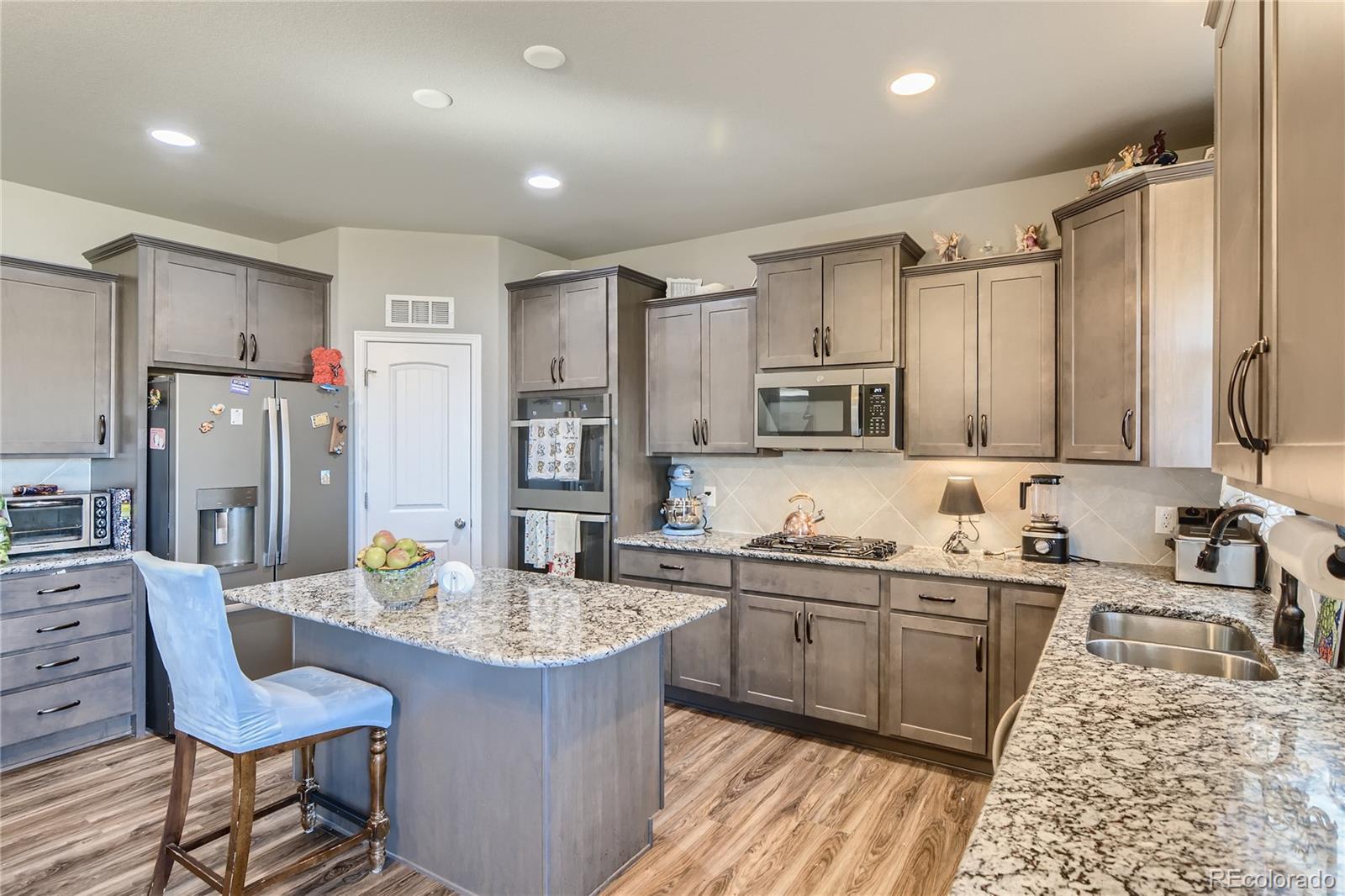 This gorgeous home on the east side of Colorado Springs features a large master bedroom and 5 piece bath suite with a walk in closet. The master bath also has tiled flooring, a soaking tub, and large tiled surround shower. The upper level also features a large open loft with endless potential and the laundry room conveniently located right next to all three upper level bedrooms. Downstairs and right inside the front door is a multiuse room. It could be a fourth bedroom or an office and features full French doors. The large eat-in kitchen features slate appliances, a gas range oven unit, granite counter tops, maple cabinets, walk in pantry, with walk out access to the back yard. Combined with the open concept living room that adjoins this eat-in kitchen and this home makes for inviting open spaces perfect for entertaining, yet still intimate for smaller gatherings! Conveniently located just east of the Powers corridor with quick access to Peterson Space Force Base, Fort Carson, and all of life's conveniences.