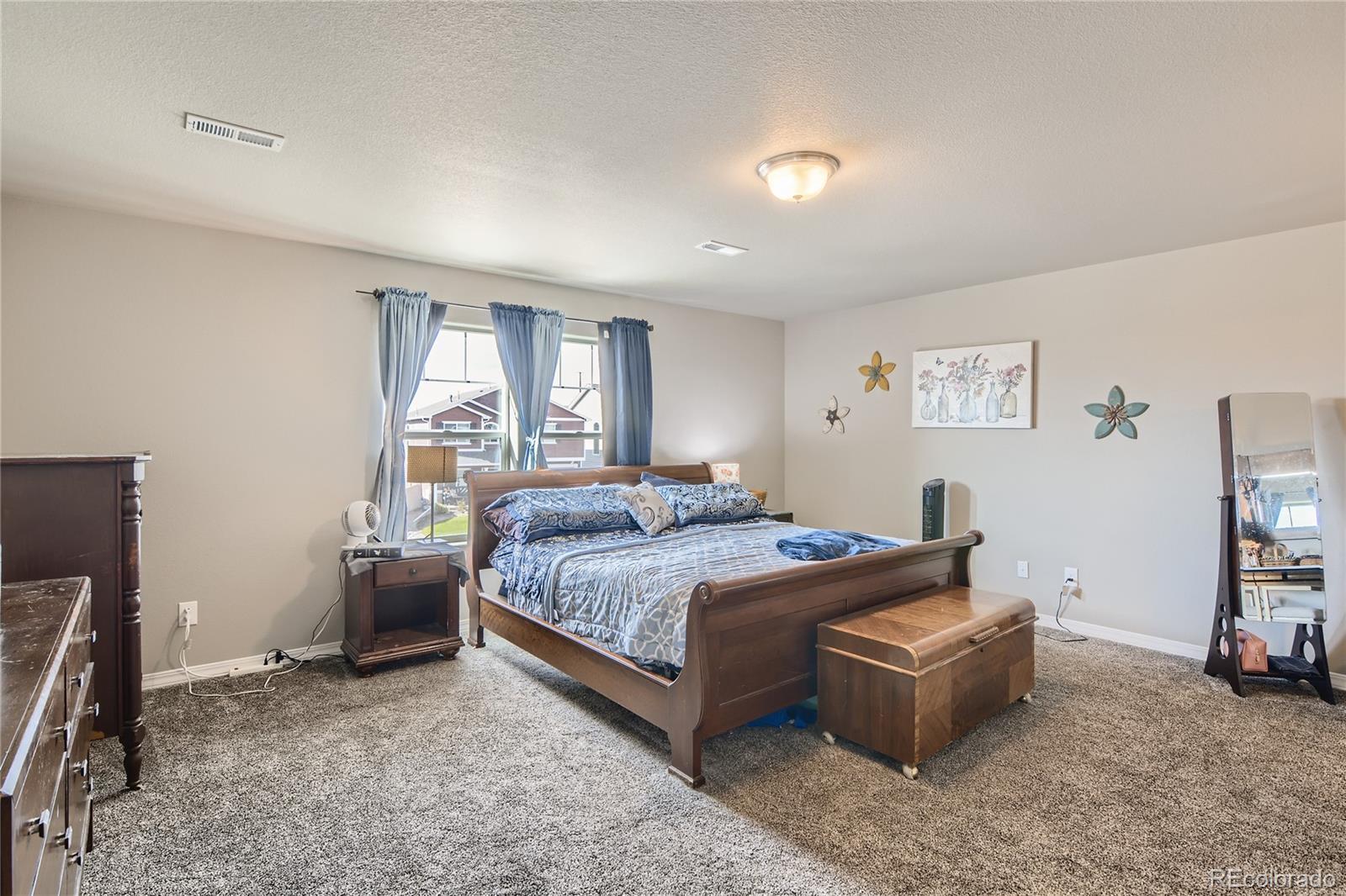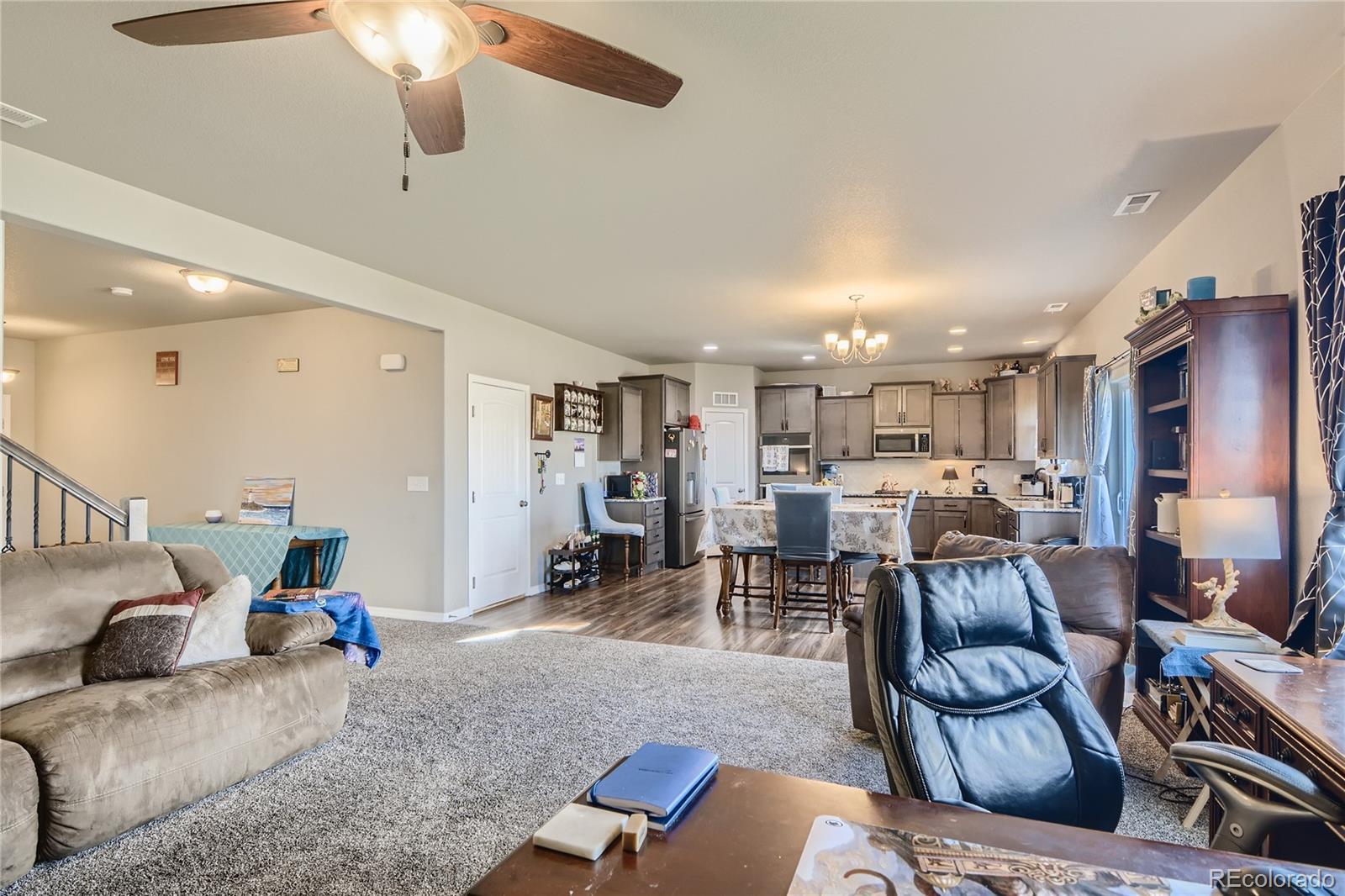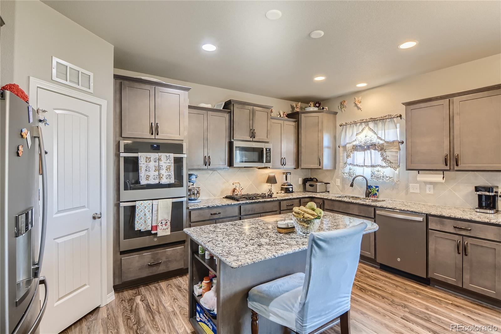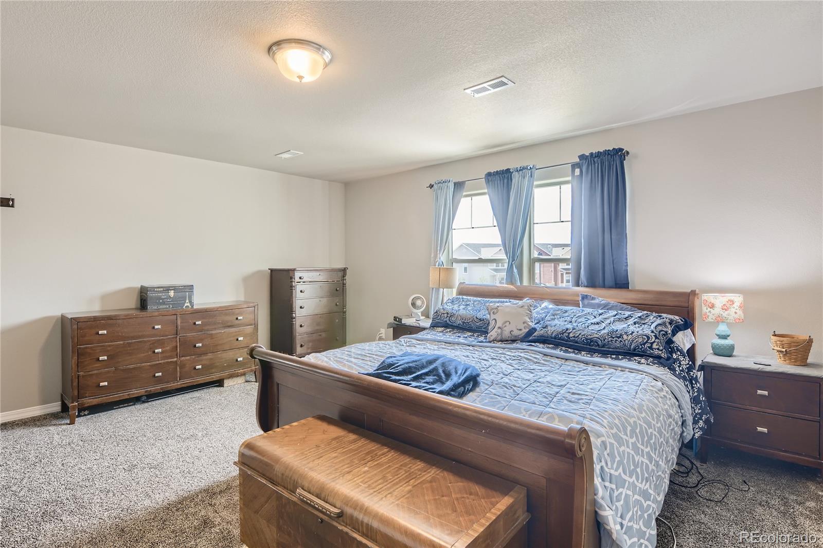 This gorgeous home on the east side of Colorado Springs features a large master bedroom and 5 piece bath suite with a walk in closet. The master bath also has tiled flooring, a soaking tub, and large tiled surround shower. The upper level also features a large open loft with endless potential and the laundry room conveniently located right next to all three upper level bedrooms. Downstairs and right inside the front door is a multiuse room. It could be a fourth bedroom or an office and features full French doors. The large eat-in kitchen features slate appliances, a gas range oven unit, granite counter tops, maple cabinets, walk in pantry, with walk out access to the back yard. Combined with the open concept living room that adjoins this eat-in kitchen and this home makes for inviting open spaces perfect for entertaining, yet still intimate for smaller gatherings! Conveniently located just east of the Powers corridor with quick access to Peterson Space Force Base, Fort Carson, and all of life's conveniences.