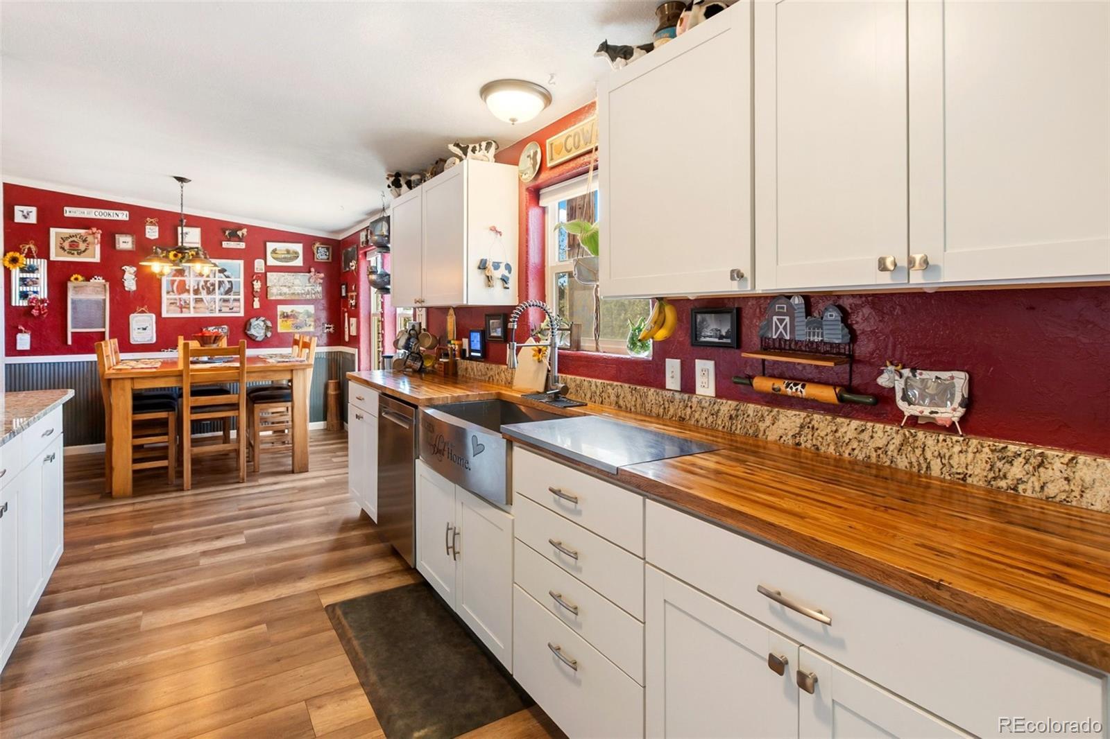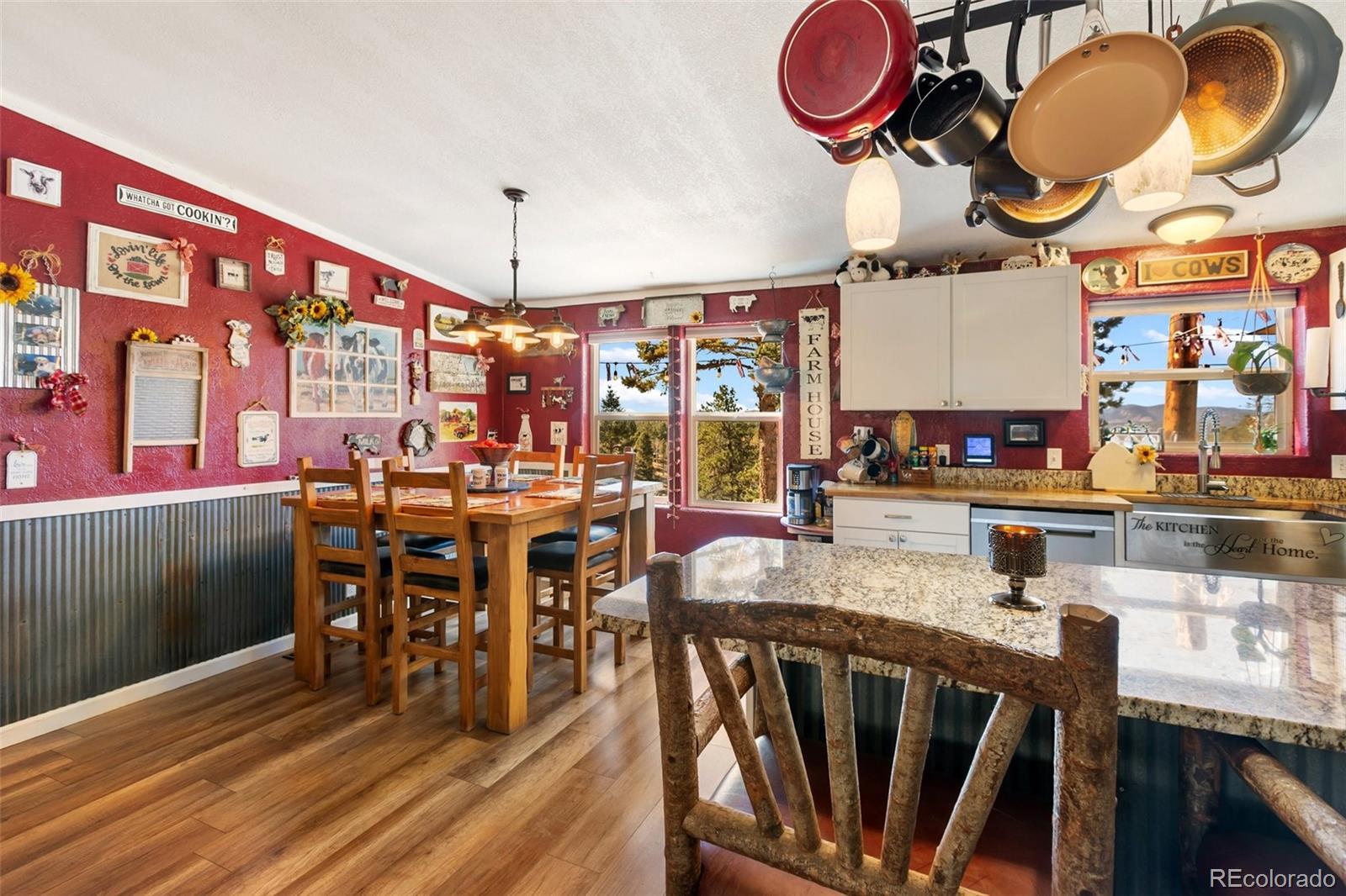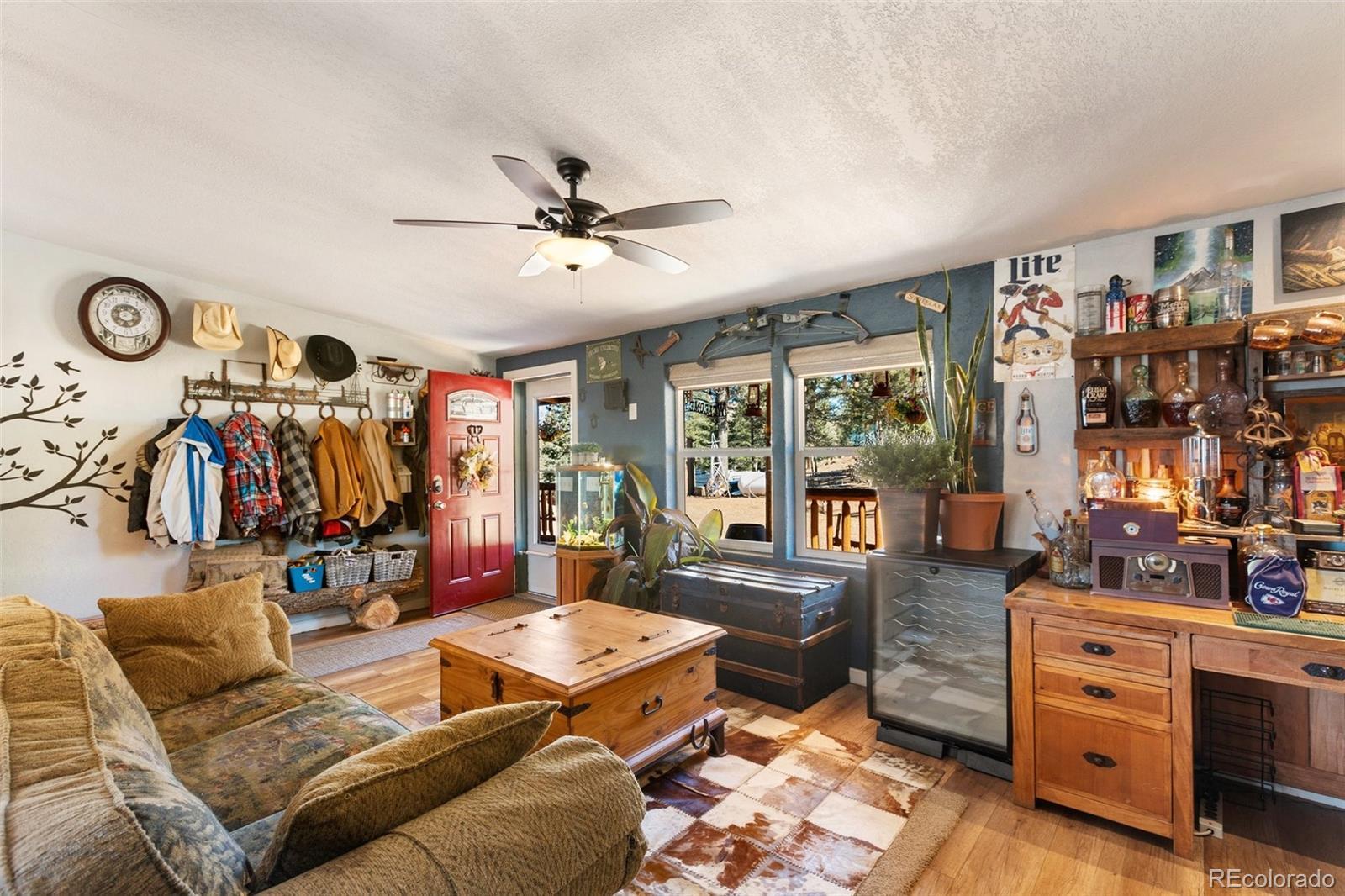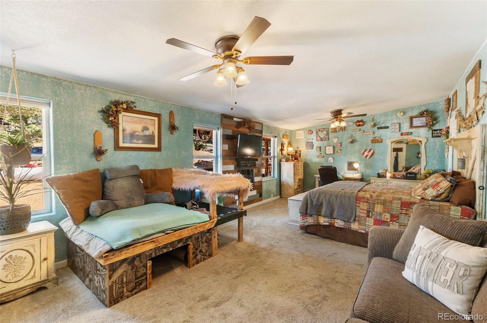 Serene mountain escape set-up with almost 5 acres, located just moments away from National Forest access trails for endless hiking, & recreating! Situated among the trees in a peaceful, tranquil setting and just 25 minutes from Woodland Park, 5 minutes from Highway 24, & only 1 hour to snow skiing, & just 10 minutes to trophy trout fishing in Eleven Mile Canyon! Spacious one level living w/ living area and family room areas, the home has been remodeled in 2020 w/ a "country charm", including a new free-standing wood-burning stove in the family room set in a masonry stacked rock hearth, w/ sheet metal backing; Beetle kill knotty pine tongue and groove; barn wood shiplap accent walls and doors; Mini split A/C and heater in family room; large owners suite adorned w/ electric wall fireplace, attached to 5pc bath w/ a freestanding soaking tub, and two walk-in closets; Kitchen includes stainless appliances, & Butcher block and granite countertops; dining area is surrounded by sheet metal chair rail; Re-roofed in 2018; new rustic redwood covered deck; new exterior paint; covered rear wraparound deck w/ awning & new deck spindles, overlooking views to the South and Western sunsets; Additional features include new electrical service to house; new 24' x 50' pole barn/shop w/ an attached studio apartment living quarters w/ shiplap walls, wood ceilings, and 3/4 bath; 2 heated chicken coops; livestock fenced area with electricity and water running to the pen; greenhouse; Lookout at "Pride Rock" w/ firepit, and electrical in place, in addition to a seating area; RV parking, and beautifully maintained and fire mitigated 5 acres, with a circular driveway; 2/3 of the yard is fenced on the perimeter; Septic was pumped Fall 2024. Voluntary HOA; This property is set-up as a small ranchette and ready for your livestock, pets, and the whole family! Comfortably set-up for a wonderful mountain escape! Adjacent vacant land parcel is also available for sale under MLS #3229859.