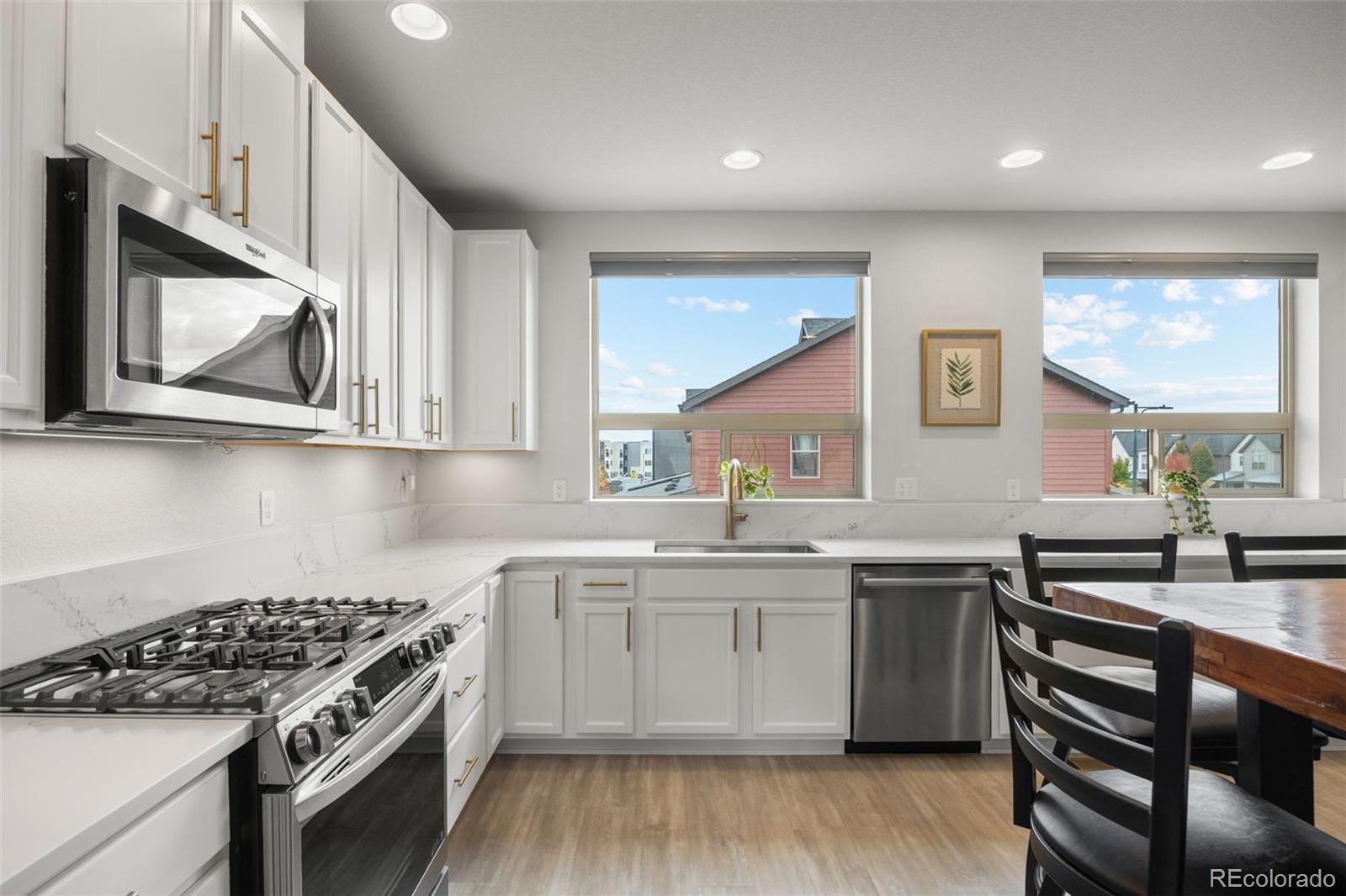 Welcome to 9110 E. 52nd Street—an updated townhome in the heart of Northfield! This 2bed/3bath bath home offers newly painted cabinets, fixtures and hardware in the kitchen and upstairs bathrooms, plus new countertops and appliances. The kitchen provides tons of counter space + storage with windows that flood the space with natural light. The spacious dining/living room leads you directly out to the patio - which is the perfect space to relax all year round! Upstairs you will find the primary bedroom that features vaulted ceilings, mountain views and a walk in closet. The secondary bedroom makes for an ideal guest room and/or home office. Laundry is conveniently located on the second floor as well! Don't forget to check out the 2-car attached garage and additional storage on the first level. This location puts you just steps from trails, parks, restaurants, coffee shops, and all the amenities Central Park has to offer. This is low-maintenance living in one of Denver’s most vibrant communities!