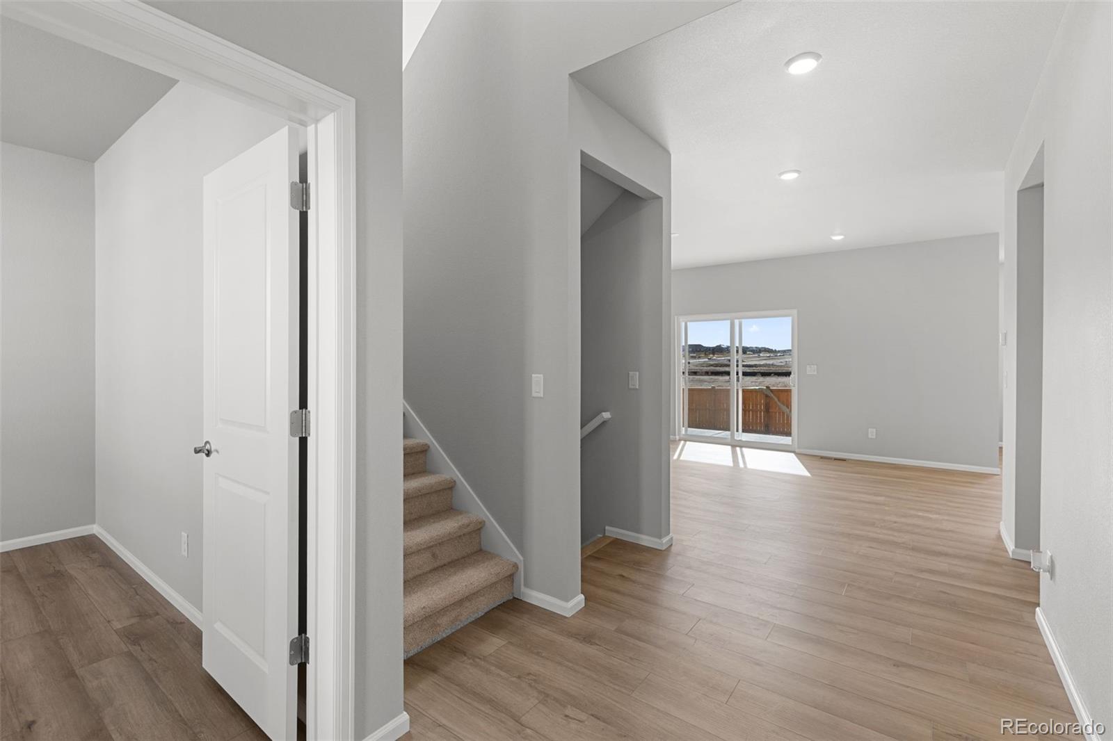 This beautifully crafted 4-bedroom, 2.5-bath home offers modern architecture, upscale finishes, and thoughtfully designed living spaces. A vaulted ceiling in the entry brings in abundant natural light and sets the tone for the spacious open-plan layout. The seamless flow of the main level is enhanced by large windows and a sliding glass door that opens to an expansive covered patio, perfect for entertaining or enjoying Colorado sunsets. The modern kitchen features upgraded cabinetry, a large island ideal for casual meals and entertaining, stainless steel appliances, coordinating quartz countertops, a tile backsplash, and a walk-in pantry with a convenient built in bench drop-off area from the garage. A private main-floor study adds a flexible space for working from home or a quiet retreat. Upstairs, the private primary suite offers ample space, while three additional bedrooms, a full bath, and a laundry room complete the upper level.Talon Pointe is located 4 minutes to E-470 allowing maximum accessibility to the city, mountains, DIA and lots of great shopping and dining. Massive community park and integrated trail system. Come see us today!