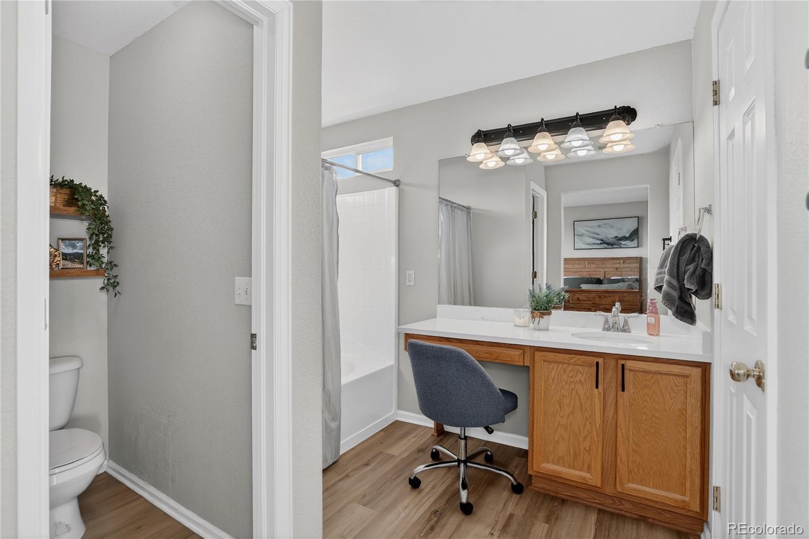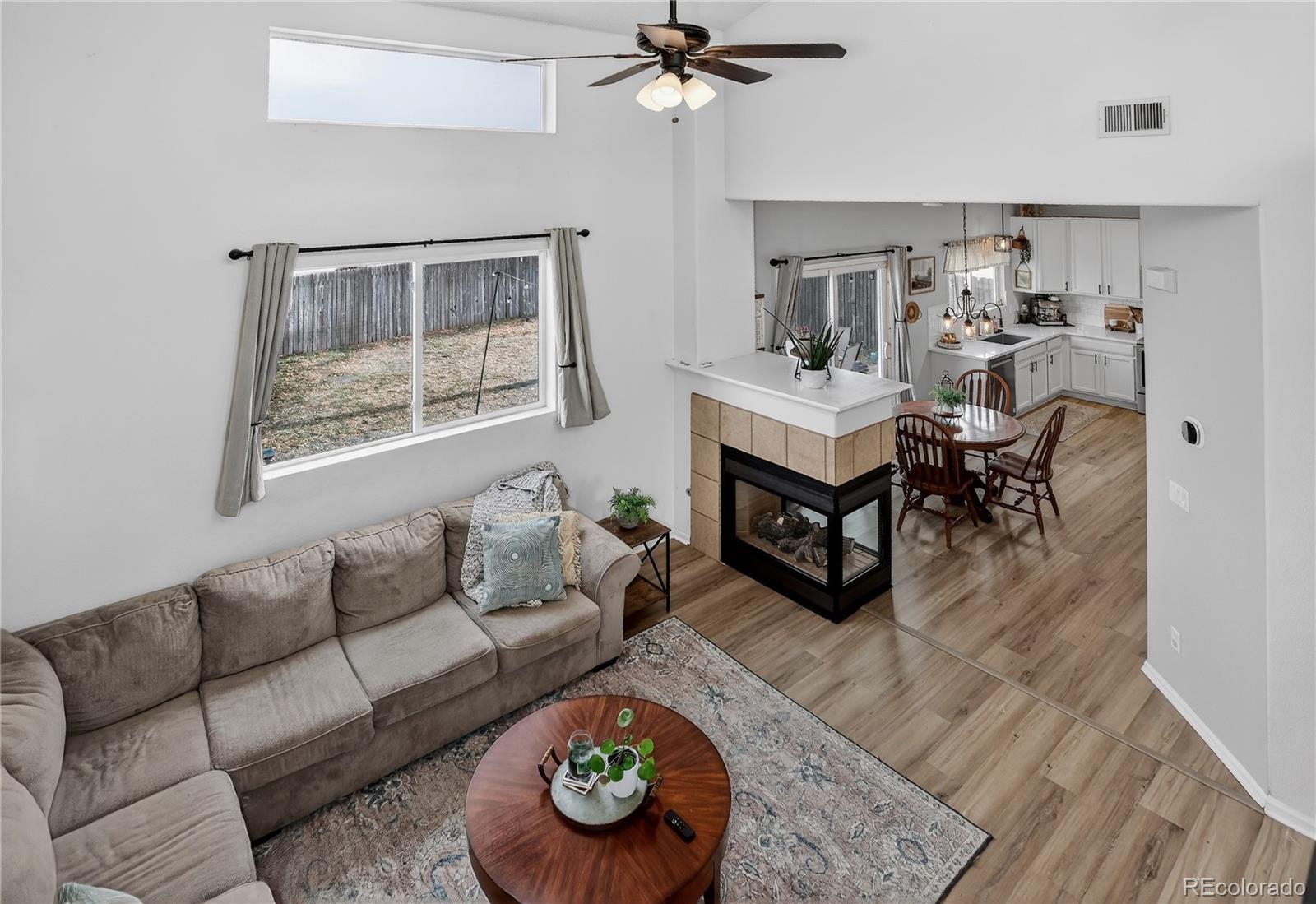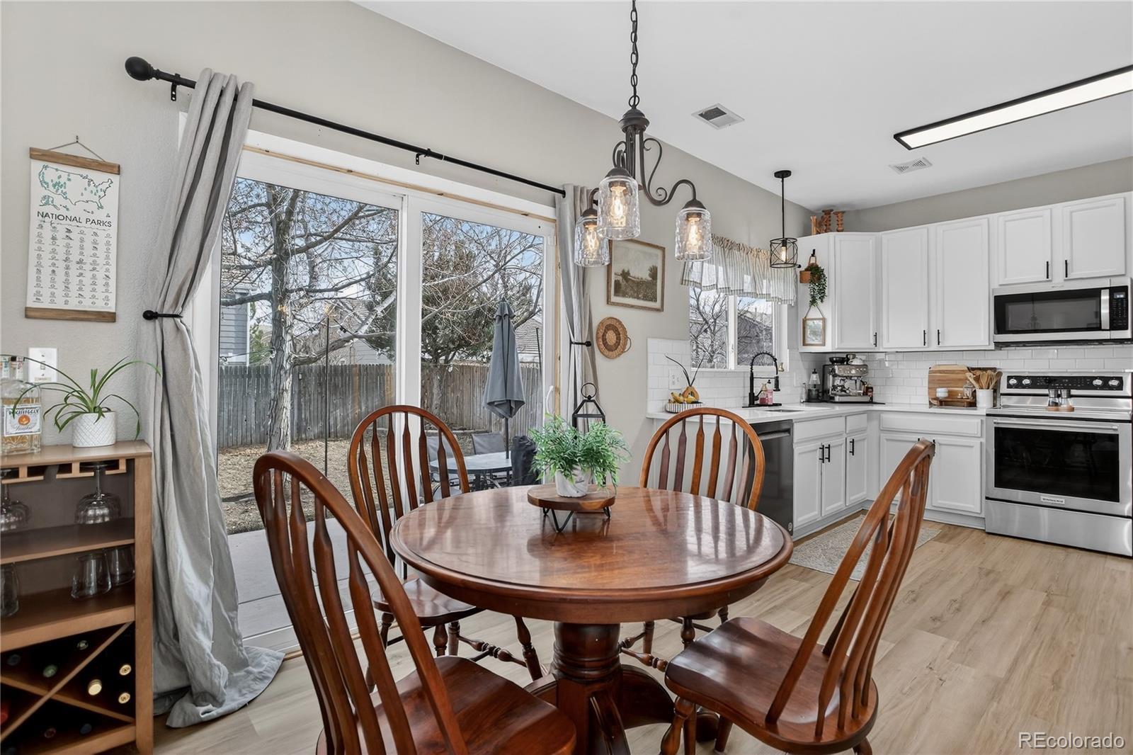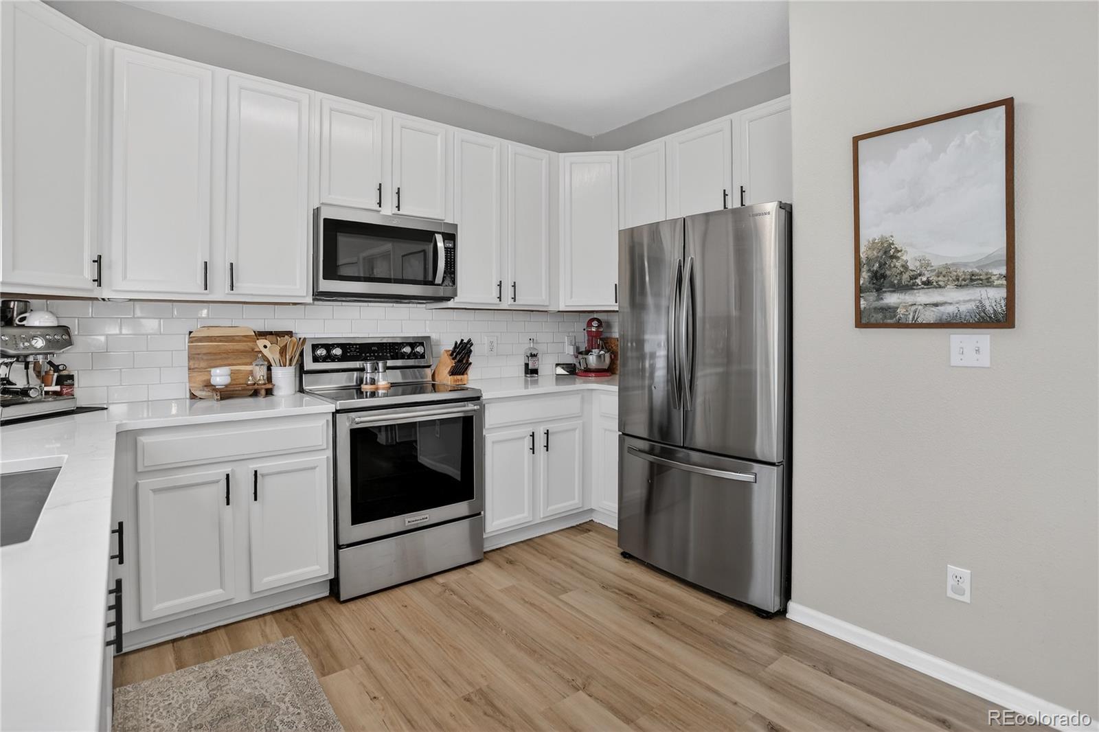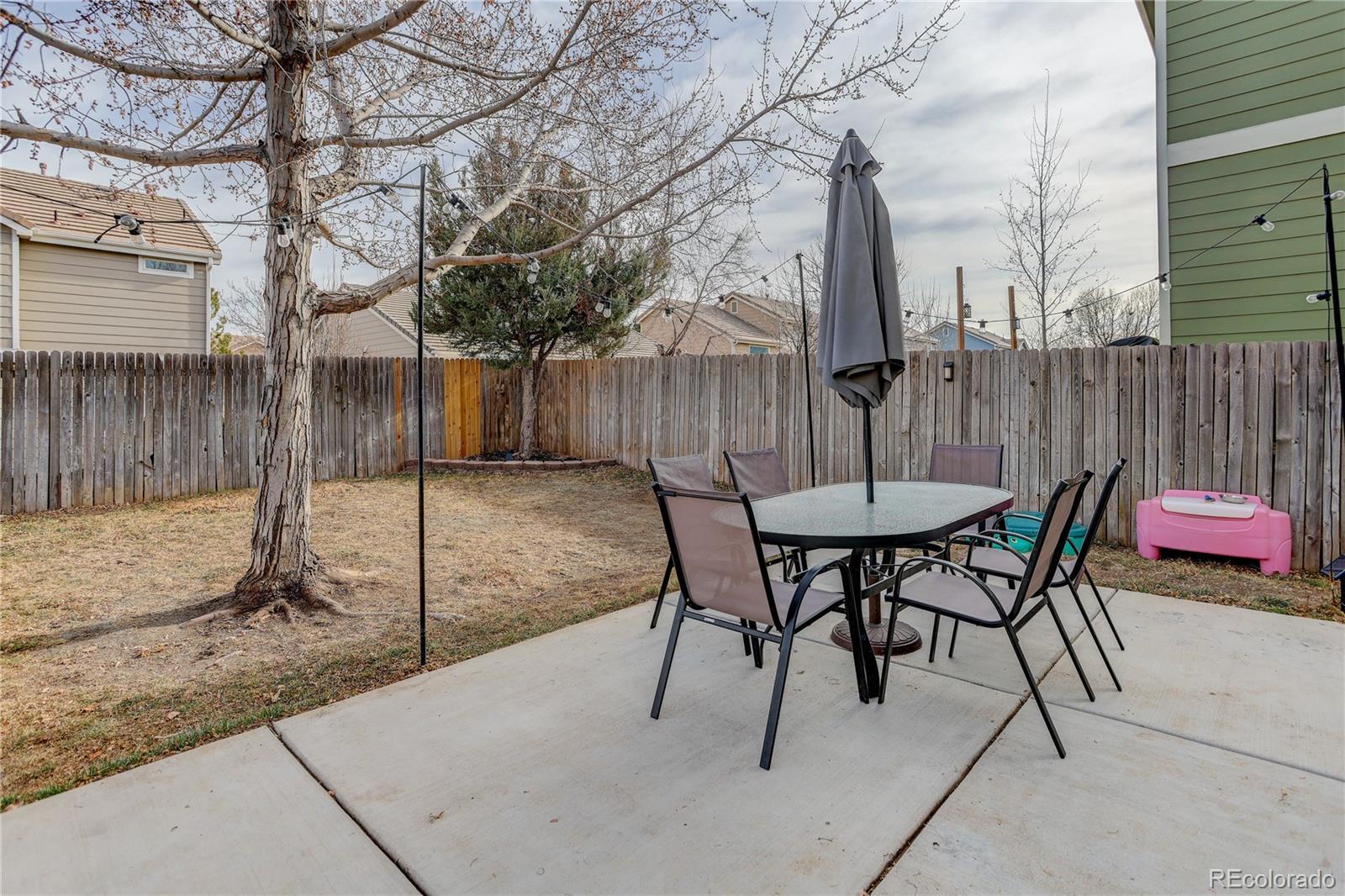 Welcome to Sterling Hills and this beautiful move in ready home! Come on in and enjoy soaring ceilings, wonderful natural light and an open floor plan on the main level. Neutral finishes create a bright and inviting atmosphere throughout…you will love the Pottery Barn inspired design! The recently updated kitchen offers quartz countertops, stylish subway tile backsplash, stainless appliances, modern lighting, and a spacious eat-in dining area…perfect for both everyday living and entertaining. A convenient main-level laundry room with cabinets is located just inside the garage entry. Head upstairs and enjoy the mountain views on the way! A thoughtful layout features a generous primary suite complete with an en suite bathroom, along with two additional well-sized bedrooms and a secondary full bath. Other notable features include NEW: AC | Water Heater | Driveway | Vinyl Flooring | Carpet | Patio Door | Appliances | Lighting and Paint just to name a few! A Private backyard and patio area is ready for summer gatherings, and gives you plenty of space to relax, play, or garden. Ideally located in the desirable Sterling Hills community, you’re just minutes from Great Plains Park, offering a splash park, near miles of trails, and access to the Tollgate Creek Trail. Close to all the conveniences …shopping, dining entertainment. Sidecreek Elementary is just a few blocks away and Mrachek Middle School and Rangeview High School are only a short drive away. Your Colorado home is ready and waiting for you!