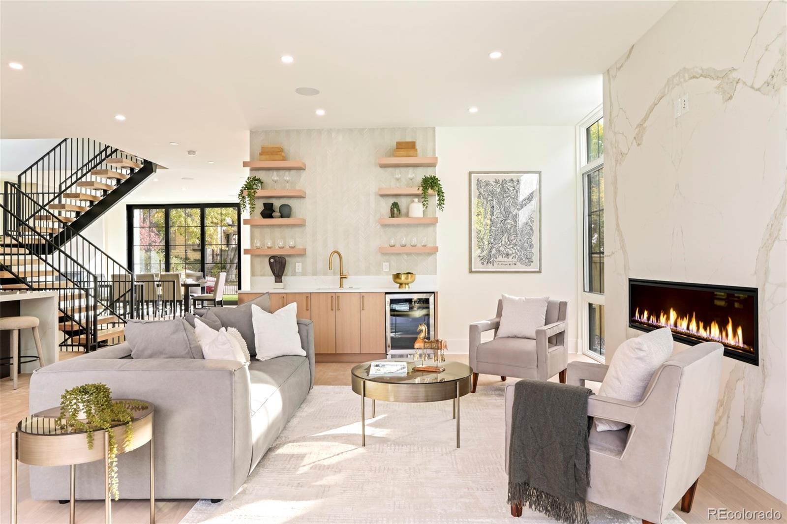 Enter into a luminous, contemporary sanctuary in the heart of East Washington Park — just moments from the park itself. Every inch of this new construction home is designed to captivate, from the airy, open layout to walls of glass that bathe each space in natural light. Accordion doors in both the front and back of the home create seamless indoor-outdoor living, opening the formal dining and living spaces to tranquil patios perfect for entertaining. The chef’s kitchen is a statement in modern design, anchored by a striking waterfall island with seating — ideal for casual gatherings or elegant soirées. A built-in bar and gas fireplace add warmth and sophistication to the living area, while the private office with custom millwork offers an inspiring workspace. Upstairs, the primary suite is a true retreat, featuring vaulted ceilings, a dual-sided fireplace, and a spa-like bathroom complete with a steam shower. For ultimate relaxation, the lower-level gym includes a large sauna and steam shower, creating a private wellness haven. Host guests or unwind on the third-floor wrap-around patio with a fireplace and sweeping mountain views. A three-car garage offers convenience and space, while the ideal location provides effortless access to both Washington Park and the boutiques and restaurants along Gaylord Street. From its luminous interiors to its thoughtful amenities, this home embodies modern sophistication, comfort, and an unmistakable sense of style — where city living meets serene retreat.