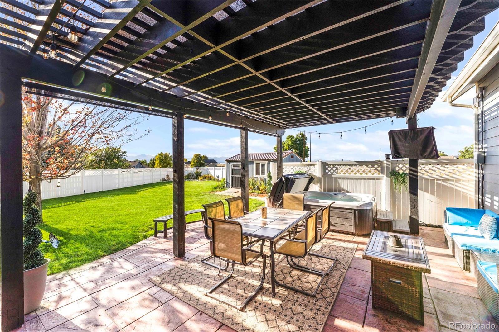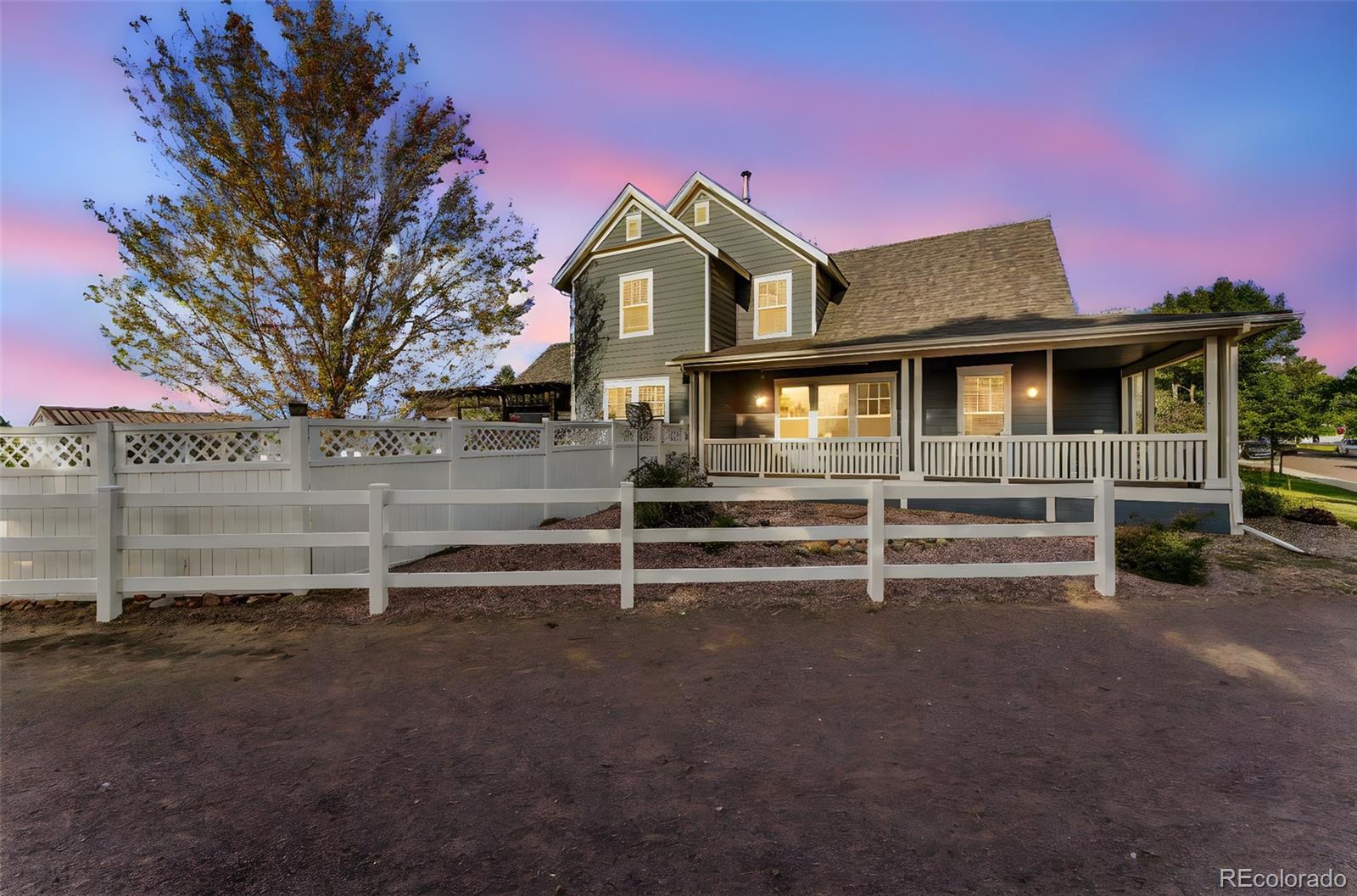 Magnificent property with amazing views located in Summit View Estates. One of the largest corner lots in the subdivision with over 11,000sf of space. Very private location in this exceptional community with no neighbors directly behind you. Charming Wrap around porch greets you walking up. Entering the home you are welcomed by this clean, meticulously cared for home. Custom stained hardwood flooring and natural lighting throughout. Double sided gas fireplace between the front room and large separate formal dining room create a comforting vibe. This eat in kitchen offers large spacious cabinets with tons of storage, pantry and beautiful granite countertops. Main level laundry room includes a walks out to the side of house too. The Master suite and 5pc bath is located on the main level and its walk in closet, separate shower, soaking tub and double vanity. The carpeted upper level offers 3 great sized bedrooms and a full bath. The unfinished basement has been converted into useable space for your home gym, movie room and a space used as a bedroom. This stunning home offers the most breathtaking views from the backyard retreat. Every evening the stamped patio and covered pergola is used to enjoy the incredible sunsets, soaks in the hot tub and the tranquil feel of the space. The large well cared for yard includes a storage shed, garden area and views of Longs Peak. A block away from the neighborhood playground and a quick walk to Milavec Reservoir, the Frederick skate park and rec area, golf, and shopping are all just minutes away with future development of Frederick Recreation Area and Bella Rosa Golf Course. This unique property, located in a lovely picturesque neighborhood, with an exquisite yard, may not last long!