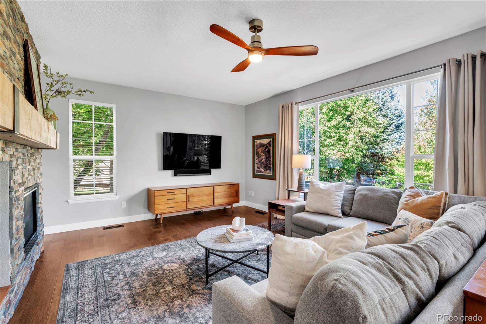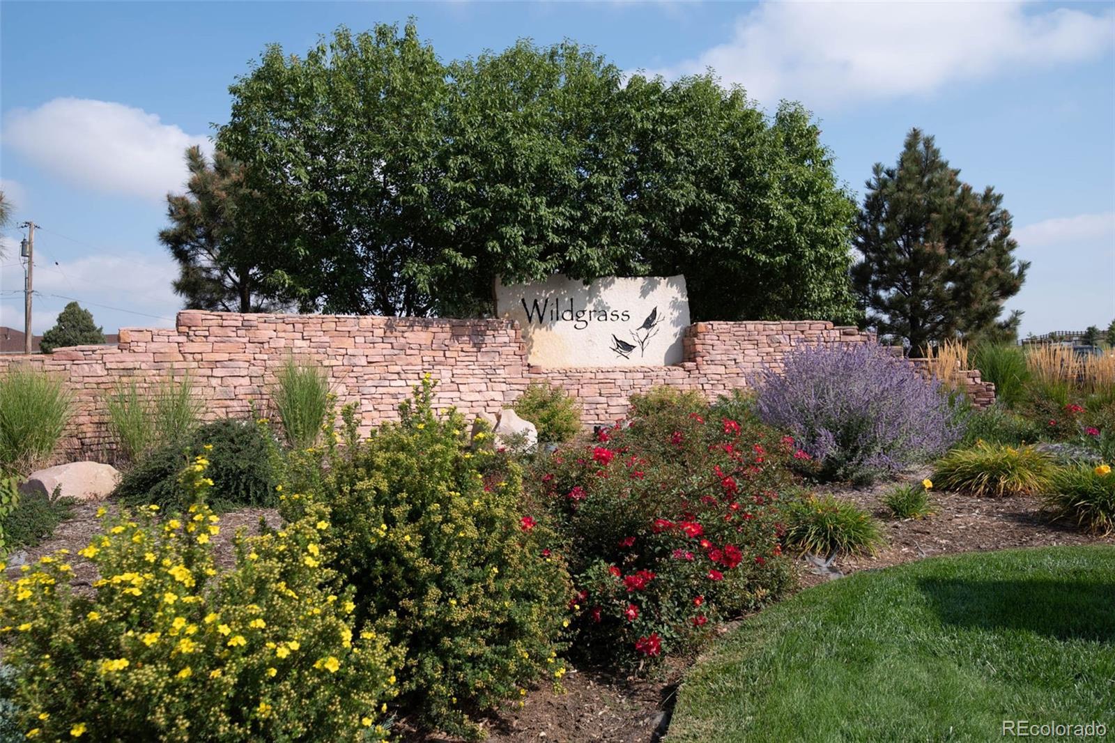 Experience elevated living where beauty, serenity, and sophistication blend. Nestled in the Wildgrass community, this breathtaking two-story home offers more than just a place to live. Tucked away on a cul-de-sac with mountain views, every moment here feels like a retreat. From the moment you arrive, you'll be in awe of the open plan living space. In the heart of the home is the thoughtfully designed chef’s kitchen with no detail overlooked. Featuring a gracious kitchen island, 6-burner gas range, built-in KitchenAid refrigerator, quartz countertops, designer lighting and a custom bar station complete with wine and beverage fridge. Whether it's morning coffee or a celebration with friends, this kitchen makes it unforgettable. The main floor is bathed in natural light, thanks to expanded windows and glass patio doors that seamlessly blend indoor and outdoor living. The open-concept living room, complete with a gas fireplace and rustic style mantel, offers a welcoming yet refined space to entertain or unwind. A private office completes the ideal main-level layout. Upstairs, the primary bedroom suite is your personal sanctuary, featuring a walk-in closet designed to delight and a luxurious bathroom with spa-like finishes, including a walk-in shower with dual shower heads. Three additional bedrooms, full bathroom and a convenient laundry room finish out the second level. Downstairs, the finished basement extends the living space with a family room, two additional bedrooms with egress windows and a full bathroom. Outdoors, mature landscaping which ensures privacy while the expanded patio creates the perfect environment for entertaining. Desirable 3-car garage and south facing driveway - ideal for winter months. Enjoy access to a scenic trail system that runs through this sought-after community. Conveniently located near schools, parks, The Orchard Town Center with easy access to I-25 and Northwest Parkway. This is more than a home, it’s where your next chapter begins.