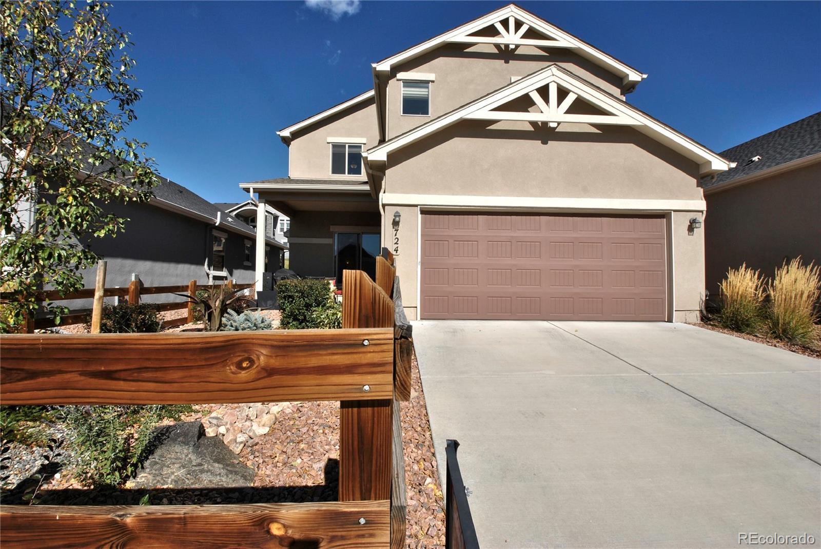 SUPERB LOCATION!! in Sanctuary Pointe with Pikes Peak and Mountain Views only a block from Regional park and playground. Patio/Single family lifestyle, HOA dues only 325 Year! Open spacious near New condition with Engineered wood floors throughout the main level living, dining and kitchen areas. Cozy living room accented by gas fireplace that walks out to the Zeroscaped yard and large patio. The big eat in kitchen features granite counters, upgraded kitchen aid appliances including gas stove, soft close cabinets and Custom pantry. Upstairs includes spacious family room and 2 huge bedrooms with awesome Mountain Views. Custom master bath suite with sitting area. Enjoy the fully finished garage with Epoxy floors and Custom cabinets. Central A/C, Custom blinds and shutters, washer/dryer and stucco exterior. All ready and Close to I-25 Corridor.