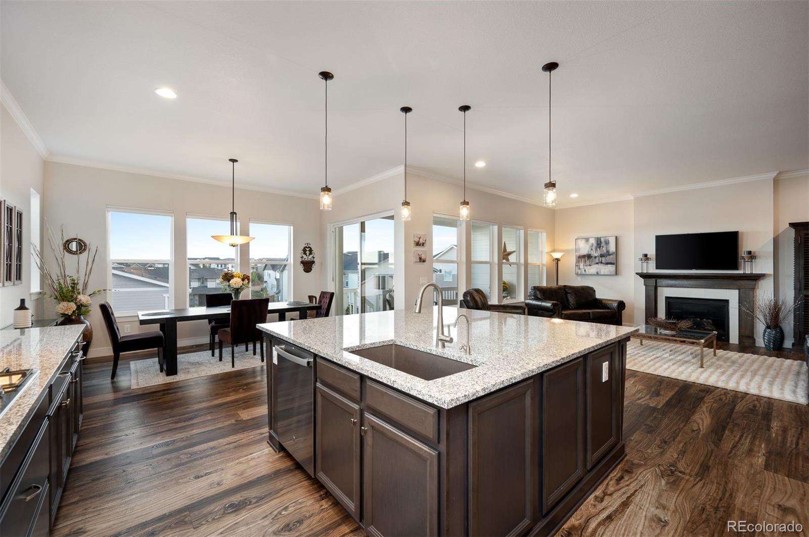 RARE - MAIN FLOOR Primary & Living, 3 CAR GARAGE & WALK OUT BASEMENT: Taylor Morrison's TOP FLOOR PLAN in METICULOUS CONDITION w/TONS OF UPGRADES. Perched at the Top of the Hill/Neighborhood- Views, Light and Serenity embrace the Spacious Rooms designed for Entertaining at all stages of life. Oversized Windows & High Ceilings on Both Floors. CHEF's ISLAND KITCHEN includes Ample Countertops, Top Grade Cabinetry w/ Rolling Drawers, Dual Ovens, Gas Range w/ Hood, Rolling Drawers & Walk in Pantry - Opens to Living Room with Grand Fireplace, Dining Room & Deck with gas access for Grill/Firepit. Luxurious Primary Suite hosts private entry, Massive Closet & Sprawling Bathroom designed with 2 Upgraded Vanity Systems & Dual Head Glass Shower. Lower Level offers brilliant main level light/lifestyle with High Ceilings, Oversized Windows & Walk out to Backyard. The Spacious Rooms for entertaining continue with 2 Bedrooms, Full Bath, Recreation Area and 100s of feet for storage. 3 Car Garage includes recently finished drywall & floor sealant. Over $100,000 in improvements since 2022 include: Paver Accents in Front Drive + Walkways. Professional Designed and Installed Landscaping in Front-Back Yard, Window Treatments, Water Filtration, Crown Molding, Main Garage Drywall & Floor Sealant. TOP SCHOOLS: Zoned for 5 STAR Elementary, Middle and High Schools per SchoolDigger!!
