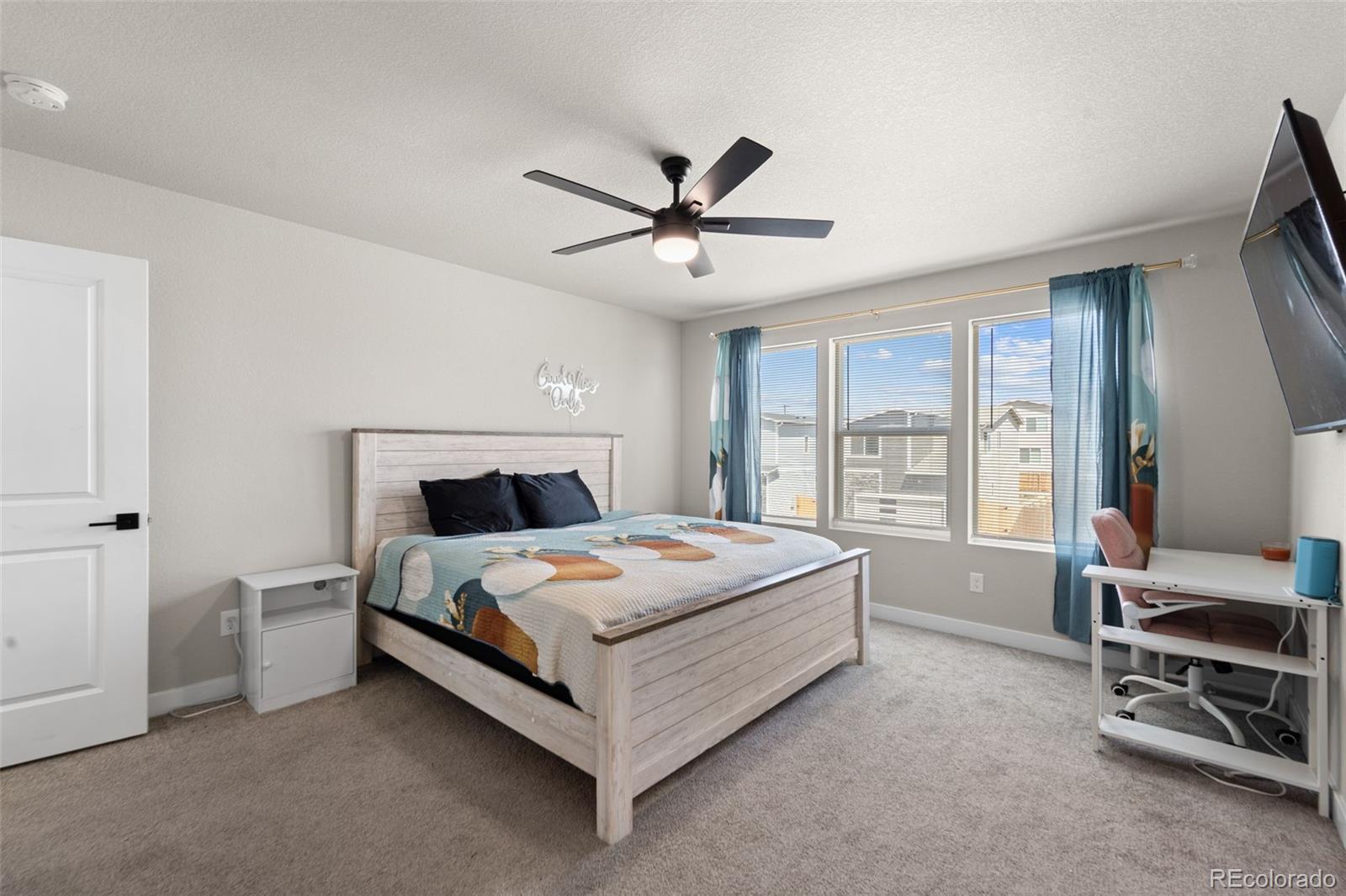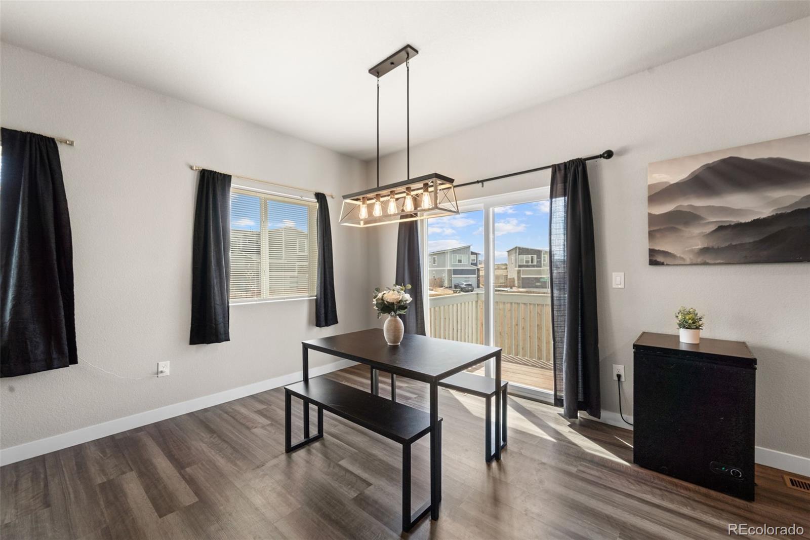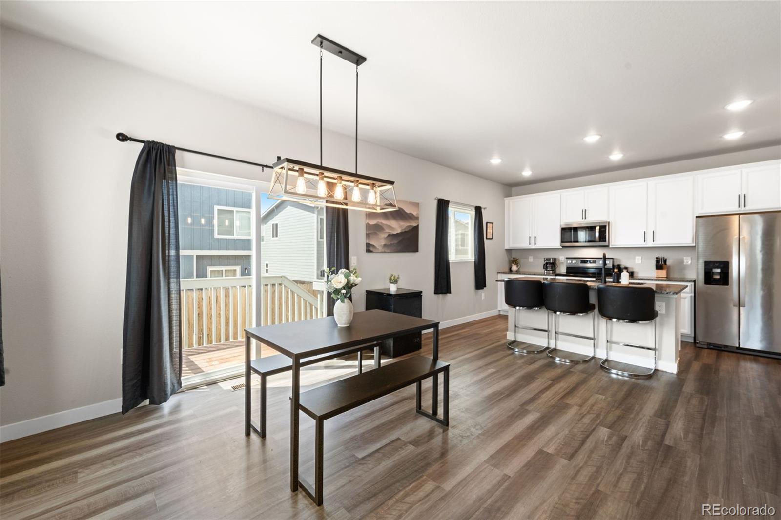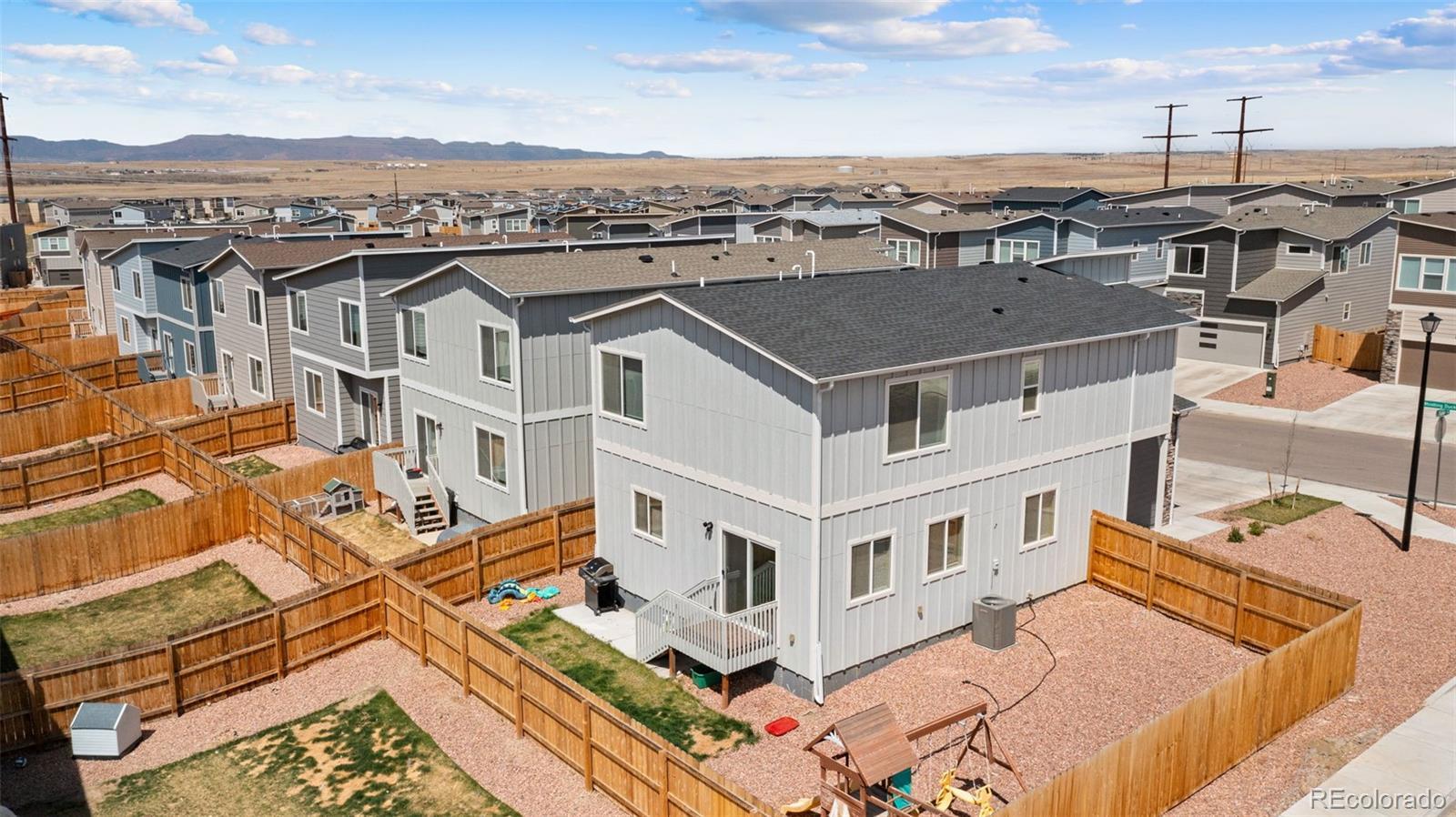 Welcome to this beautiful newer home offering comfort, convenience, and room to grow! Situated on a large corner lot, this 3-bedroom, 3-bathroom home features a spacious open-concept main level that's perfect for both everyday living and entertaining. The kitchen, dining, and living areas flow seamlessly together, with plenty of closet and storage space to keep everything tidy. Upstairs, you'll find all three generously sized bedrooms and the laundry room—making chores a breeze. The primary suite includes a private bathroom and ample closet space. Step outside to enjoy the backyard deck, perfect for outdoor meals or relaxing evenings, and let the kids play on the included playset! Located within walking distance to the neighborhood school, scenic trails, and local parks, this home is ideal for anyone looking for comfort and community. Also, conveniently accessible to Ft Carson, Peterson SAFB, and Schriever AFB.