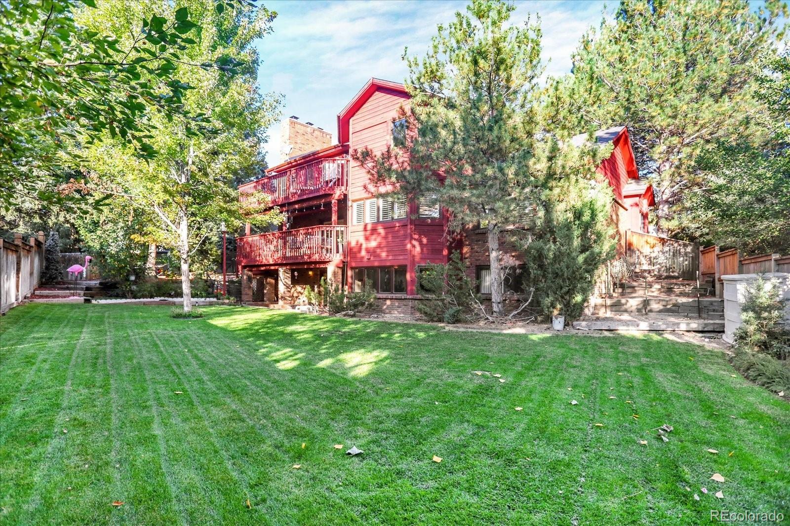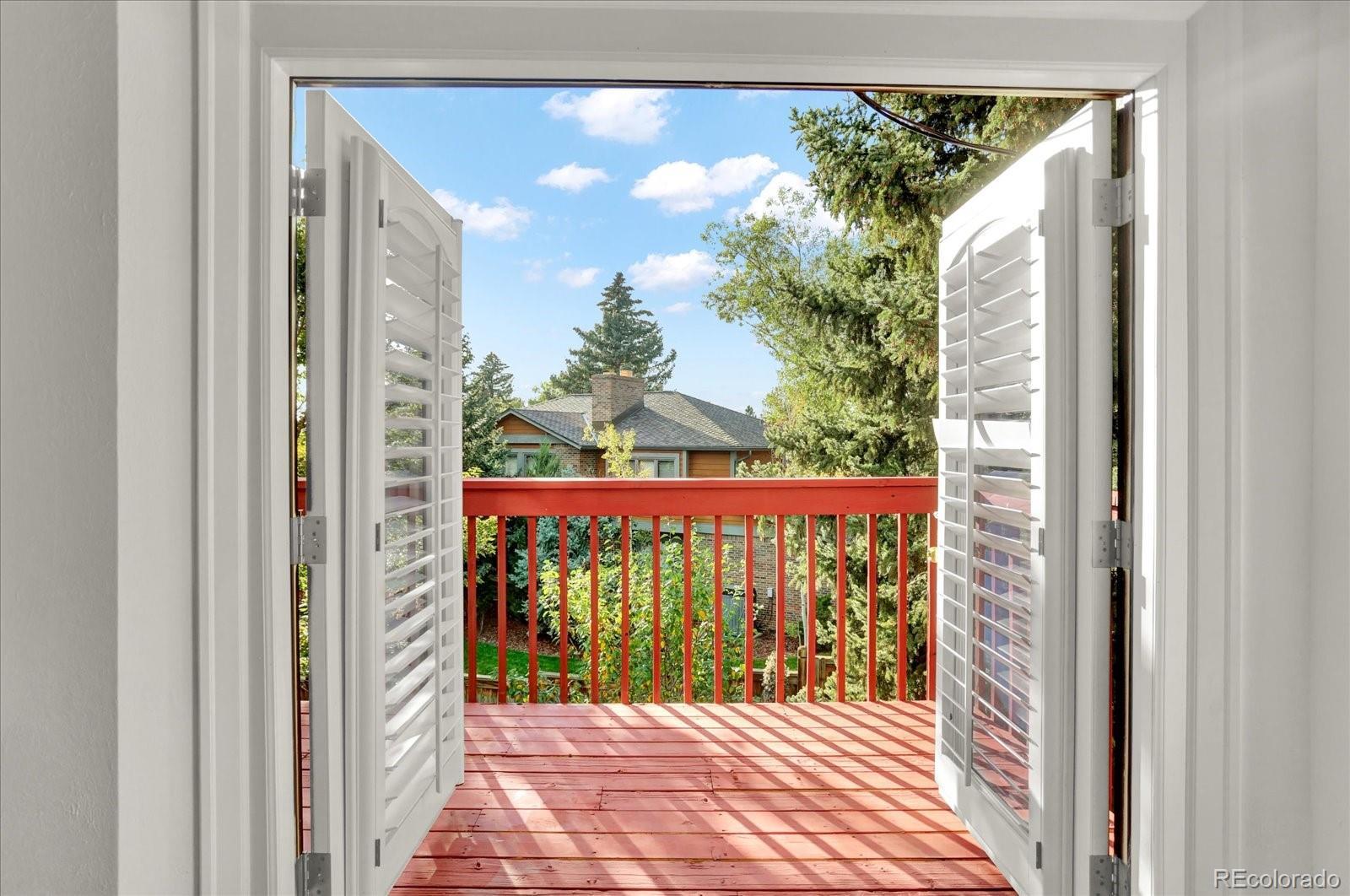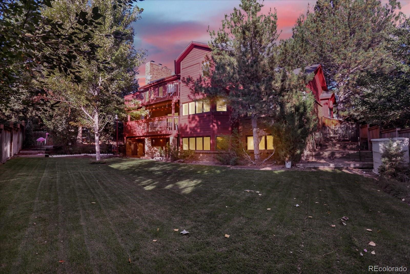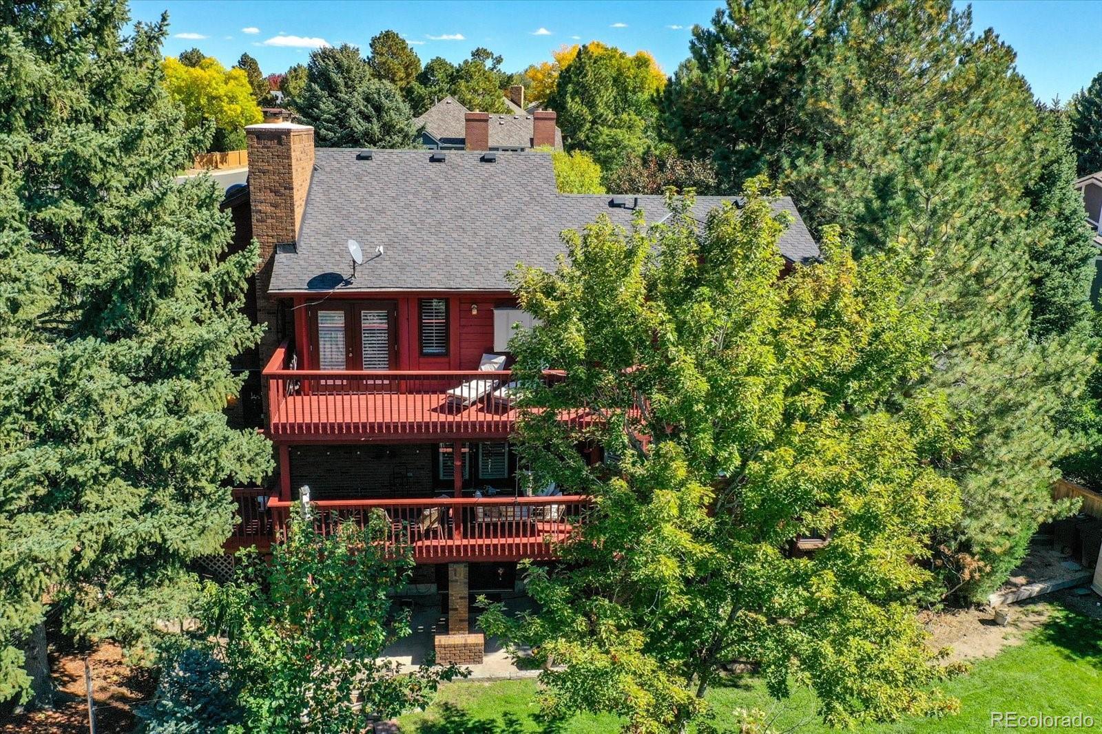 Charm and elegance radiate from this traditional Piney Creek estate. Paver walkways lead to an inviting front patio with double entry doors. Inside, a sun-filled two-story foyer opens to vaulted living and dining rooms, the kitchen, and family room—all adorned with classic shutters and rich natural light. The kitchen impresses with granite countertops, newer stainless-steel appliances, an island cooktop, workstation, and a spacious breakfast nook illuminated by rays of sunshine from the bay window.The family room features a floor-to-ceiling brick wall with mantle, wood burning fireplace, wet bar, and French doors leading to a large deck overlooking the private backyard. The main level also offers a formal office with French doors to the front patio, a convenient half bath, and an oversized laundry room with plentiful cabinetry, folding area and utility sink. Upstairs, the bright landing leads to the primary suite and four additional bedrooms. The owner’s retreat showcases hardwood floors, vaulted ceilings, focal brick wall and mantle, wood burning fireplace, and private upper-deck access. The ensuite bath includes granite counters, a jetted tub, walk-in shower, and large walk-in closet. Bedrooms 2–4 share a remodeled bath with dual sinks and custom shower. The finished basement includes a spacious great room with brick mantle, wood burning fireplace, multiple recreation areas, a walk-out patio, bedroom, and full bath—perfect for guests or entertaining. Outside, mature landscaping surrounds a patio wired for a hot tub, and LeafGuard gutters provide easy maintenance. Located on a quiet eyebrow cul-de-sac, this home offers a 3-car garage, wide driveway, and access to Piney Creek’s resort-style amenities—clubhouse, pool, tennis courts, playgrounds, and walking trails. Enjoy a prime location near Denver, DIA, E-470, and top-rated Cherry Creek schools. Experience timeless charm, comfort, and community—all in one beautiful home.