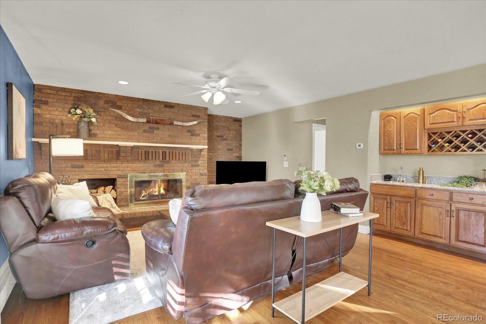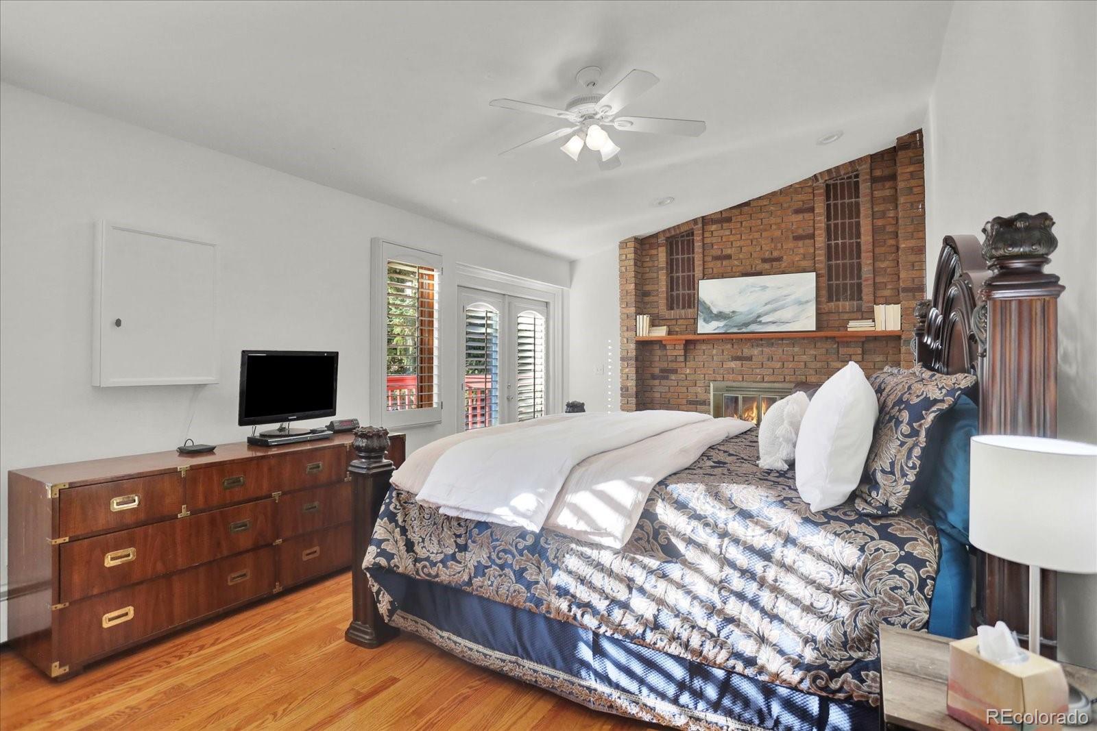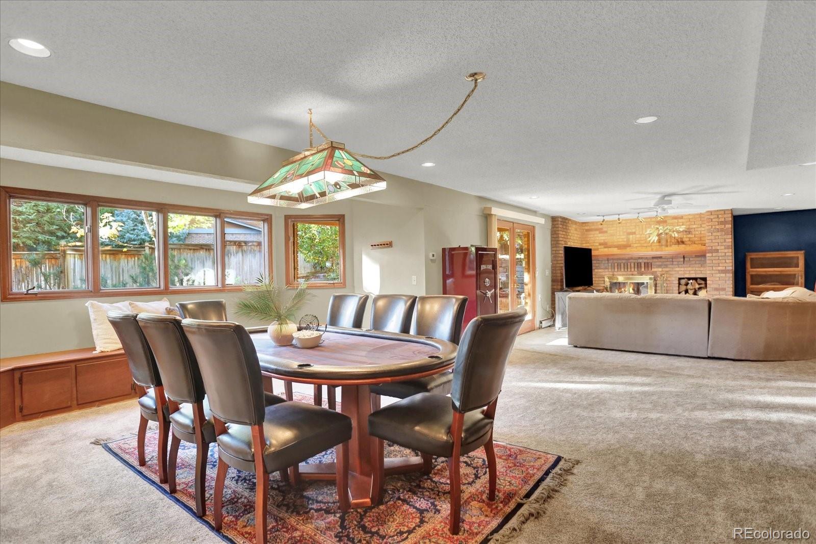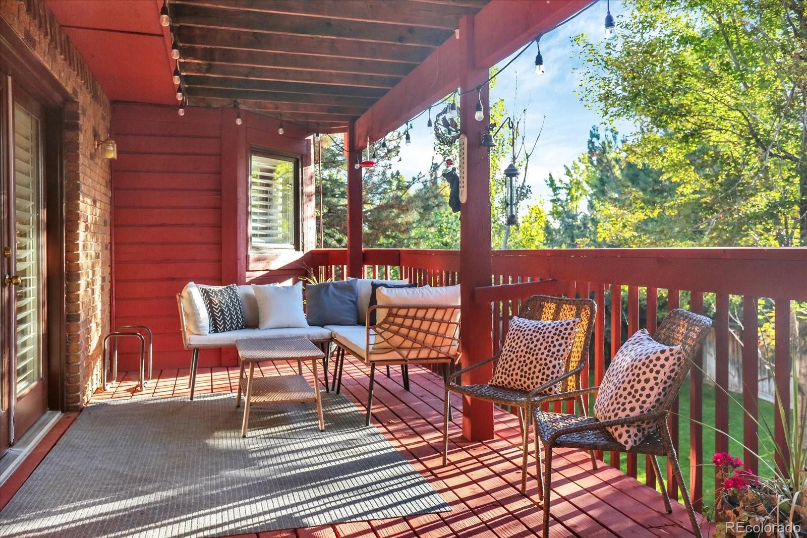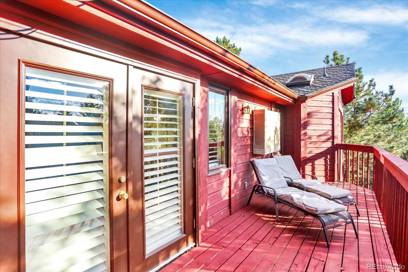 Charm and elegance radiate from this traditional Piney Creek estate. Paver walkways lead to an inviting front patio with double entry doors. Inside, a sun-filled two-story foyer opens to vaulted living and dining rooms, the kitchen, and family room—all adorned with classic shutters and rich natural light. The kitchen impresses with granite countertops, newer stainless-steel appliances, an island cooktop, workstation, and a spacious breakfast nook illuminated by rays of sunshine from the bay window.The family room features a floor-to-ceiling brick wall with mantle, wood burning fireplace, wet bar, and French doors leading to a large deck overlooking the private backyard. The main level also offers a formal office with French doors to the front patio, a convenient half bath, and an oversized laundry room with plentiful cabinetry, folding area and utility sink. Upstairs, the bright landing leads to the primary suite and four additional bedrooms. The owner’s retreat showcases hardwood floors, vaulted ceilings, focal brick wall and mantle, wood burning fireplace, and private upper-deck access. The ensuite bath includes granite counters, a jetted tub, walk-in shower, and large walk-in closet. Bedrooms 2–4 share a remodeled bath with dual sinks and custom shower. The finished basement includes a spacious great room with brick mantle, wood burning fireplace, multiple recreation areas, a walk-out patio, bedroom, and full bath—perfect for guests or entertaining. Outside, mature landscaping surrounds a patio wired for a hot tub, and LeafGuard gutters provide easy maintenance. Located on a quiet eyebrow cul-de-sac, this home offers a 3-car garage, wide driveway, and access to Piney Creek’s resort-style amenities—clubhouse, pool, tennis courts, playgrounds, and walking trails. Enjoy a prime location near Denver, DIA, E-470, and top-rated Cherry Creek schools. Experience timeless charm, comfort, and community—all in one beautiful home.
