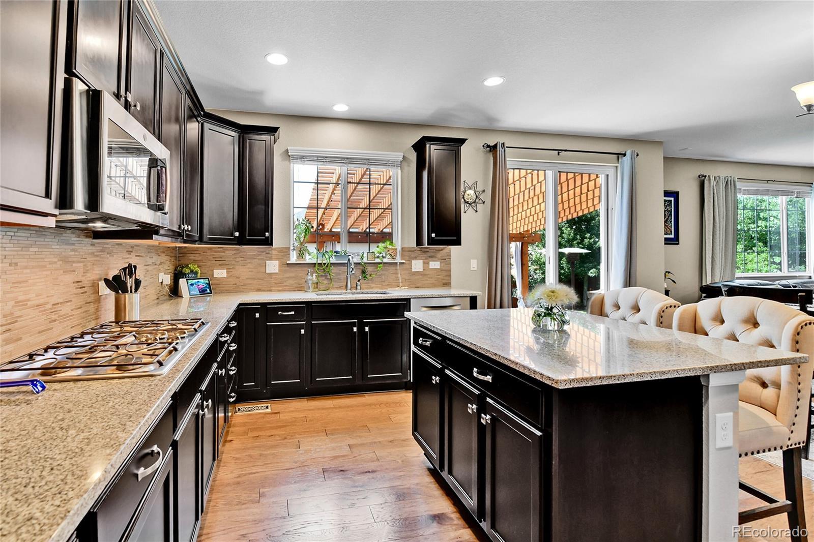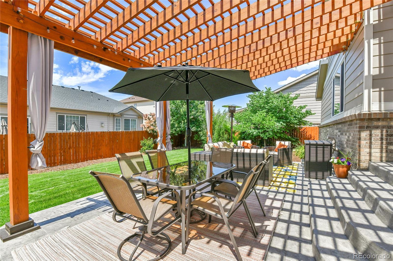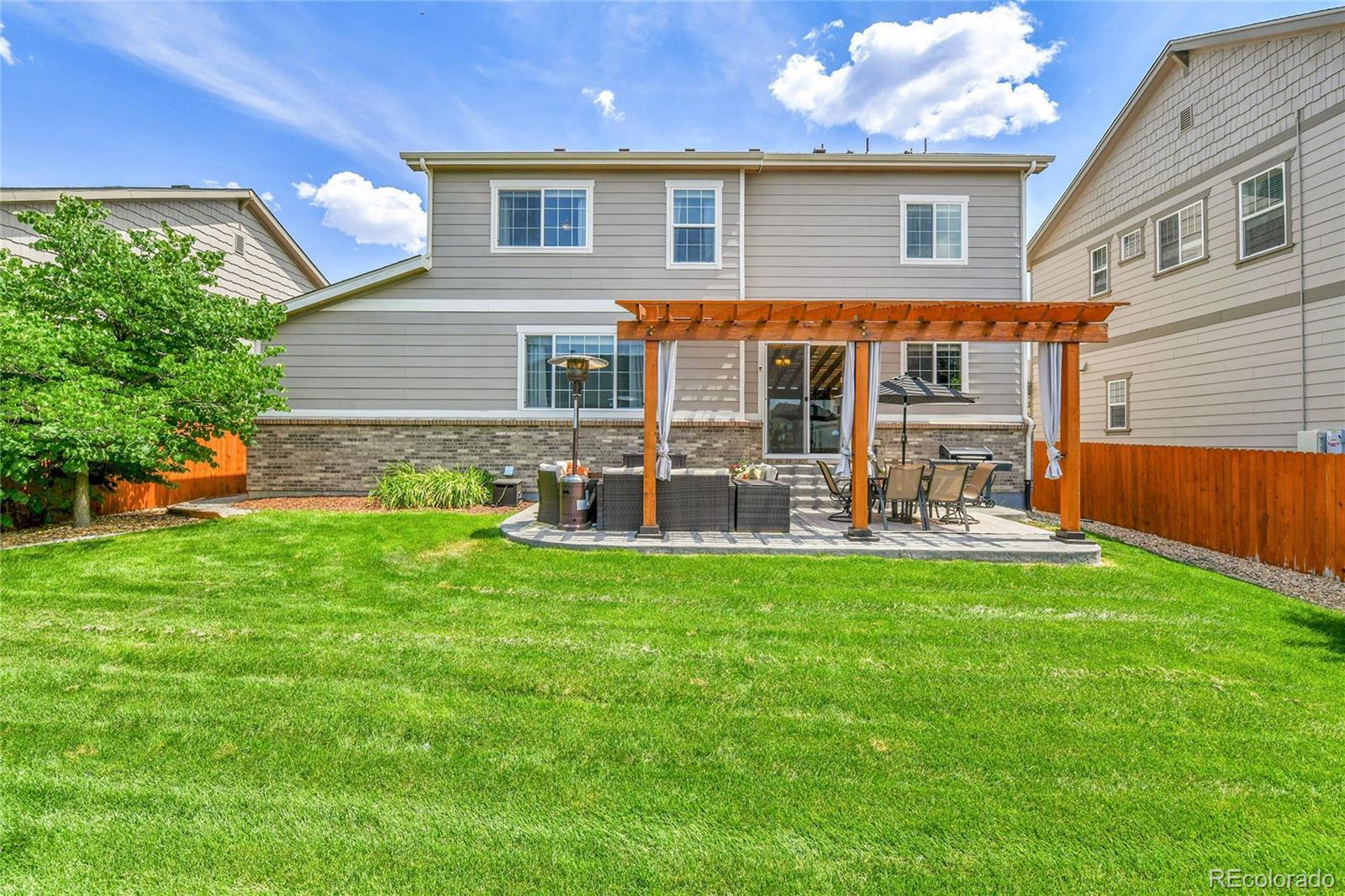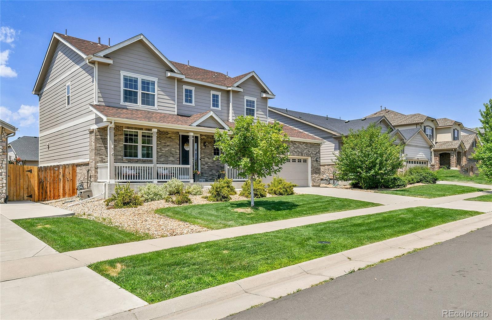 Welcome to your dream home in Wheatlands! This beautiful property blends comfort, style, and community. You'll love the inviting front porch and a flexible main floor office space or dining room. Inside, enjoy hardwood floors, a cozy fireplace, upgraded cabinetry, neutral paint, and a gourmet kitchen with stainless steel appliances, granite countertops, gas range, double ovens, and an oversized island—perfect for both daily living and entertaining. The backyard is an entertainer’s paradise with a stamped concrete patio, pergola, and room to play or host BBQ's or large gatherings. Upstairs, relax in the luxurious primary suite with a barn door, spacious walk in closet, plush carpeting, and attached bath with a soaking tub, and upgraded tile and countertops. Three more bedrooms, a full bath, and laundry complete the second floor. The finished basement offers a spacious family room, wet bar, bathroom, and an insulated flex/bedroom ideal for an office, studio, or media space. Enjoy high-speed wired connectivity in every room. Bonus features include a 3-car tandem garage and a prime location—just 1/8 mile from Aurora Reservoir, 1/2 mile to the clubhouse and resort-style pool, and only 1 mile to Southlands Shopping Center and the Southeast Aurora Rec Center. The neighborhood clubhouse and pool are perfect for relaxing or socializing. The YMCA - within walking distance - and included in the $70/month HOA - offers top-tier fitness and recreation. You’ll also enjoy outdoor adventures and peaceful escapes at nearby Aurora Reservoir, and quick access to shopping, dining, and entertainment at Southlands Mall. Located in the top-rated Cherry Creek School District with easy access to E-470, this home offers the ideal combination of space, luxury, and convenience in one of Aurora’s most desirable neighborhoods. Don’t miss your chance—schedule a private tour today and experience the best of Wheatlands living!