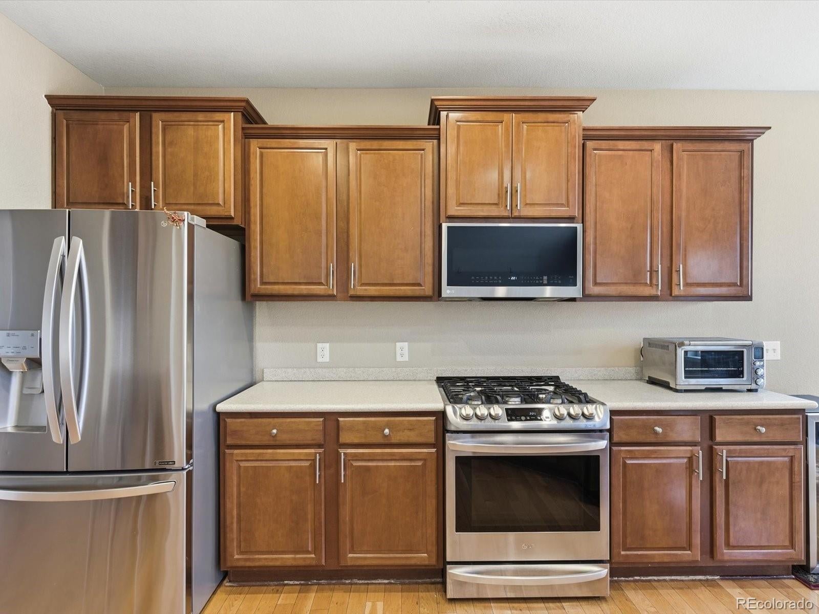 ONE OF THE BEST VALUES IN ANTHEM!! Incredible opportunity in the highly sought-after Anthem community of Broomfield! This beautifully maintained 4-bedroom, 4-bathroom home is nestled in a vibrant neighborhood known for its top-tier amenities and community lifestyle. Proudly offered by the original owners, the home has been lovingly cared for and thoughtfully designed throughout. From the welcoming front porch, step into a bright foyer that opens to a spacious, open-concept floor plan. The formal dining room flows into the well-appointed kitchen, featuring oak cabinetry, corian countertops, stainless steel appliances, pantry, and a raised counter with seating—perfect for casual dining or entertaining. The adjacent two-story living room centers around a cozy gas fireplace, offering views of the backyard and creating a warm, inviting space. The main level includes a versatile bedroom, ideal for guests or a home office, a 3/4 bathroom, and a convenient laundry room off the garage entry. Upstairs, retreat to the expansive primary suite complete with a bay window, coffered ceiling, walk-in closet, and a luxurious 5-piece bath featuring a soaking tub and dual vanities. A generous loft offers flexible space for a playroom or second office, and is joined by two additional bedrooms and a nearby full bathroom. Enjoy Colorado evenings in your private backyard oasis with mature trees and a stone patio, perfect for outdoor dining and relaxation. The finished full basement includes a half bath and offers plenty of space for recreation, hobbies, or future customization. Additional highlights include a rare 3-car garage and access to Anthem’s resort-style amenities, including a state-of-the-art recreation center, two pools with waterslides, fitness classes, outdoor tennis, basketball and volleyball courts, and miles of scenic trails. Conveniently located near top-rated schools, parks, and with easy access to Boulder, Denver, E470 and NW Parkway this home truly checks every box.