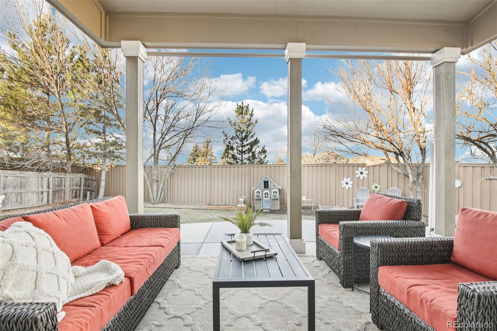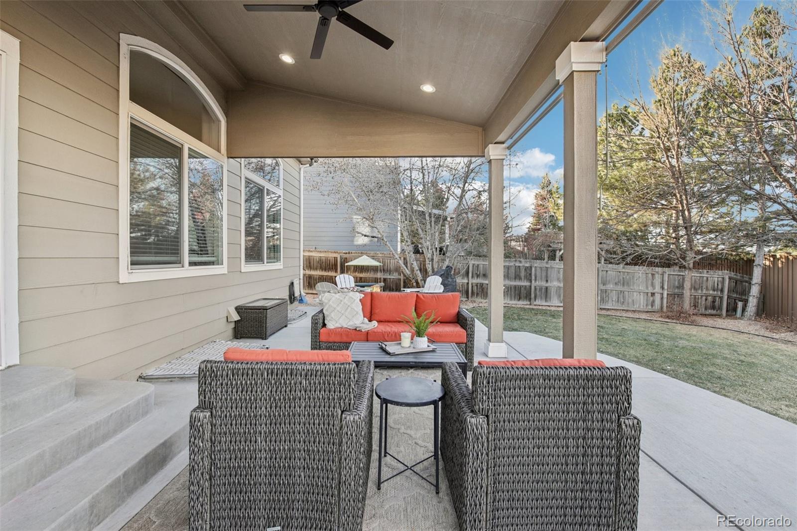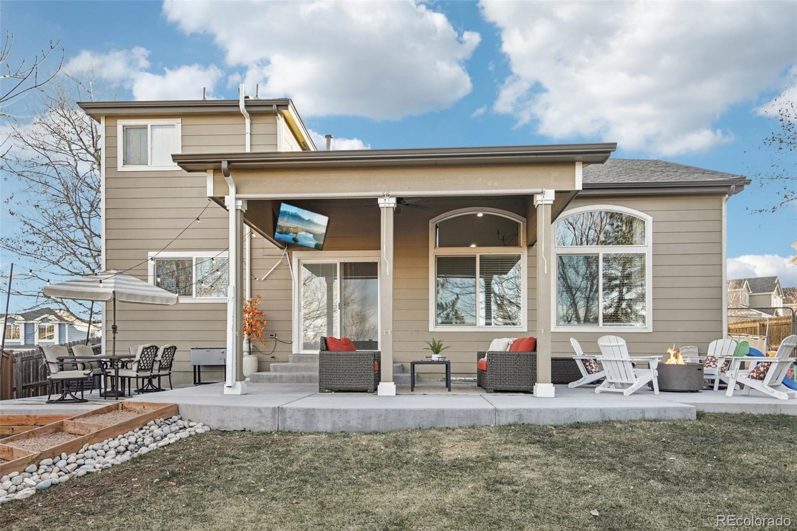 This beautifully updated home offers a wonderful, functional floorplan paired with thoughtful upgrades throughout. The main level features brand-new hardwood floors, fresh interior paint, and a bright, inviting layout with a separate formal dining room, living room, and a spacious family room showcasing vaulted ceilings and a cozy gas fireplace. The kitchen has been refreshed with new cabinetry topped with crown molding, new countertops, and updated lighting, creating a modern and welcoming space for everyday living and entertaining. Upstairs, the spacious primary suite impresses with vaulted ceilings and a luxurious five-piece en suite bath. Additional updates include new carpet, new countertops in all bathrooms, and a new A/C installed in 2022 for peace of mind. The finished basement expands your living space with a designated office, wet bar with wine fridge, and plenty of room to relax or entertain. Step outside to enjoy the extended poured patio and new back patio overhang, perfect for outdoor gatherings. A radon mitigation system is already in place, completing this move-in-ready home that blends comfort, style, and smart upgrades throughout. Located within the desirable Cherry Creek School District and conveniently close to Southlands Mall, E-470, and Gun Club Road, this home blends comfort, style, and smart upgrades in a prime location. Don’t miss your chance to schedule a tour!