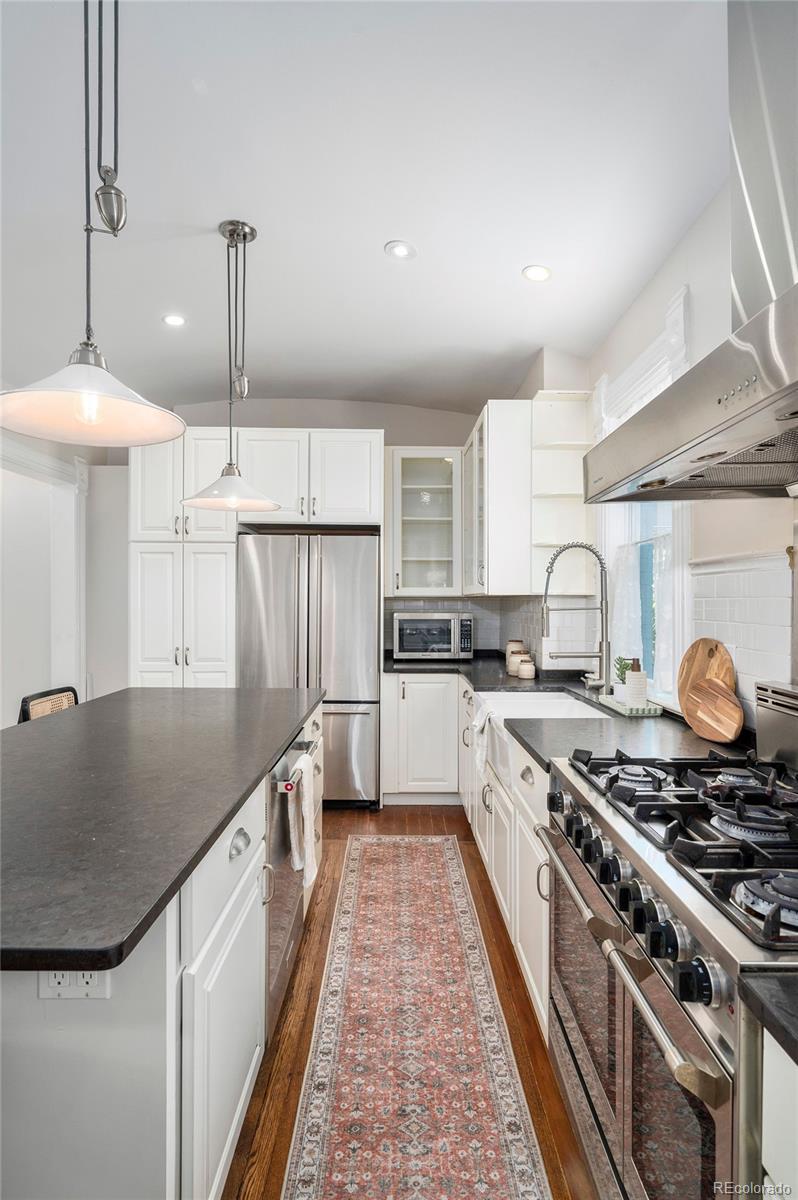 This beautifully refreshed Victorian offers the perfect blend of historic charm and modern luxury in one of Denver’s most walkable neighborhoods. Just steps from Congress Park, Cheesman Park, City Park, and an array of top restaurants, shops, and the new Denver Rec Center, this home places the best of the city at your doorstep. The exterior and interior have been meticulously updated with custom designer paint, fresh landscaping, and thoughtful touches that enhance its timeless curb appeal. Inside, original details shine—rich woodwork, built-in bookcases, hardwood floors, and a clawfoot tub—all seamlessly paired with modern upgrades like new plush carpet and fully renovated bathrooms. The gourmet chef’s kitchen is a true centerpiece, featuring a DeLonghi 5-burner gas range, farmhouse sink, and high-end stainless appliances. A spacious addition provides the perfect space for a home office or media room, while the third floor offers two additional bedrooms and a versatile loft-style common area ideal for kids or guests. A private backyard patio and an oversized two-car garage with additional off-street parking complete this exceptional property. With extreme walkability, historic charm, and luxurious modern updates—including access to the highly sought-after Bromwell Elementary School—this is a rare opportunity you don’t want to miss.