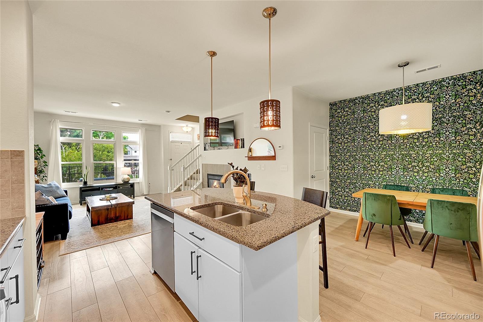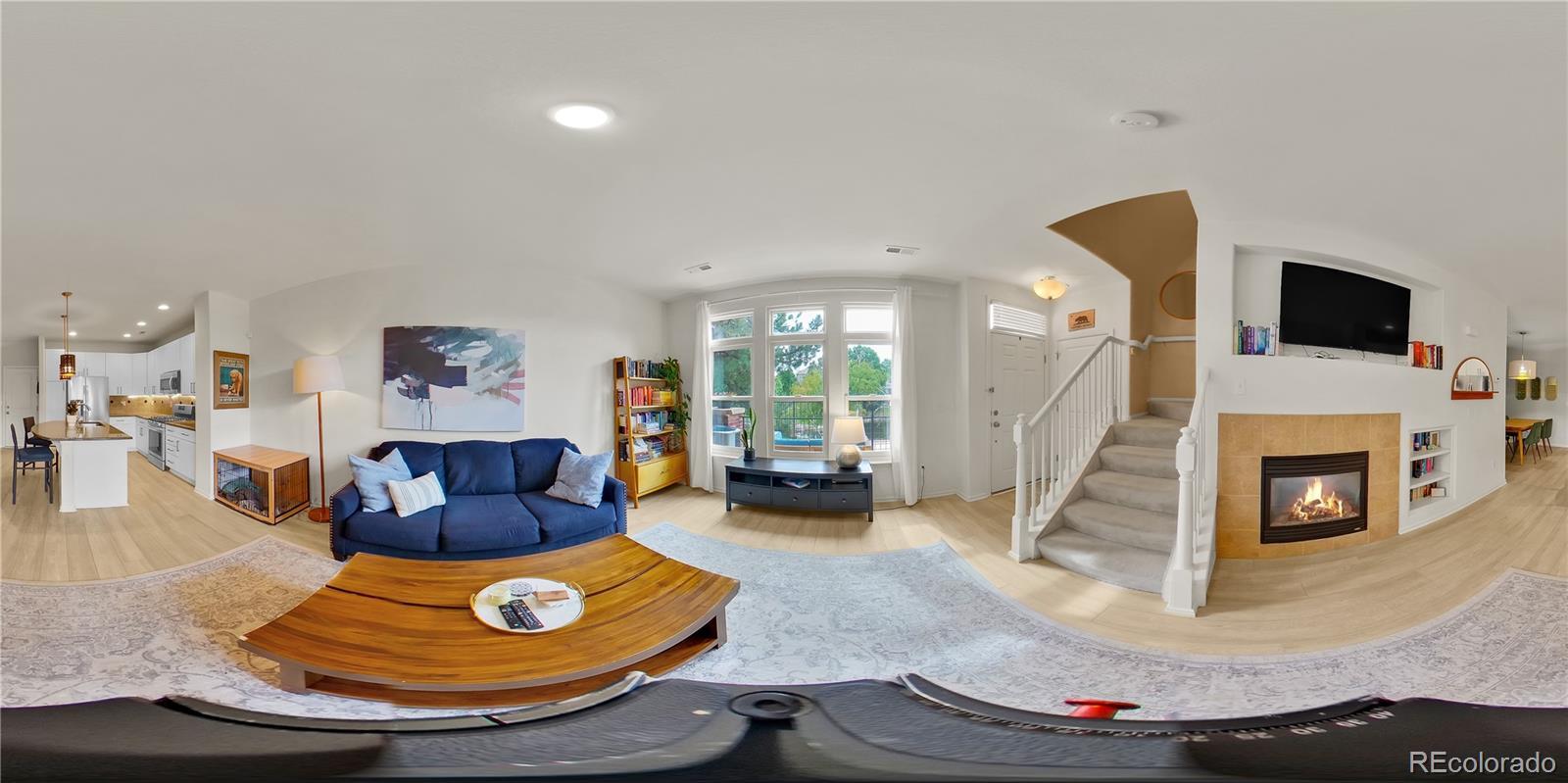 This beautifully maintained townhome is in the sought-after Villas at Highland Park. Offering 2 bedrooms, 2.5 bathrooms, and 1,577 square feet, this home combines thoughtful design with modern convenience in a peaceful setting. Step inside to soaring 10-foot ceilings on the main level, creating a bright and open atmosphere. The living room centers around a cozy fireplace, flowing seamlessly into the dining area and kitchen — perfect for entertaining or relaxed evenings at home. The kitchen features granite countertops, a spacious island, and ample cabinetry, making it as functional as it is stylish. Upstairs, you’ll find two generously sized bedrooms, each with walk-in closets, and the convenience of in-unit laundry. The primary suite is a true retreat, highlighted by a bathroom with dual sinks and plenty of storage. Enjoy tranquil views year-round with this home’s unique setting overlooking the greenbelt with ponds and streams. Well-maintained and move-in ready, it offers both comfort and peace of mind. Located in the desirable Cherry Creek School District, the community also places you close to Park Meadows Mall, dining, parks, and major routes — ensuring easy access to everything Centennial and the Denver metro have to offer. Don’t miss this rare opportunity to own a stylish, well-cared-for townhome in a prime location!
