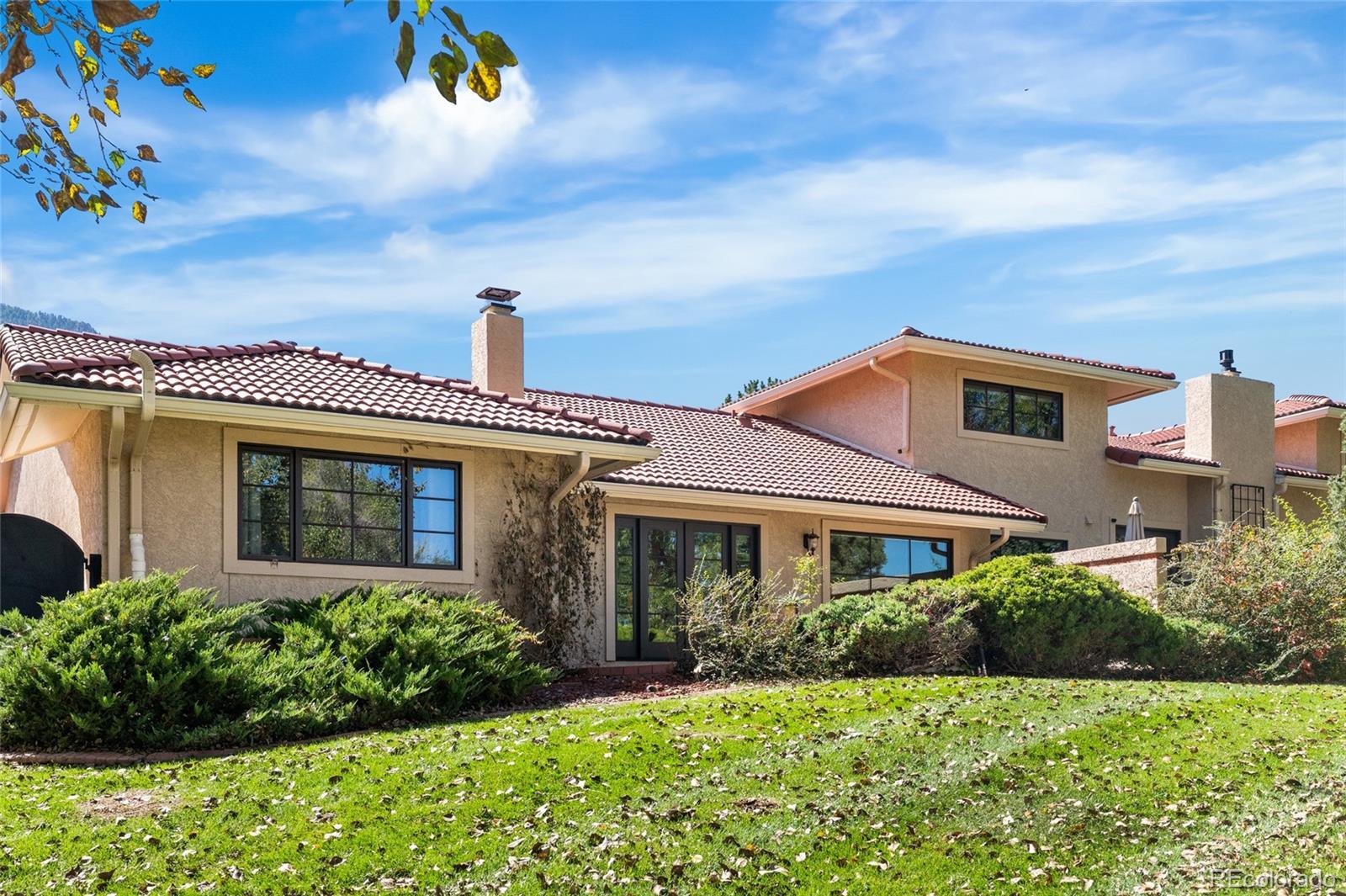 Tucked within the exclusive Broadmoor Heights gated community, this ranch-style townhome embodies timeless Colorado sophistication. Perfectly positioned to capture sweeping views of Cheyenne Mountain from the front and the Broadmoor Resort Golf Course from the back, the home is surrounded by natural beauty and quiet prestige. Step inside and experience effortless refinement, where vaulted ceilings with exposed beams and rich finishes create a sense of distinction and warmth. Every detail feels intentional, from the natural light that fills the space to the seamless blend of comfort and craftsmanship. The open main level flows with ease, offering an inviting setting for entertaining or relaxed daily living. The kitchen, dining, and living areas connect effortlessly. The primary suite provides a peaceful retreat with a private patio perfect for morning coffee or an evening glass of wine as the sun dips behind the mountains. A secondary bedroom suite and a flexible office complete the thoughtful main-level design. This versatile office space can easily serve as a third bedroom on the main level or a hobby room, offering the ease of genuine single-level living with thoughtful versatility. The lower level impresses with scale and possibility. A stylish wet bar and guest suite anchor the space, ideal for customizing into a recreation haven, art studio, fitness center, and/or home theater. Its openness and size is rare in many low-maintenance gated community homes. Every element of this home speaks to quiet elegance and ease, allowing you to fully enjoy the Broadmoor lifestyle- golf, dining, and resort amenities just moments away. Nestled at the private back of the community, this residence offers both peace of mind and the prestige of one of Colorado Springs’ most coveted addresses.