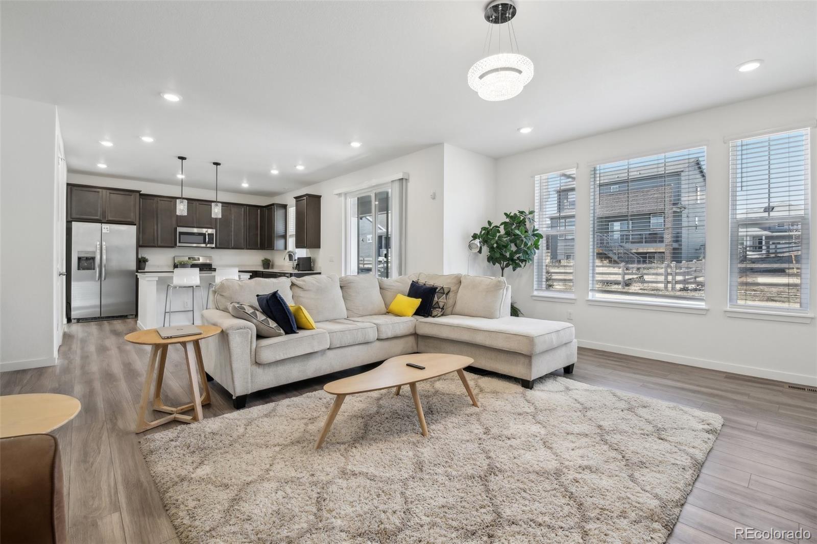 This home boasts beautiful upgrades throughout, featuring stainless steel appliances, sleek vinyl plank flooring, and a spacious covered deck perfect for relaxing or entertaining while enjoying mountain views. The convenient mud room off the attached garage and a separate laundry room near the bedrooms make everyday living effortless. The finished basement offers additional living space and a fourth bedroom, ideal for a home office or recreation area. Energy-efficient features and modern technology enhance comfort and savings. Located in a thoughtfully planned new neighborhood community with a clubhouse, fitness center, playgrounds, park, and walking trails, this home is just minutes from dining, shopping, entertainment, and more—offering the perfect blend of style, convenience, and outdoor living.