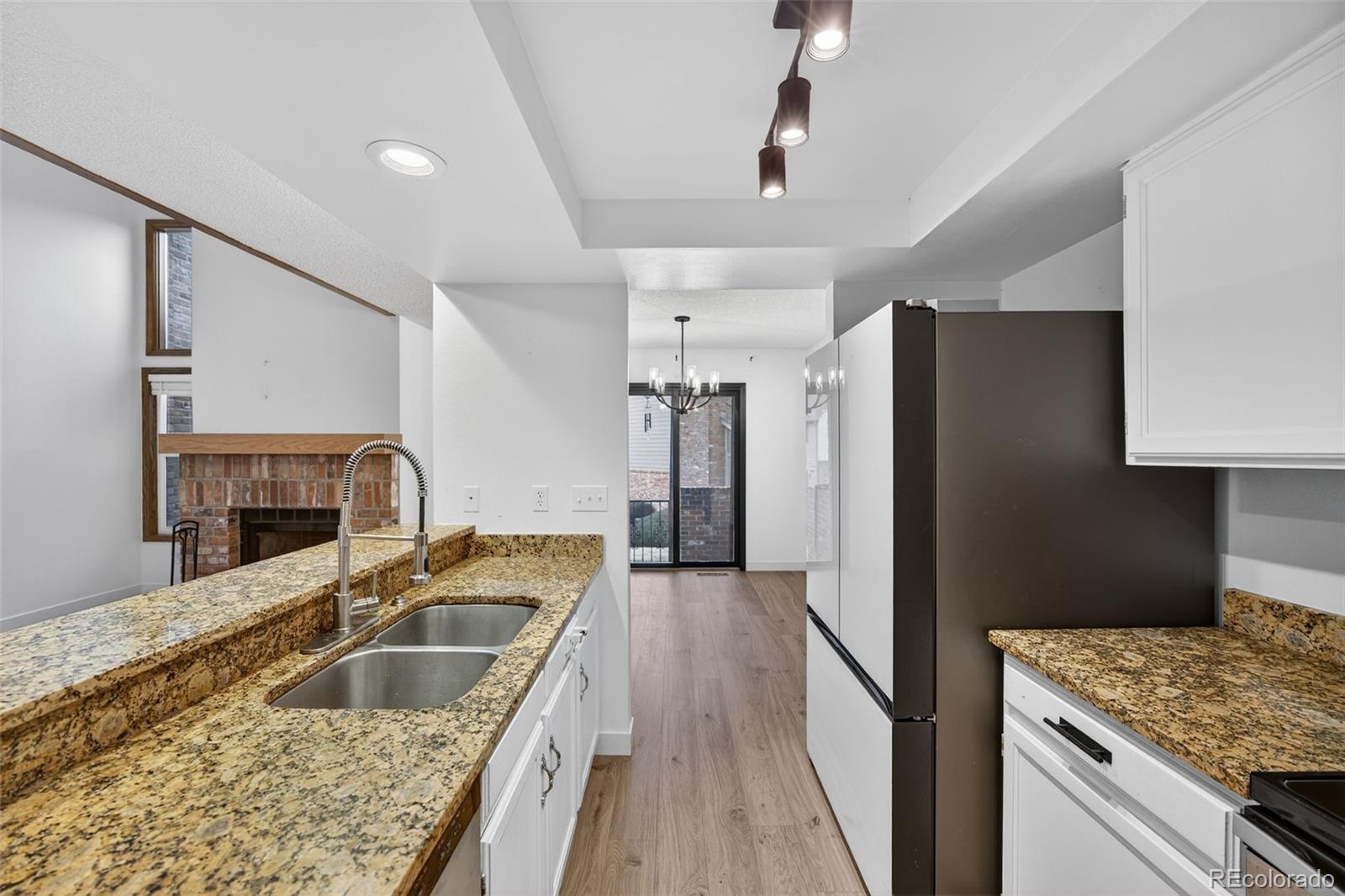 Welcome to 4110 S Evanston Cir #B! This light-filled 3-bedroom, 4-bath home offers an open floor plan, vaulted ceilings, and great space for both everyday living and entertaining. The inviting family room features a wood-burning fireplace. Off the dining space, there are sliding doors that open to a private deck overlooking a quiet green space — the perfect spot for morning coffee or relaxing evenings. The kitchen includes granite countertops, stainless steel appliances, updated cabinetry, and easy flow into the dining area. A main-level powder bath adds convenience for guests. Upstairs, the vaulted primary suite feels bright and spacious, complete with a large walk-in closet and private bath with dual vanities, soaking tub, and separate shower. A spacious secondary bedroom, full hall bath, and flexible loft space with built-in wetbar and cabinetry provide great options for a home office or bonus living area. The finished basement adds even more versatility with a third bedroom, updated 3/4 bath, living room, laundry area with shelving, additional storage, and a newer furnace and washer/dryer. An oversized two-car garage completes the home. Enjoy community amenities including two pools and tennis courts. Located less than a mile from Cherry Creek State Park, with easy access to Parker Road and I-225, plus nearby restaurants, coffee shops, and grocery options. Top rated Cherry Creek Schools. This property is being offered as a short sale and is subject to lender approval — presenting a strong value opportunity for buyers willing to allow additional time for the approval process. This home will be sold as-is, sellers will not entertain any inspection requests.