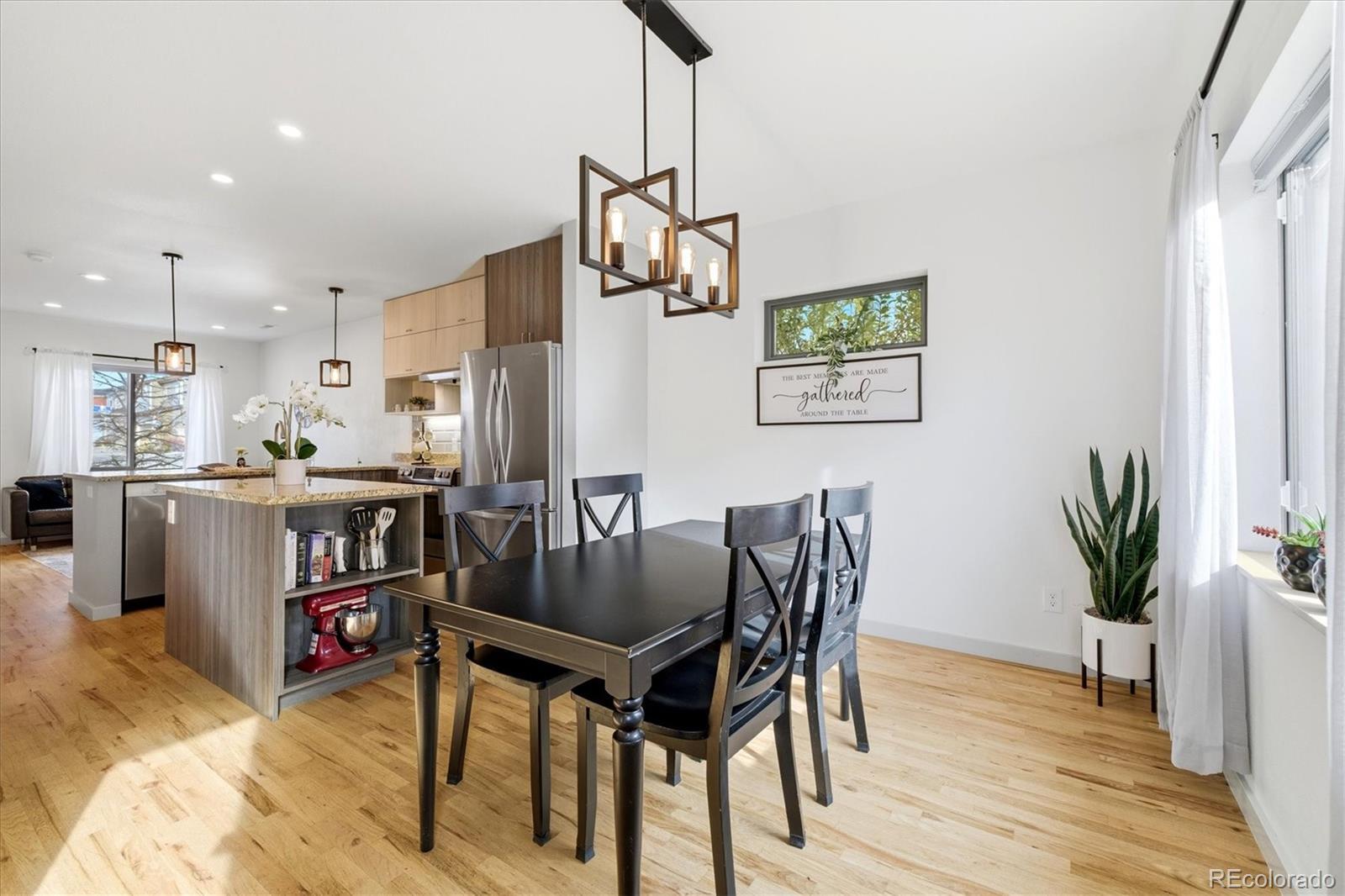 One of the most innovative communities in Colorado!!! Super warm and bright end-unit townhome in the highly efficient GEOs community of West Arvada! Built in 2017, this 3-bed/3-bath home offers modern finishes, hardwood floors, a bright, open layout, and a fully finished basement. Designed for comfort and sustainability, GEOs homes feature advanced insulation, high-efficiency windows, all-electric systems, rooftop solar, and no on-site fossil fuel use, resulting in impressively low utility costs. Enjoy a charming backyard with a plum tree, garden space, and beautiful views. Steps from the Clear Creek Trail, Colorado Tap House, community gardens, and fruit trees. A walkable, thoughtful neighborhood focused on energy savings, nature, and connection. Move-in ready, light-filled