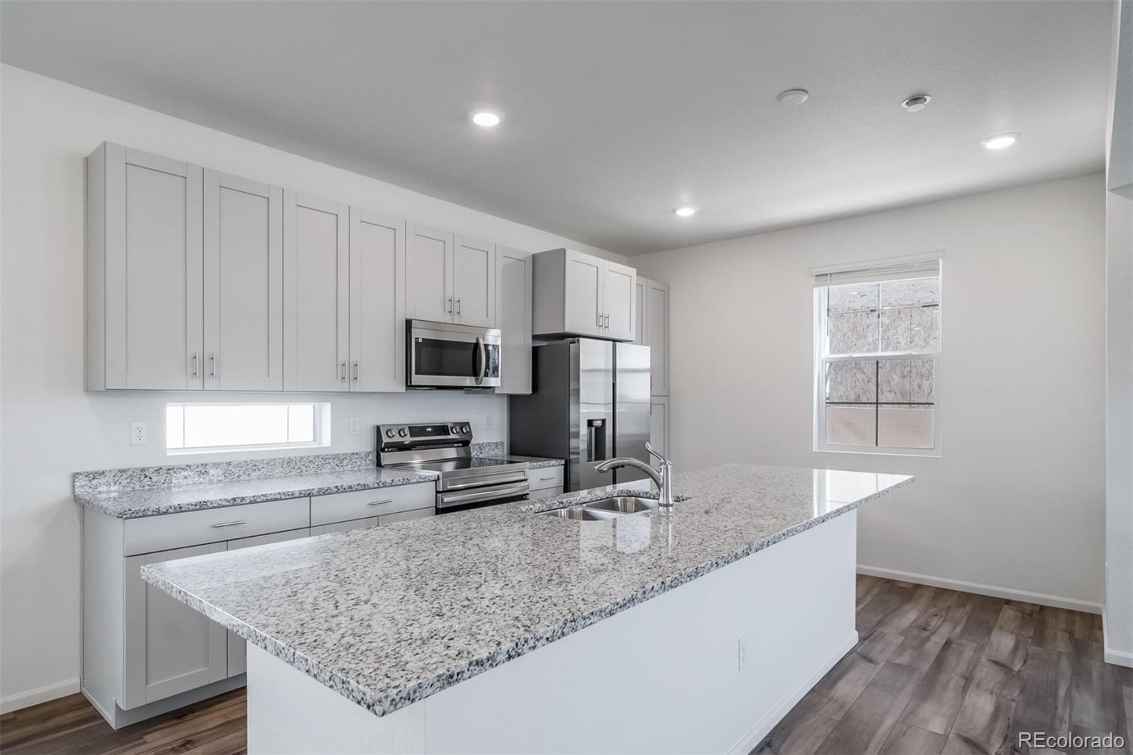 The Selma: Modern Living in Reunion. Take advantage of 10K FlexCash when using our preferred lender. Restrictions apply, see sales counselors for details. This 1,938 sq. ft. home features 4 bedrooms, 2.5 bathrooms, and a 2-car garage. Step into the foyer and immediately feel at home. The spacious great room is ideal for cozy family nights, casual hangouts, or hosting friends. The kitchen is designed with both style and function in mind, featuring an extended eat-in island—perfect for morning breakfasts, after-school homework, or weekend baking. Stainless steel appliances, a walk-in pantry, and an abundance of cabinets provide everything you need to cook and entertain with ease. Just off the kitchen is a dedicated dining space—perfect for gathering around the table for weeknight dinners or special celebrations. Also on the main floor, you’ll find a convenient powder room for guests—ideal for keeping your private spaces private and offering comfort during gatherings. Upstairs, the expansive primary suite is a true retreat, offering plenty of room to unwind. The en-suite bath feels like a private spa with dual sinks, a walk-in shower, and a generous walk-in closet. Three additional bedrooms and a full secondary bathroom offer space for family, guests, or a home office. The laundry room is thoughtfully located upstairs near all the bedrooms, making laundry day quicker and easier without the hassle of carrying clothes up and down the stairs. Artist rendering and/or photography may differ from the actual home. Reunion is a vibrant, master-planned community that blends small-town charm with modern amenities, offering residents parks, lakes, a recreation center, and the award-winning Reunion Coffee House. With top-rated schools, nearby golf, and plenty of opportunities for connection, it’s a place to truly live, grow, and belong. Call us to make this home yours today at 303-486-8915.