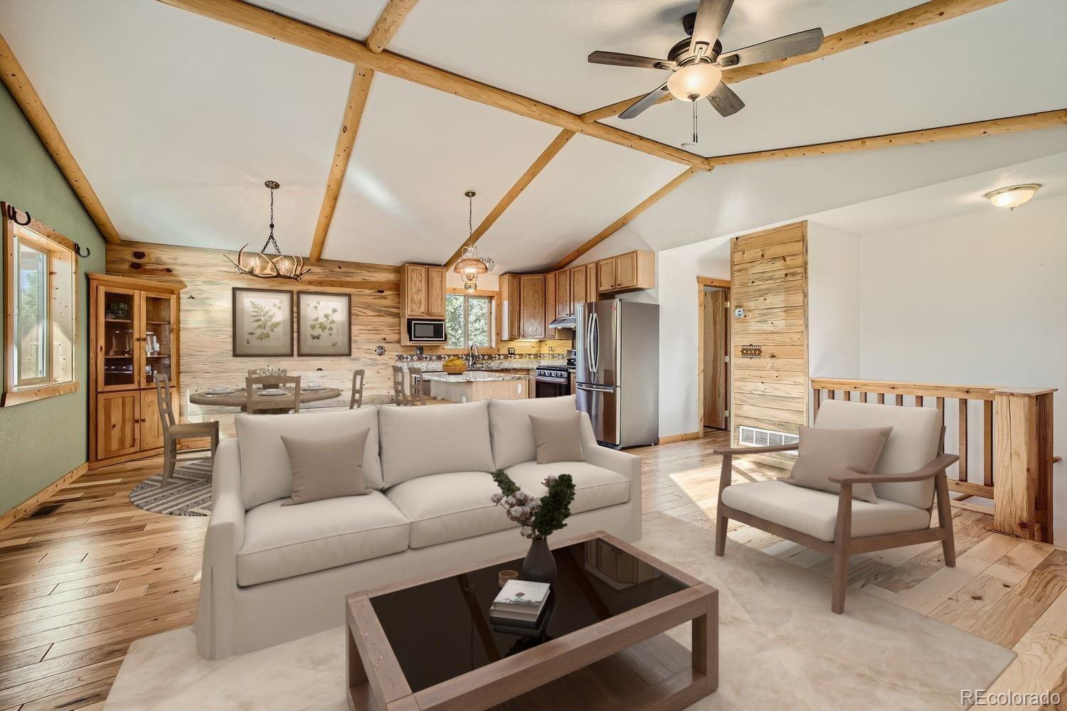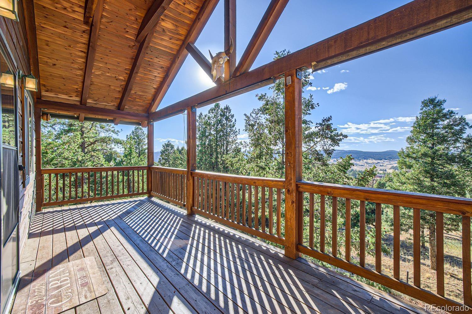 Discover serene living with this charming property featuring two well-maintained, heavily wooded 2-acre lots, offering privacy and natural beauty. The clean, well-cared-for home is complemented by upper and lower level decks, perfect for taking in the picturesque views. Enjoy the versatility of a newer detached 3-car garage/workshop, ideal for projects or extra storage. The main floor primary bedroom offers convenient living, while the cozy wood-burning stove adds warmth and charm. With nearby access to parks and trails, this property provides a peaceful retreat with nature at your doorstep. - Recently updated appliances, heated & covered gutters and granite countertops. Milgard Windows with Lifetime Warranty. *Attached property of 37 Amanda Circle, Florissant 80816 is also for sale by the same owners. Call Max Haddock 303-517-5899 with any questions on either properties. maxhaddock73@gmail.com
